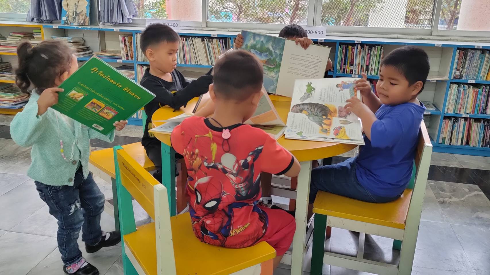 4. กิจกรรมอ่านหนังสือที่ชื่นชอบ ส่งเสริมให้เด็กรู้จักรักการอ่าน สามารถเลือกหนังสือที่ชอบมาเปิดดูได้ตามความต้องการ