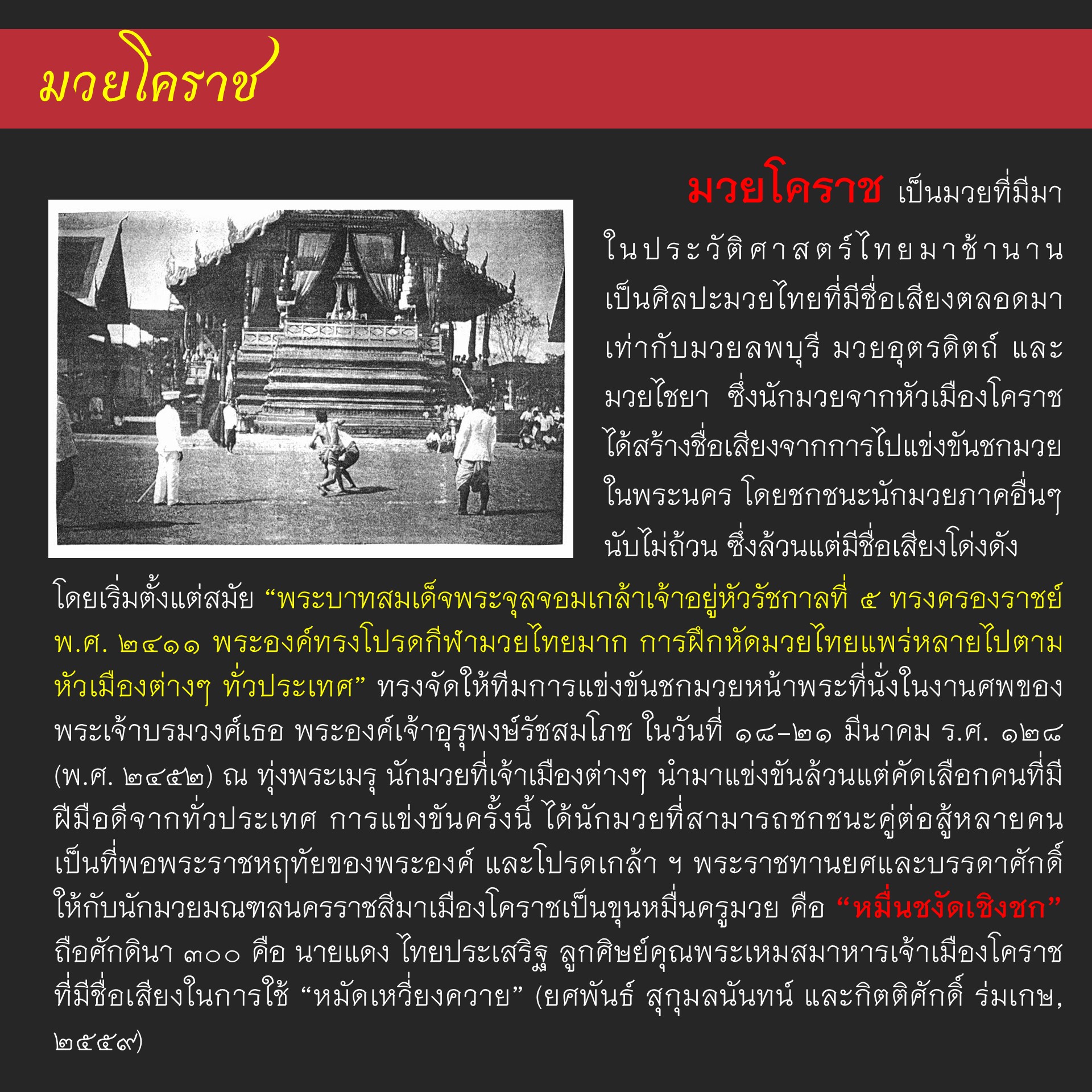 ซึ่งนักมวยจากหัวเมืองโคราชได้สร้างชื่อเสียงจากการไปแข่งขันชกมวยในพระนคร