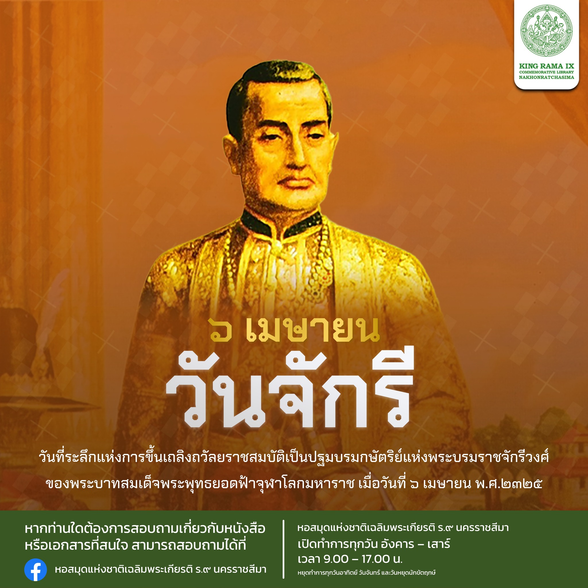 วันที่ระลึกแห่งการขึ้นเถลิงถวัลยราชสมบัติเป็นปฐมบรมกษัตริย์แห่งพระบรมราชจักรีวงศ์ของพระบาทสมเด็จพระพุทธยอดฟ้าจุฬาโลกมหาราช ซึ่งตรงกับวันที่ ๖ เมษายนของทุกปี