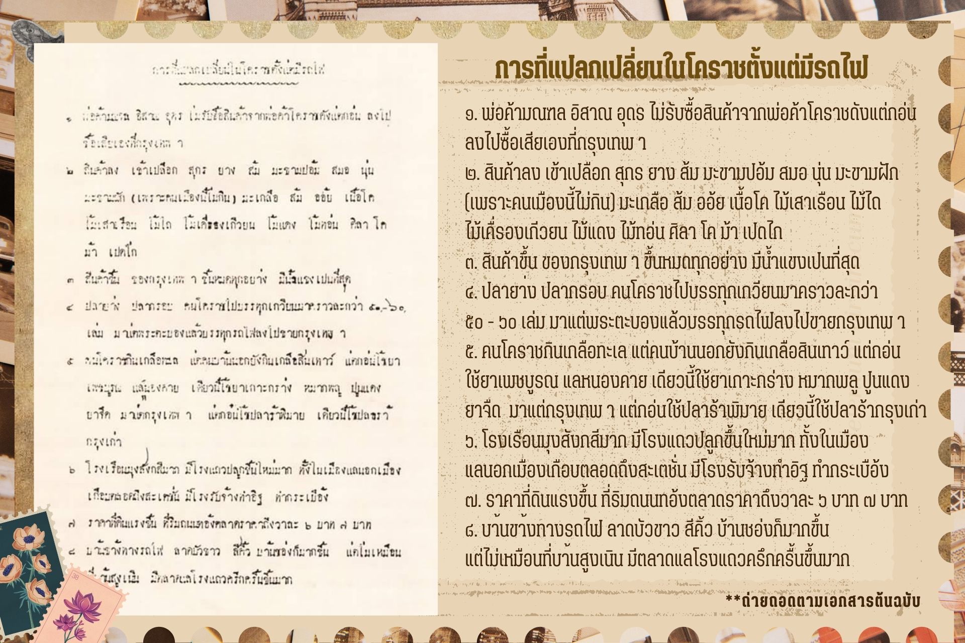 ในเมืองนครราชสิมา ตั้งแต่เวลาที่มีรถไฟแล้วผิดกว่าแต่ก่อนก่อนนี้เพียงไรนั้น เกล้า าได้จดเปน