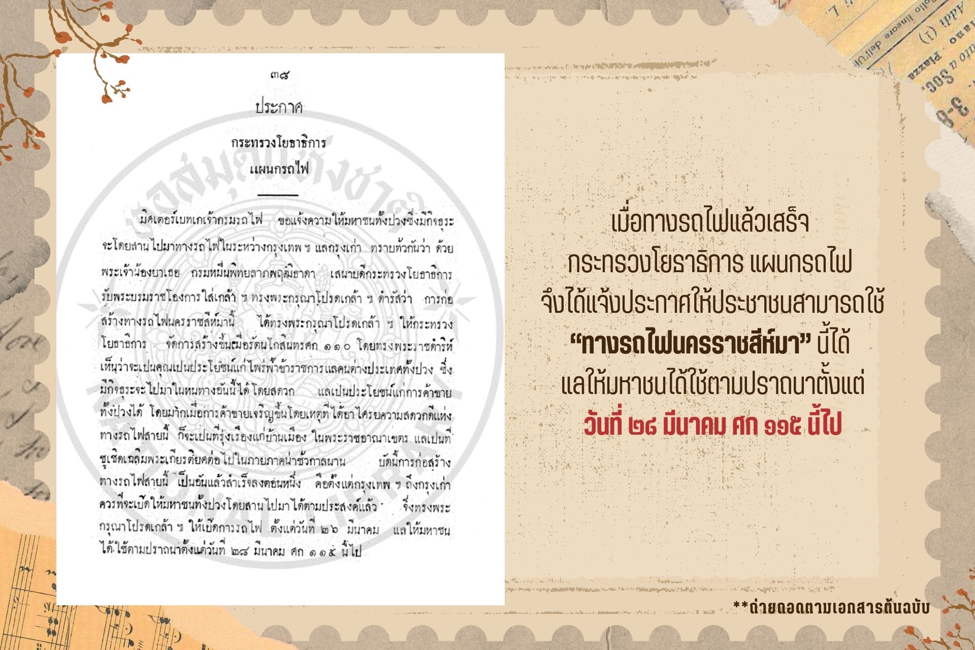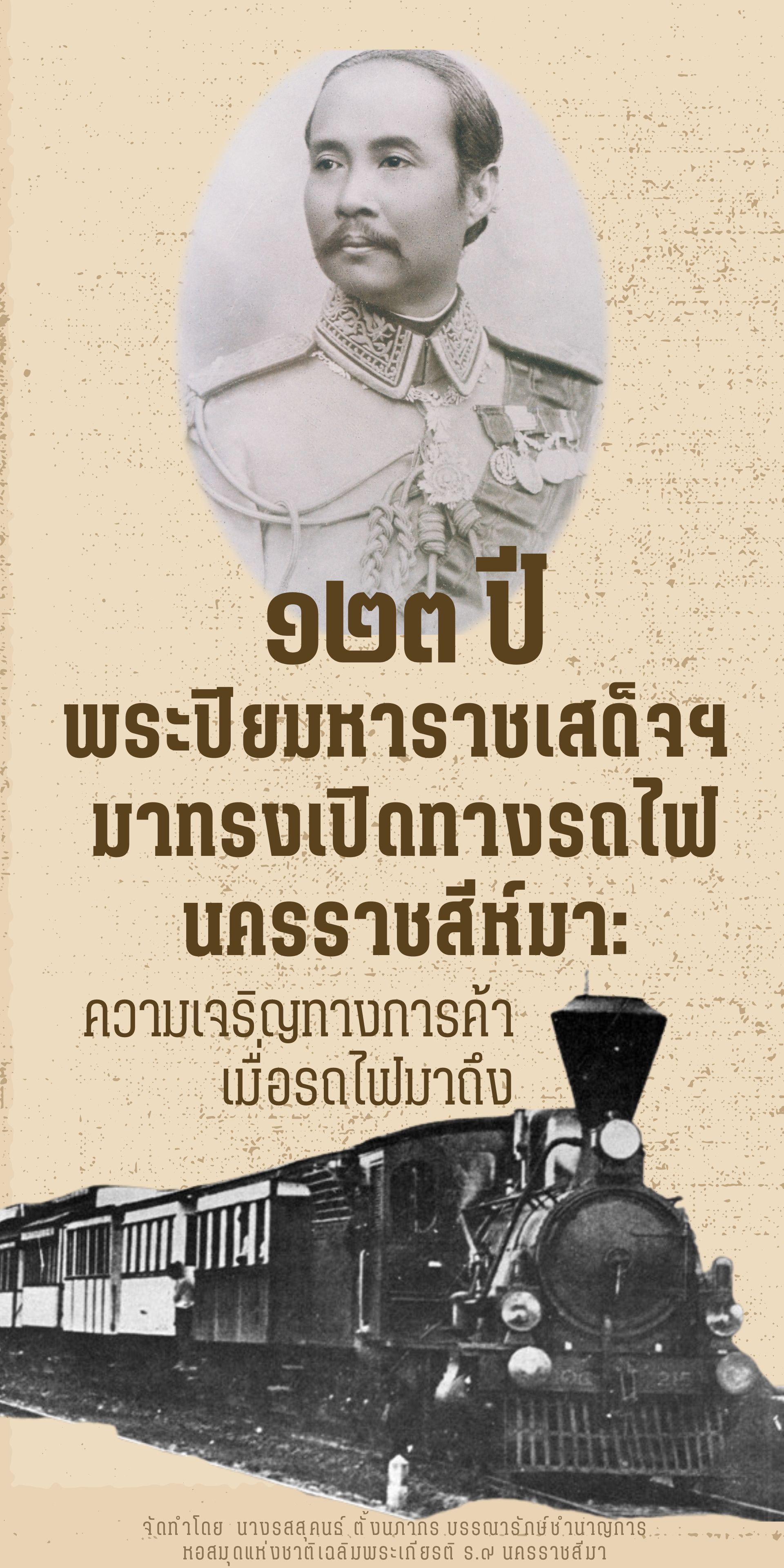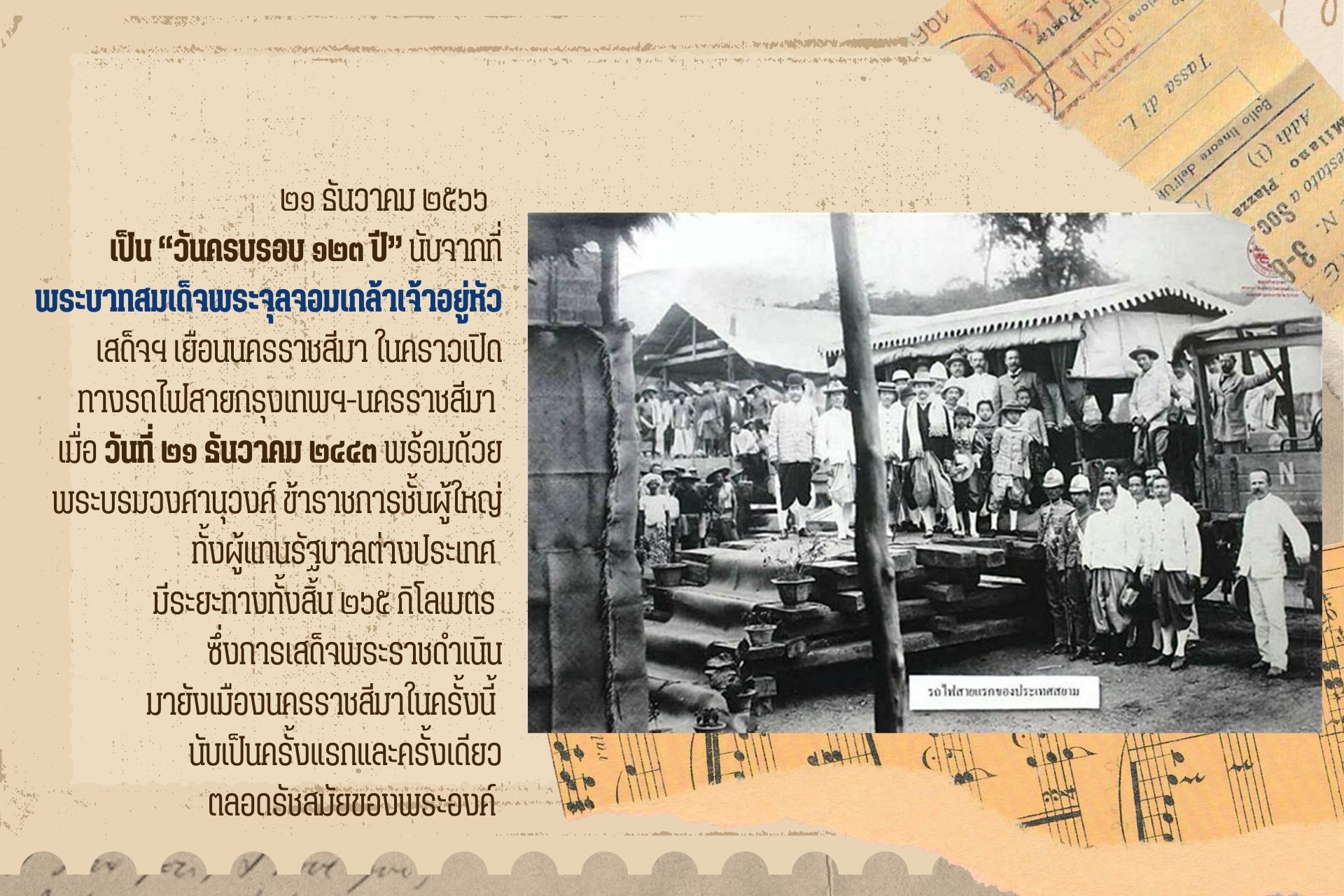 ๒๑ ธันวาคม ๒๕๖๖ เป็น “วันครบรอบ ๑๒๓ ปี” นับจากที่พระบาทสมเด็จพระจุลจอมเกล้าเจ้าอยู่หัว เสด็จฯ เยือนนครราชสีมา ในคราวเปิดทางรถไฟสายกรุงเทพฯ-นครราชสีมา เมื่อ วันที่ ๒๑ ธันวาคม ๒๔๔๓ พร้อมด้วยพระบรมวงศานุวงศ์ ข้าราชการชั้นผู้ใหญ่ ทั้งผู้แทนรัฐบาลต่างประเทศ มีระยะทางทั้งสิ้น ๒๖๕ กิโลเมตร ซึ่งการเสด็จพระราชดำเนินมายังเมืองนครราชสีมาในครั้งนี้ นับเป็นครั้งแรกและครั้งเดียวตลอดรัชสมัยของพระองค์