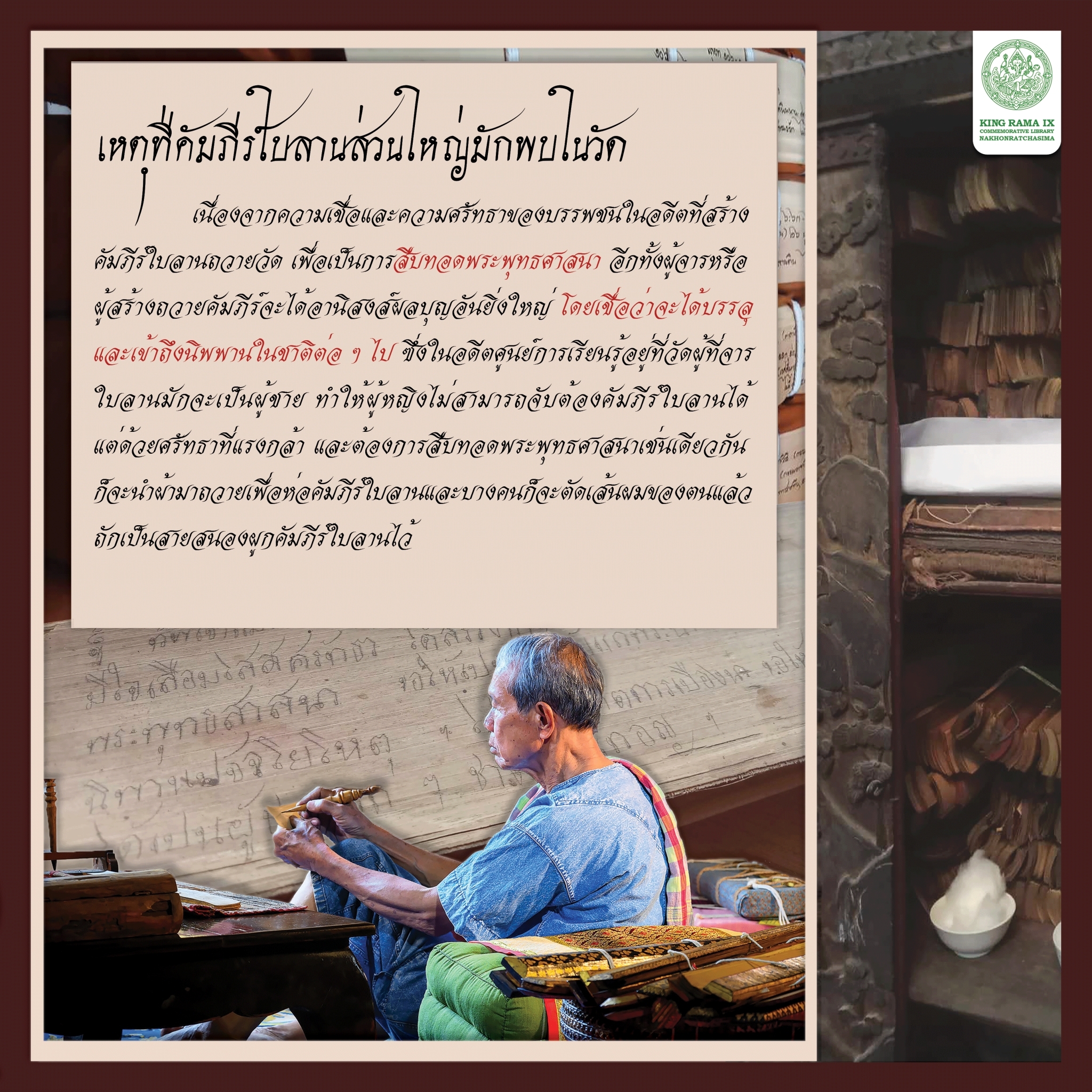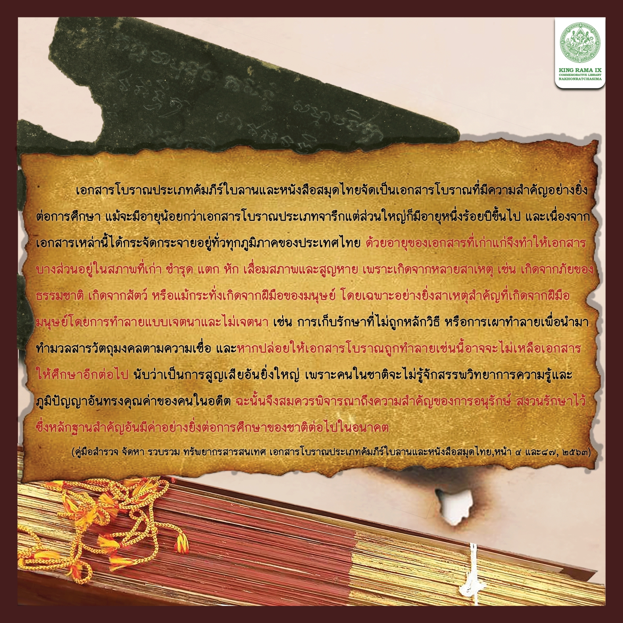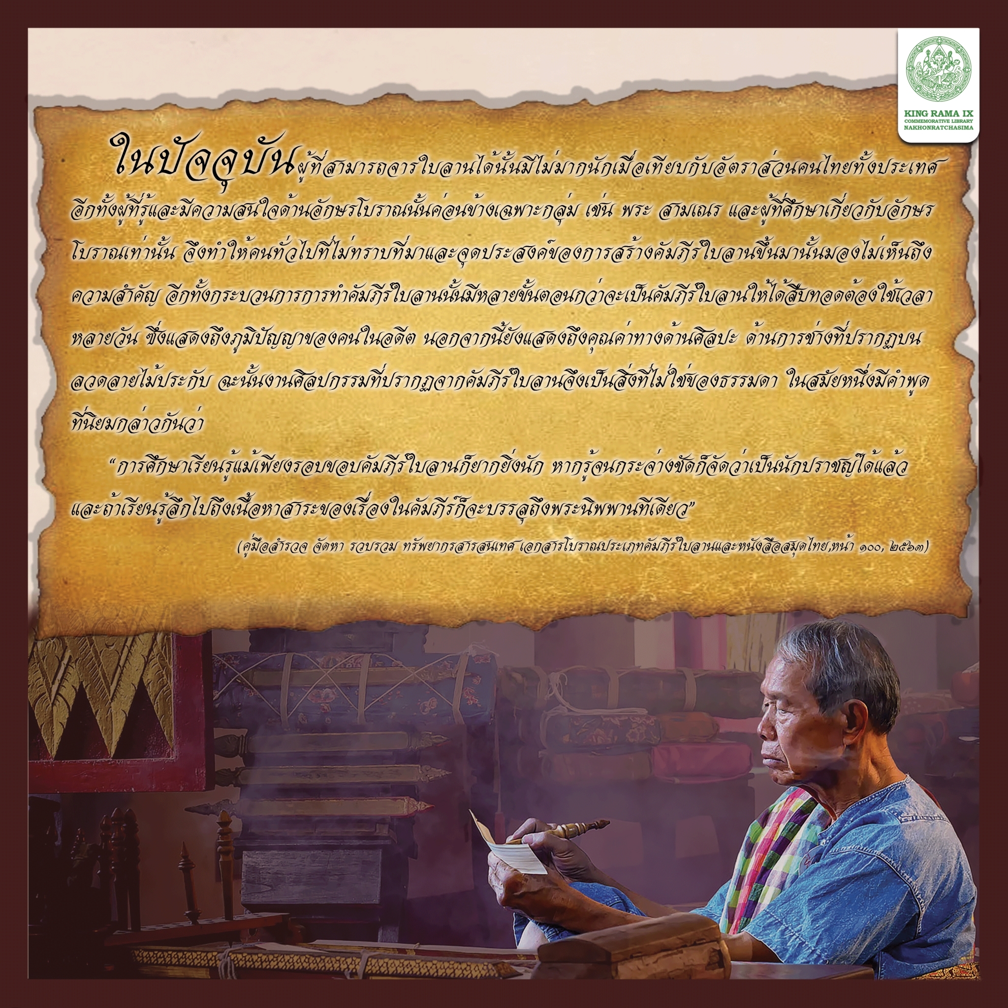 องค์ความรู้ เรื่อง คุณค่าที่ไม่ควรฆ่า เอกสารโบราณ : หนังสือใบลาน