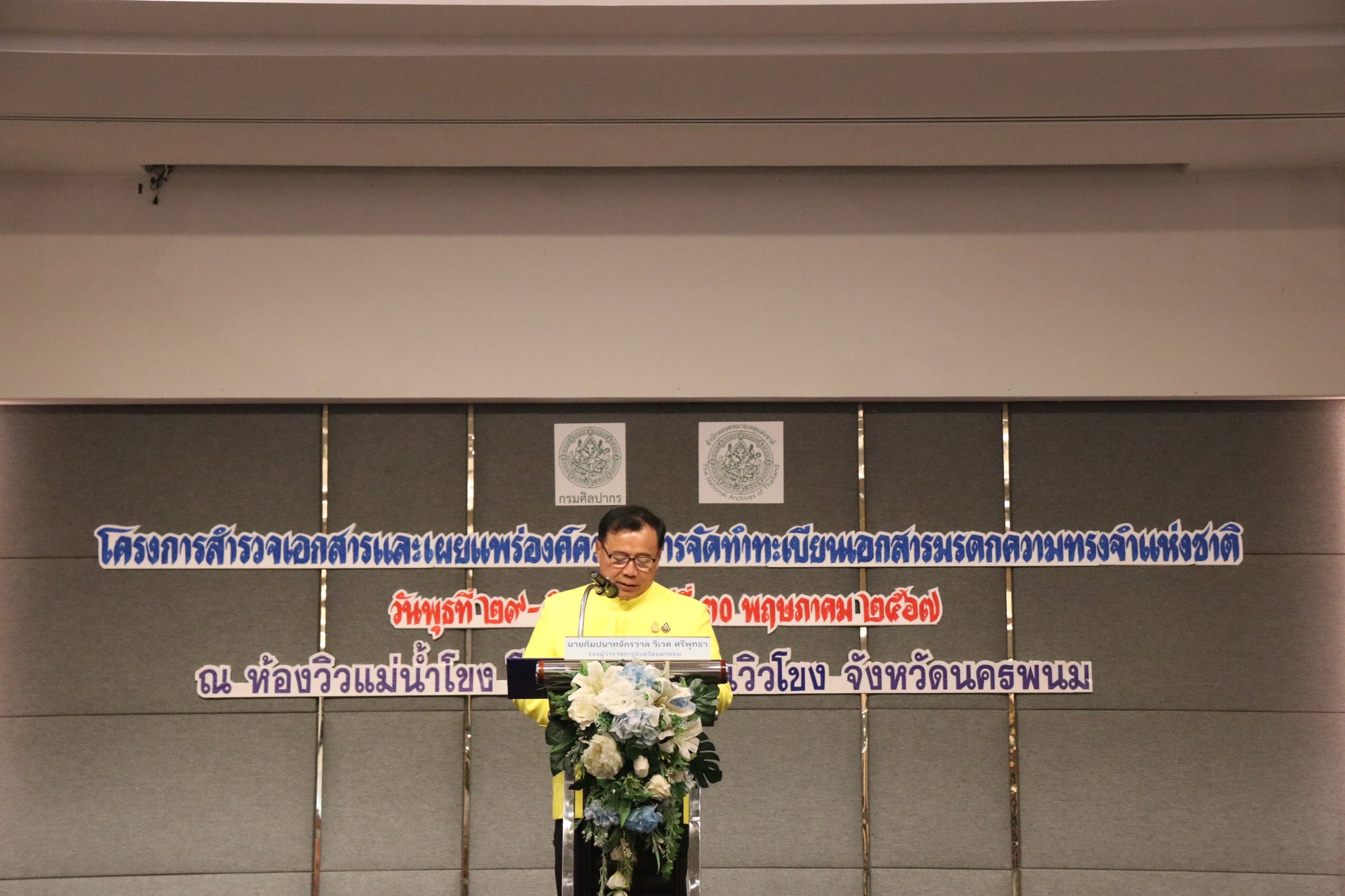 เมื่อวันที่ 29 - 30 พฤษภาคม 2567 ที่ผ่านมา นางสาวกุลริศา รัชตะวุฒิ นักภาษาโบราณ ได้รับมอบหมายจากผู้อำนวยการสำนักศิลปากรที่ 10 นครราชสีมา ให้เข้าร่วมการสัมมนาโครงการสำรวจเอกสารและเผยแพร่องค์ความรู้การจัดทำทะเบียนเอกสารมรดกความทรงจำแห่งชาติแทน โดยมีนายพนมบุตร จันทรโชติ อธิบดีกรมศิลปากร เป็นประธานในพิธีเปิด และนายกัมปนาทจักรวาล วิเวศ ศรีพุทธา รองผู้ว่าราชการจังหวัดนครพนม กล่าวต้อนรับ ในการนี้นายพนมบุตร จันทรโชติ อธิบดีกรมศิลปากร และนางสาวขนิษฐา โชติกวณิชย์ รองอธิบดีกรมศิลปากร เป็นวิทยากรบรรยายเรื่อง กรมศิลปากรกับการดำเนินงานเพื่อเผยแพร่องค์ความรู้ในการคัดเลือกเอกสารเพื่อขึ้นทะเบียนเอกสารมรดกความทรงจำแห่งโลก ณ ห้องประชุมวิวแม่น้ำโขง โรงแรมฟอร์จูน วิวโขง จังหวัดนครพนม นอกจากนี้ ยังได้เข้าร่วมศึกษาดูงาน ณ วัดศรีชมชื่น อำเภอนาแก จังหวัดนครพนม และหอสมุดแห่งชาติเฉลิมพระเกียรติ สมเด็จพระนางเจ้าสิริกิติ์ พระบรมราชินีนาถ นครพนม