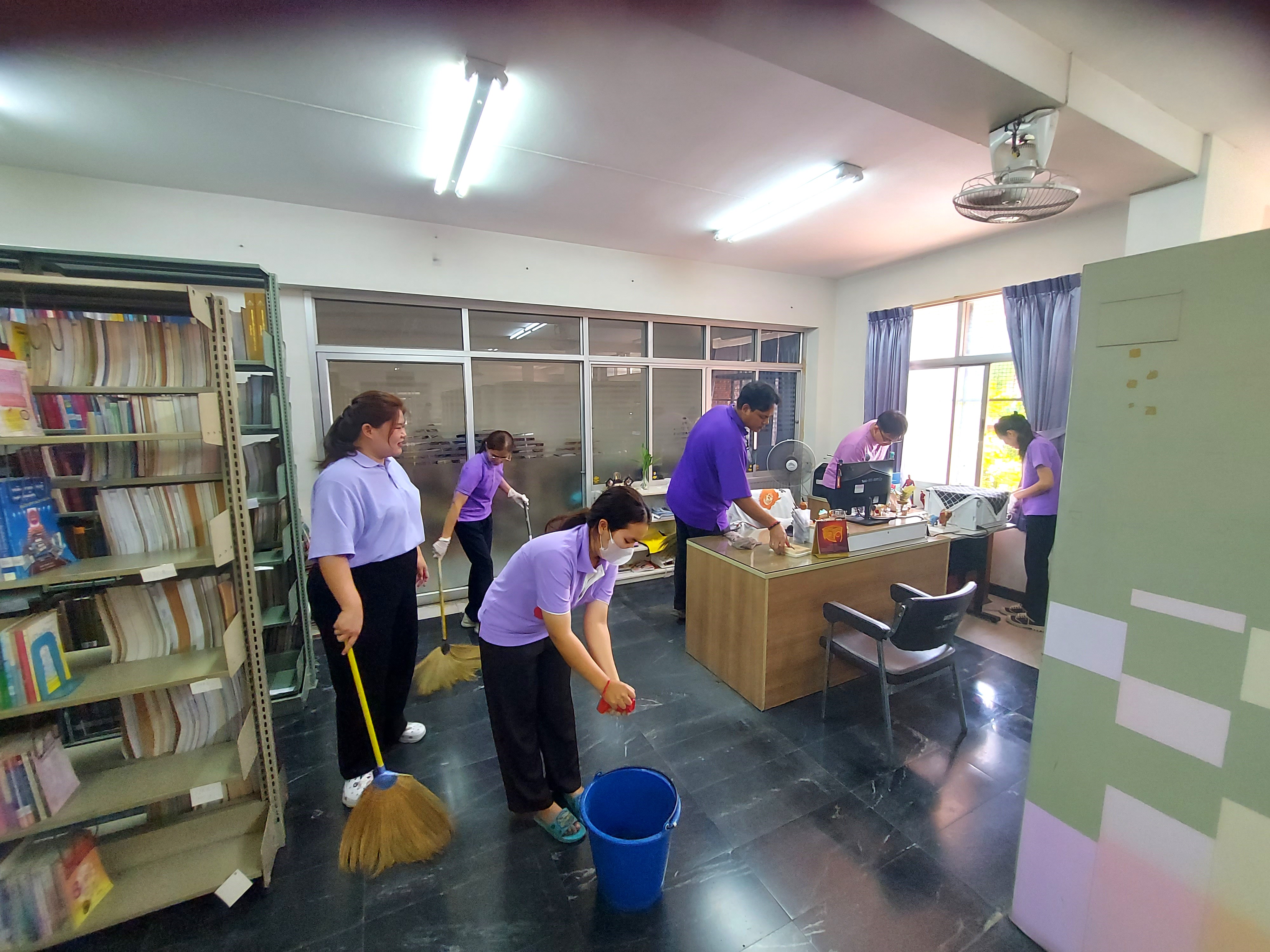 วันที่ 6 มิถุนายน 2567 หอสมุดแห่งชาติเฉลิมพระเกียรติ ร.๙ นครราชสีมา จัดกิจกรรมจิตอาสาทำความสะอาด และพัฒนาหน่วยงานบริเวณภายในอาคารหอสมุดแห่งชาติเฉลิมพระเกียรติ ร.9 นครราชสีมา เพื่อส่งเสริมการบริการของหอสมุดแห่งชาติฯ เนื่องในโอกาสวันเฉลิมพระชนมพรรษาสมเด็จพระนางเจ้าสุทิดา พัชรสุธาพิมลลักษณ พระบรมราชินี 3 มิถุนายน 2567 เพื่อแสดงความจงรักภักดีและสำนักในพระมหากรุณาธิคุณ นำโดยนางพัชมณ ศรีสัตย์รสนา ผู้อำนวยการหอสมุดแห่งชาติเฉลิมพระเกียรติ ร.9 นครราชสีมา ร่วมกับข้าราชการและเจ้าหน้าที่ฯ