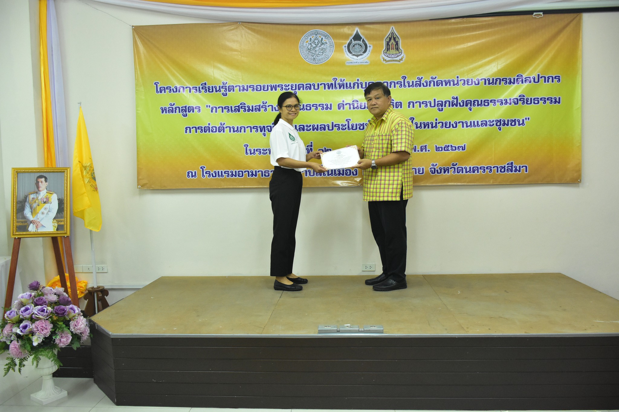 เข้าร่วมโครงการเรียนรู้ตามรอยพระยุคลบาทให้แก่บุคลากรในสังกัดหน่วยงานกรมศิลปากร หลักสูตร “การเสริมสร้างวัฒนธรรม ค่านิยมสุจริต การปลูกฝังคุณธรรมจริยธรรม การต่อต้านการทุจริตและผลประโยชน์ทับซ้อนในหน่วยงานและชุมชน”