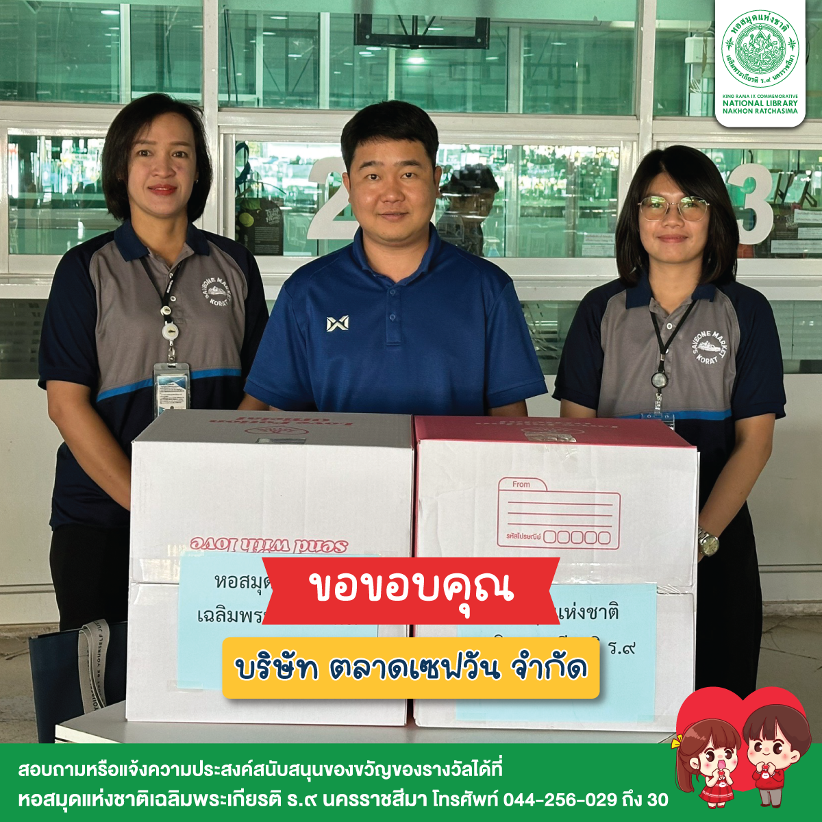 หอสมุดแห่งชาติเฉลิมพระเกียรติ ร.๙ นครราชสีมา ขอขอบคุณผู้ใหญ่ใจดี ผู้สนับสนุนของขวัญ ขนม อาหาร เครื่องดื่ม และทุนทรัพย์สำหรับจัดกิจกรรมวันเด็กแห่งชาติ ประจำปี 2568 ทุกท่านนะคะ มีรายนามดังต่อไปนี้