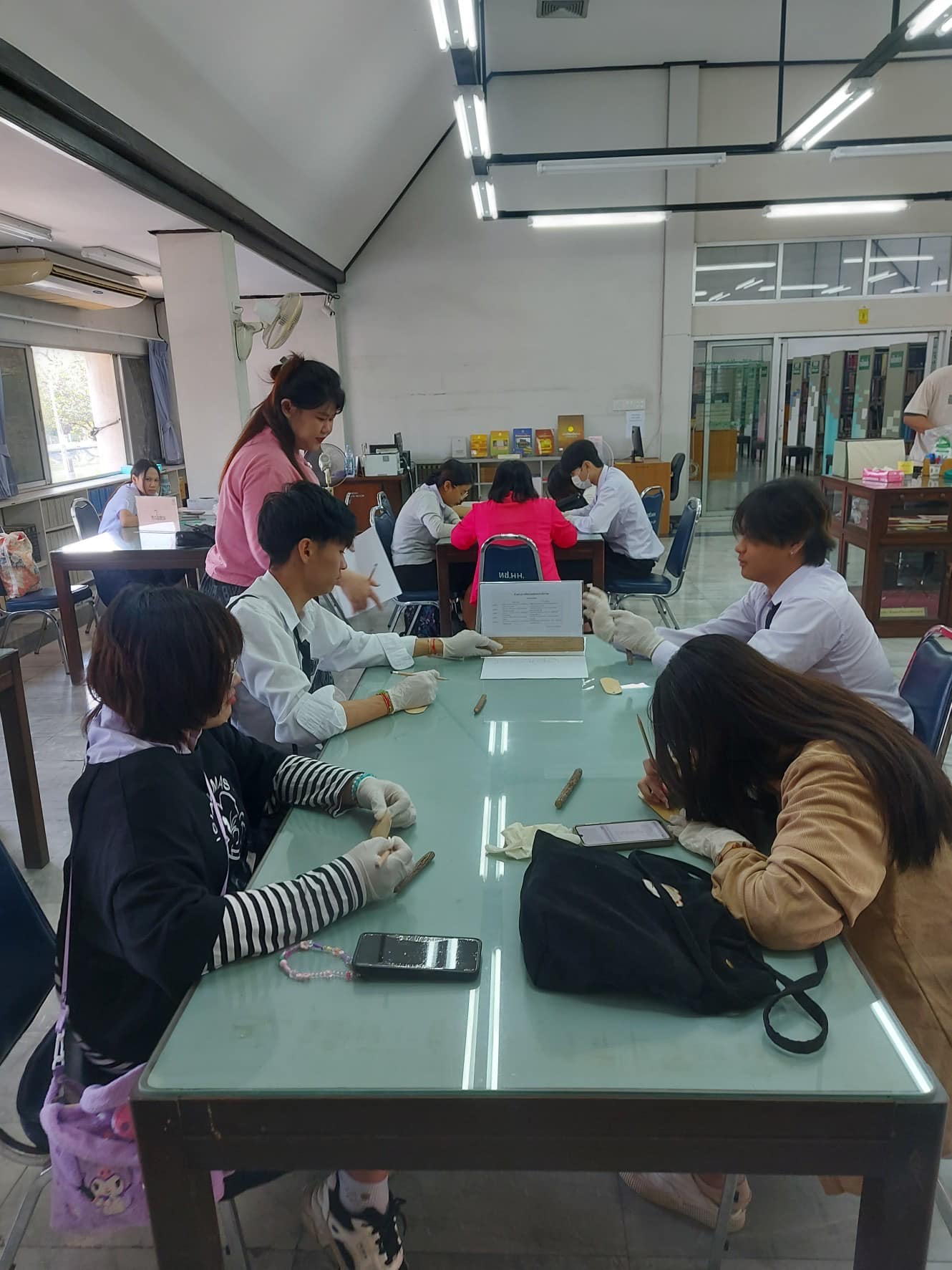 วันที่14 กุมภาพันธ์ 2568 คณะอาจารย์และนักศึกษา จากมหาวิทยาลัยราชภัฏนครราชสีมา คณะมนุษยศาสตร์และสังคมศาสตร์ หลักสูตรสารสนเทศศาสตร์และบรรณารักษศาสตร์ จำนวน 12 คน ได้เข้ามาเยี่ยมชมเอกสารโบราณ ณ ห้องอีสานศึกษา หอสมุดแห่งชาติเฉลิมพระเกียรติ ร.๙ นครราชสีมา โดยมีนางสาวกุลริศา รัชตะวุฒิ นักภาษาโบราณ ทำการบรรยายนำชมเอกสารโบราณและบริการต่าง ๆ ของห้องอีสานศึกษา อีกทั้งคณะอาจารย์และน้อง ๆ นักศึกษาได้ร่วมกันทำกิจกรรมจารใบลาน เพื่อสืบสานมรดกภูมิปัญญาของบรรพชนในอดีตอีกด้วย