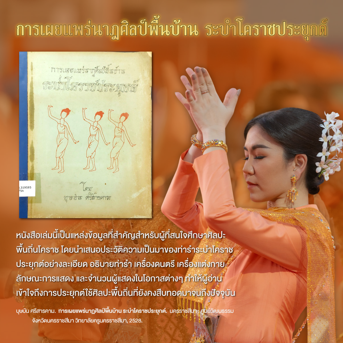 1. หนังสือเรื่อง การเผยแพร่นาฎศิลป์พื้นบ้าน ระบำโคราชประยุกต์