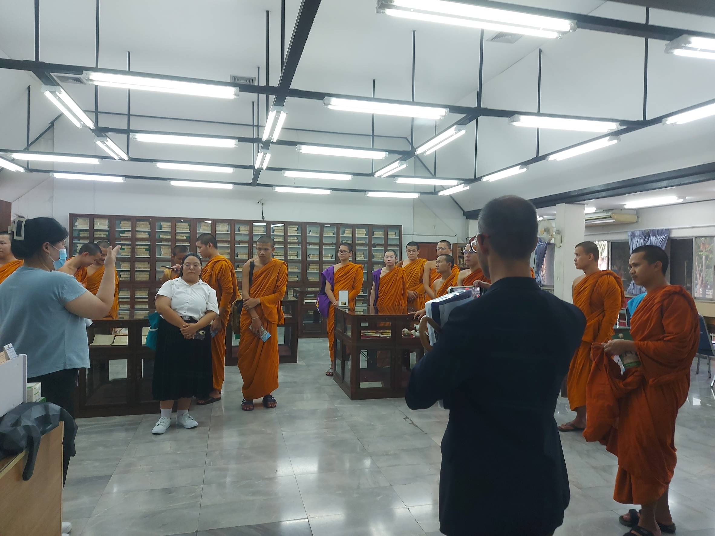 วันที่ 27 มิถุนายน 2568 คณะสงฆ์นิสิต จำนวน 30 รูป นิสิต และอาจารย์ จำนวน 2 คน จากมหาวิทยาลัยมหามกุฏราชวิทยาลัย ศาลายา จังหวัดนครปฐม ได้เข้ามาเยี่ยมชมเอกสารโบราณ ณ ห้องอีสานศึกษา โดยมีนางสาวกุลริศา รัชตะวุฒิ นักภาษาโบราณ ได้ให้บริการนำชมเอกสารโบราณและบริการต่าง ๆ พร้อมทั้งร่วมทำกิจกรรมจารใบลานอีกด้วย ณ หอสมุดแห่งชาติเฉลิมพระเกียรติ ร.๙ นครราชสีมา