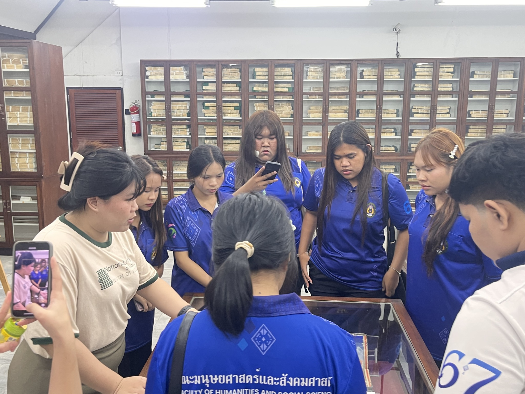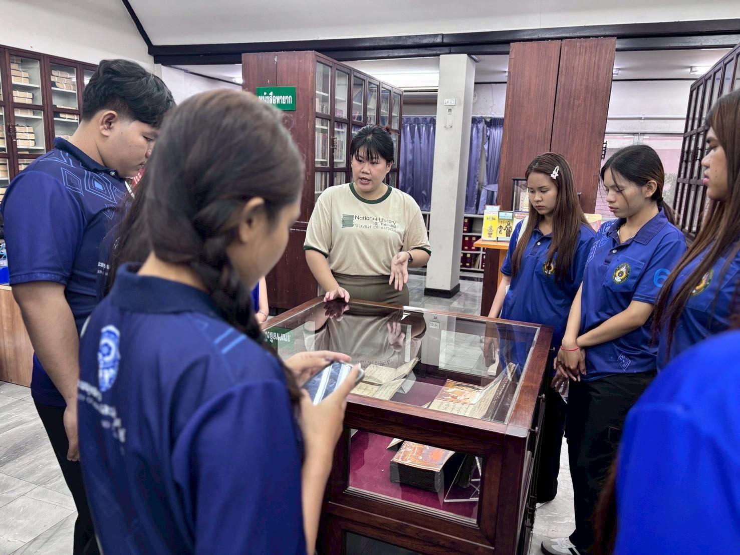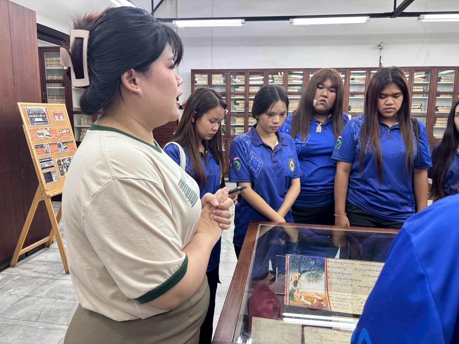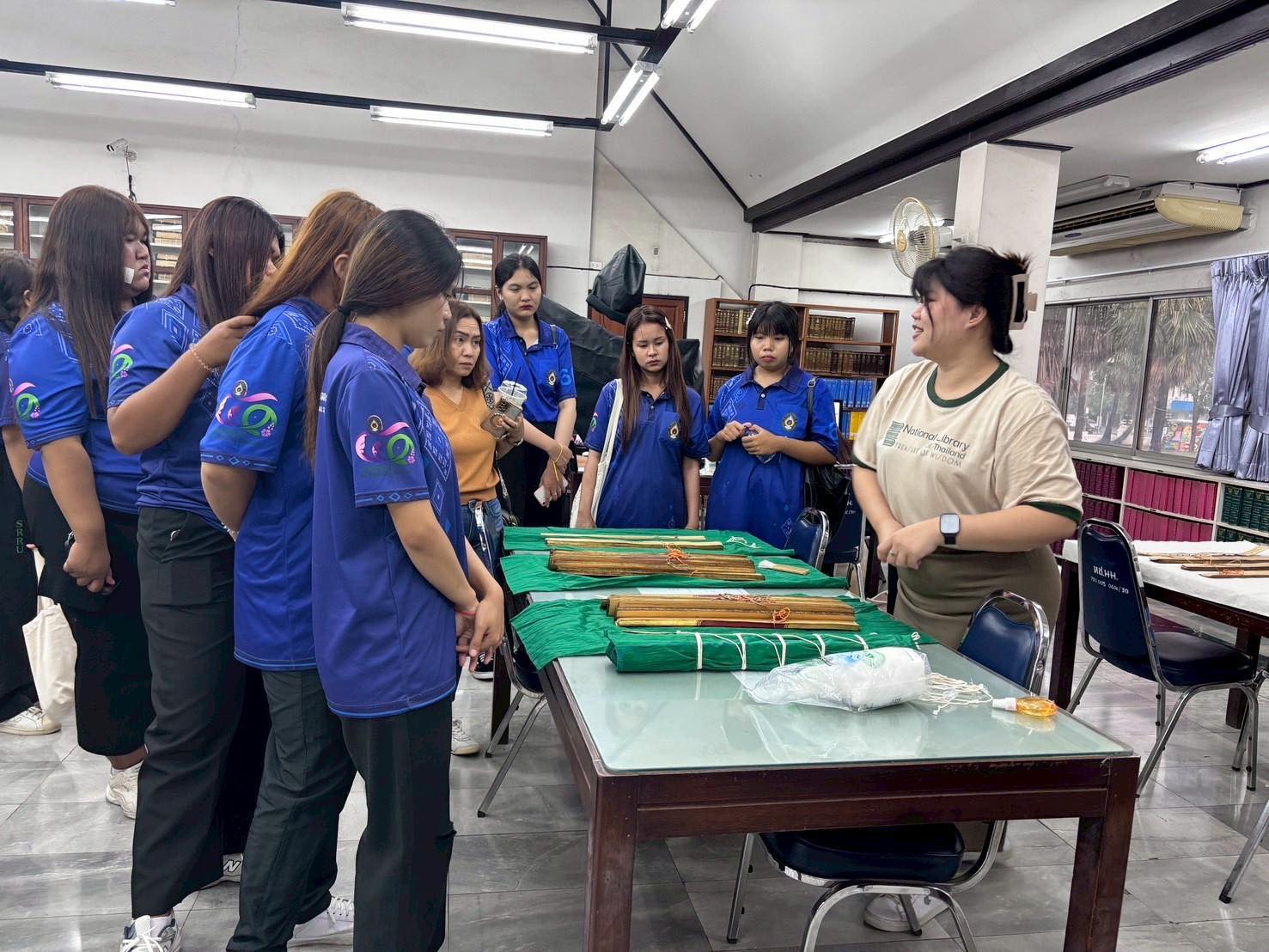 วันที่ 7 สิงหาคม 2568 คณะอาจารย์และนักศึกษา จำนวน 18 คน จากสาขาวิชาบรรณารักษศาสตร์และสารสนเทศศาสตร์ คณะมนุษยศาสตร์และสังคมศาสตร์ มหาวิทยาลัยราชภัฏสุรินทร์ เข้าศึกษาดูงานแลกเปลี่ยนเรียนรู้การบริหาร การบริการแหล่งเรียนรู้ และความรู้ทางวิชาชีพบรรณารักษ์ ทั้งนี้ ได้ร่วมทำกิจกรรมจารใบลานอีกด้วย ณ หอสมุดแห่งชาติเฉลิมพระเกียรติ ร.๙ นครราชสีมา