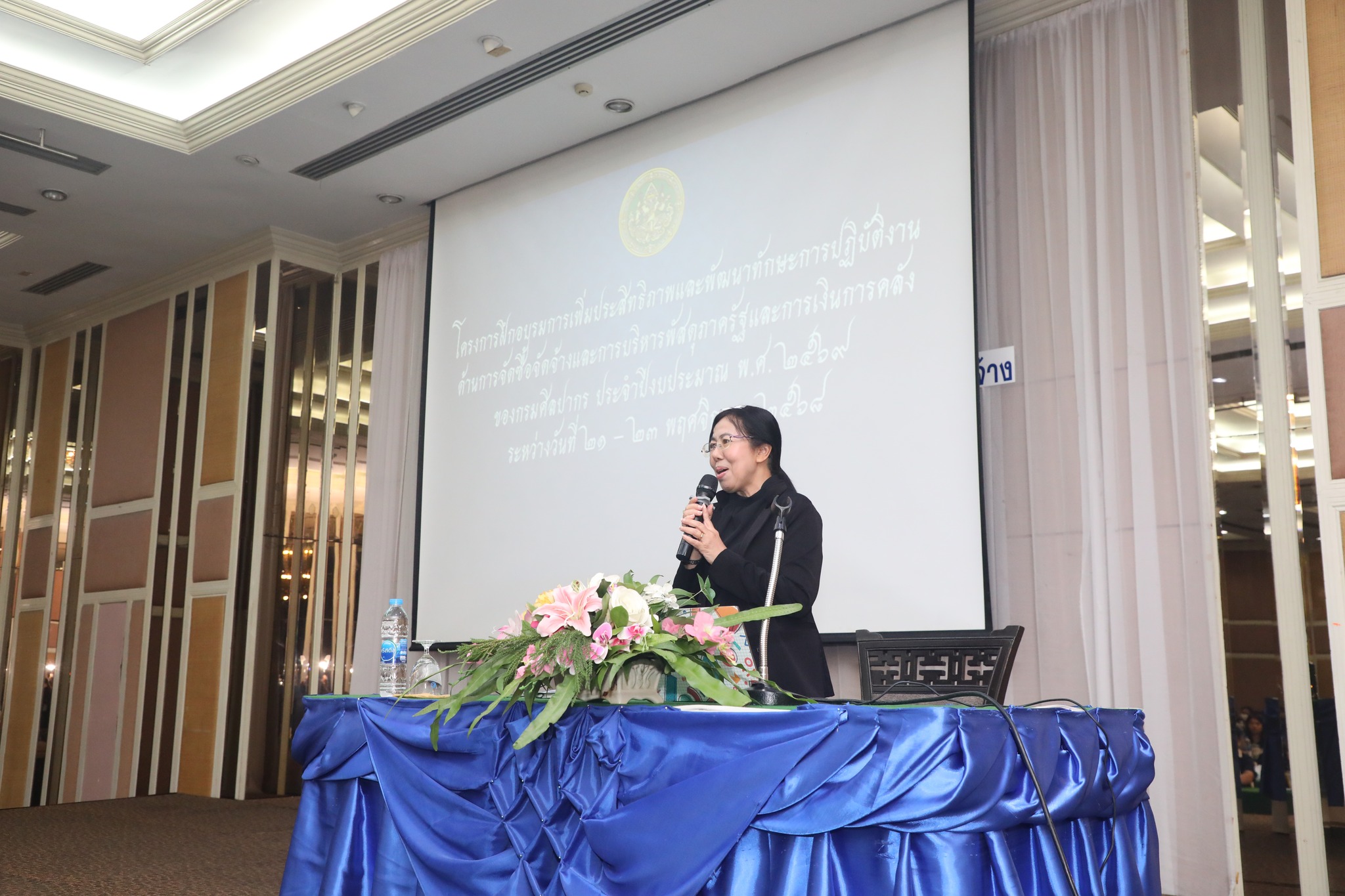 วันที่ 21 - 23 พฤศจิกายน 2568 นางอุษา ลีลามโนธรรม เจ้าพนักงานห้องสมุดชำนาญงาน นายมานพ วงษ์มี เจ้าพนักงานธุรการชำนาญงาน และนางแฉล้ม ผ่ายนอก พนักงานการเงินและบัญชี เข้าร่วมโครงการฝึกอบรมหลักสูตรการเพิ่มประสิทธิภาพและพัฒนาทักษะการปฏิบัติงานด้านการจัดซื้อจัดจ้างและการบริหารพัสดุภาครัฐและการเงินการคลังของกรมศิลปากร ประจำปีงบประมาณ พ.ศ. 2569 โดยมี นายพนมบุตร จันทรโชติ อธิบดีกรมศิลปากร เป็นประธานในพิธีเปิดโครงการ และมีนางสาววิภารัตน์ ประดิษฐอาชีพ ผู้อำนวยการสำนักบริหารกลาง กล่าวรายงาน ณ โรงแรมชลจันทร์ พัทยา บีชรีสอร์ท จังหวัดชลบุรี