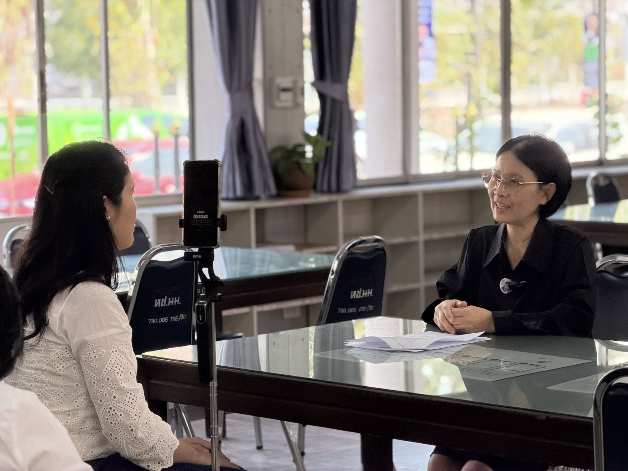 เข้าสัมภาษณ์ นางพัชมณ ศรีสัตย์รสนา ผู้อำนวยการหอสมุดแห่งชาติเฉลิมพระเกียรติ ร.๙ นครราชสีมา เพื่อประชาสัมพันธ์งาน บุญเมืองนครราชสีมา 558 ปี ตักบาตรพระ 10,000 รูป