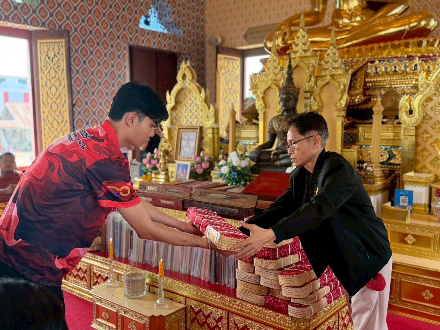 ทั้งนี้ ได้ทำพิธีส่งมอบเอกสารดังกล่าว ประกอบด้วย คัมภีร์ใบลาน จำนวน 1,306 รายการ (ผูก) หนังสือหายาก จำนวน 238 เล่ม วารสาร จำนวน 58 ฉบับ โดยมีพระครูวรนายกสิทธาคม (ครูบาพระมหาต่อ ธรรมรังสี) รักษาการเจ้าอาวาสวัดแจ้งใน ตลอดจนพุทธศาสนิกชนชาวจังหวัดนครราชสีมา ร่วมรับมอบ ณ พระอุโบสถวัดแจ้งใน