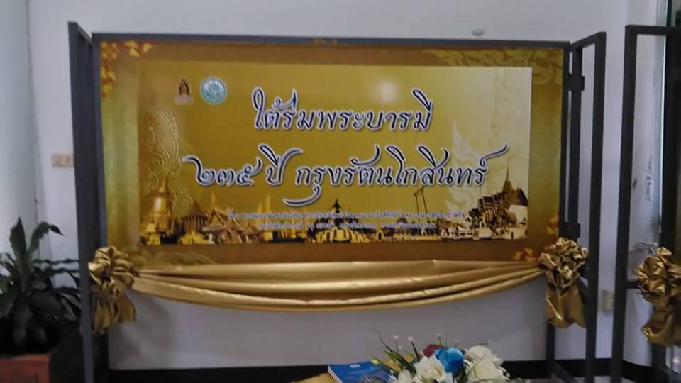 นิทรรศการ หัวข้อ "ใต้ร่มพระบารมี ๒๓๕ ปี กรุงรัตนโกสินทร์" เนื้อหาเกี่ยวกับพระราชกรณียกิจ และพระปรีชาสามารถในรัชกาลที่ ๑ - ๑๐ บรรยายเป็นร้อยกรองประเภทกลอนแปด จำนวน ๔ บท แต่งโดยอาจารย์เจษฎาภรณ์ แสงสุวรรณ์ โรงเรียนกันตังพิทยากร อำเภอกันตัง จังหวัดตรัง พร้อมขอแนะนำหนังสือดีๆ มีคุณค่าที่ควรค่าแก่การอ่านครบทุกรัชกาล