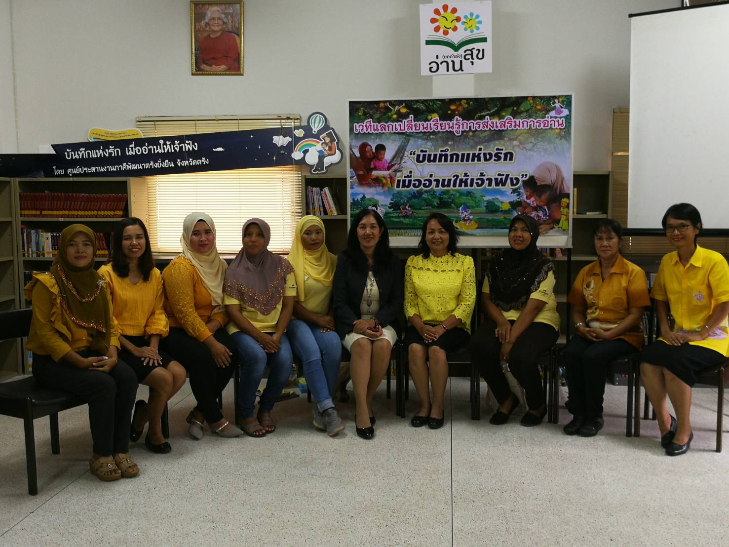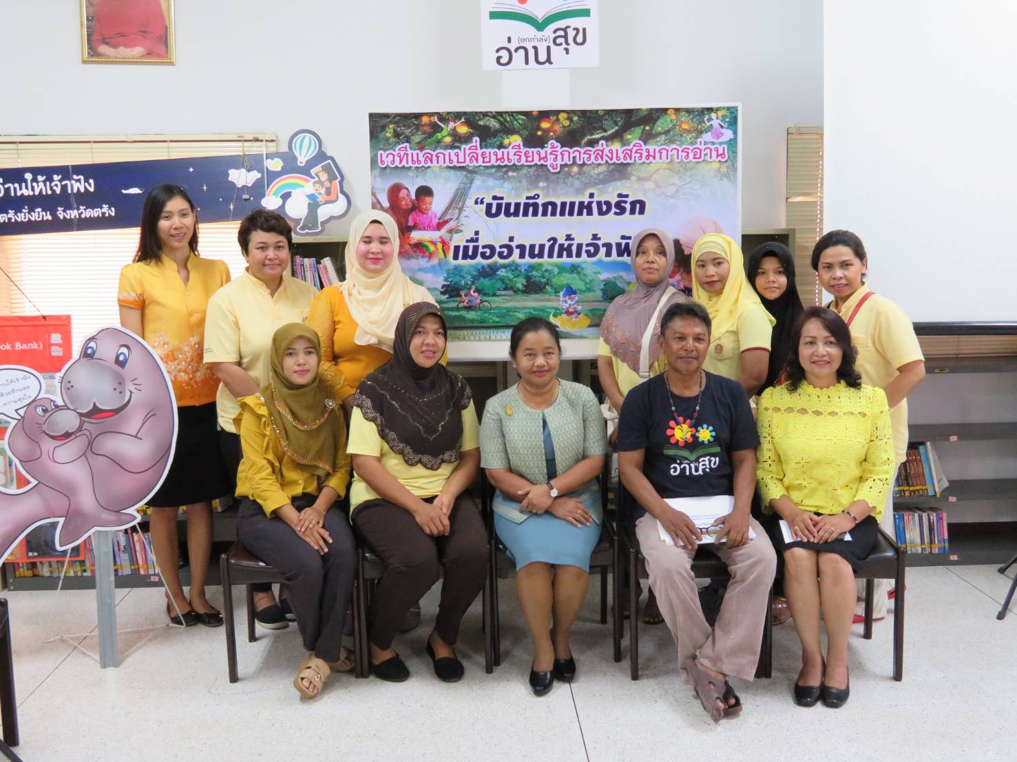 ๑. เวทีเสวนาแลกเปลี่ยนเรียนรู้กิจกรรมส่งเสริมการอ่าน "บันทึกแห่งรัก เมื่ออ่านให้เจ้าฟัง" ดำเนินการโดยกลุ่มเครือข่ายส่งเสริมการอ่านโครงการอ่านยกกำลังสุขตรัง ของสำนักงานกองทุนสร้างเสริมสุขภาพ เข้ามาเปิดเวทีแลกเปลี่ยนเรียนรู้และถ่ายทอดองค์ความรู้กระบวนการดำเนินงานที่นำไปสู่ความสำเร็จ
