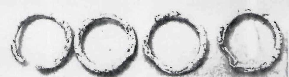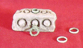 แหวนเปลือกหอย แหล่งโบราณคดีบ้านท่าแค จังหวัดลพบุรี อายุประมาณ ๓,๐๐๐ ปีมาแล้ว