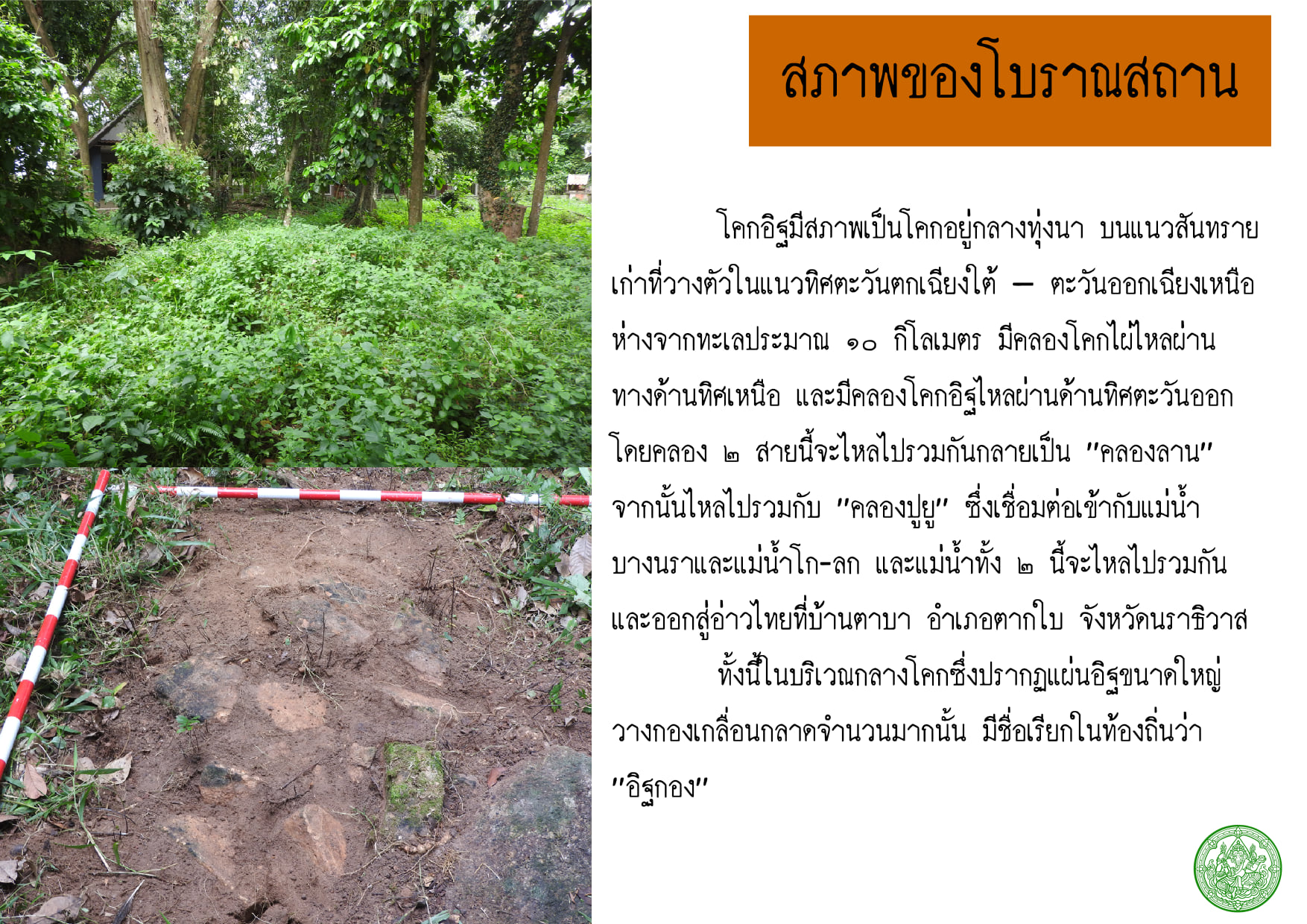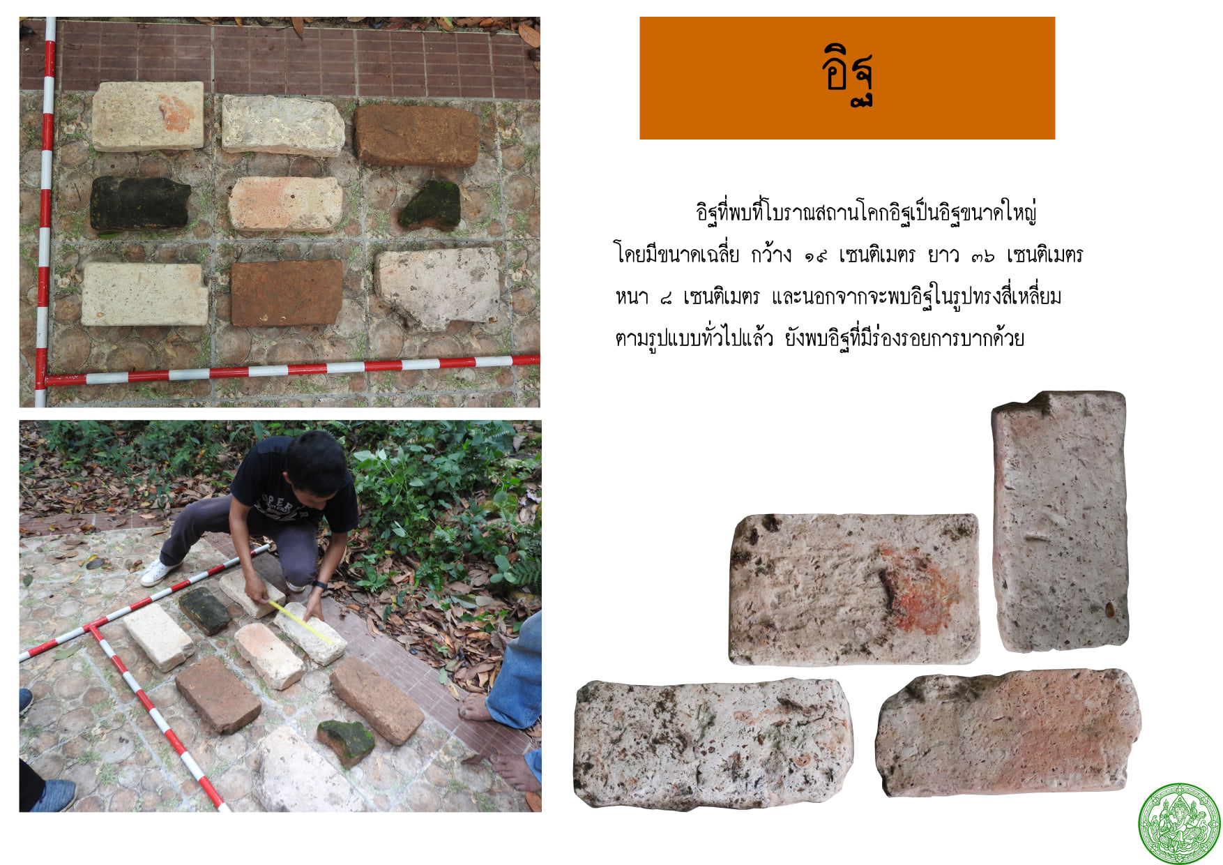 ทั้งนี้ในบริเวณกลางโคกซึ่งปรากฏแผ่นอิฐขนาดใหญ่วางกองเกลื่อนกลาดจำนวนมากนั้น มีชื่อเรียกในท้องถิ่นว่า “อิฐกอง”