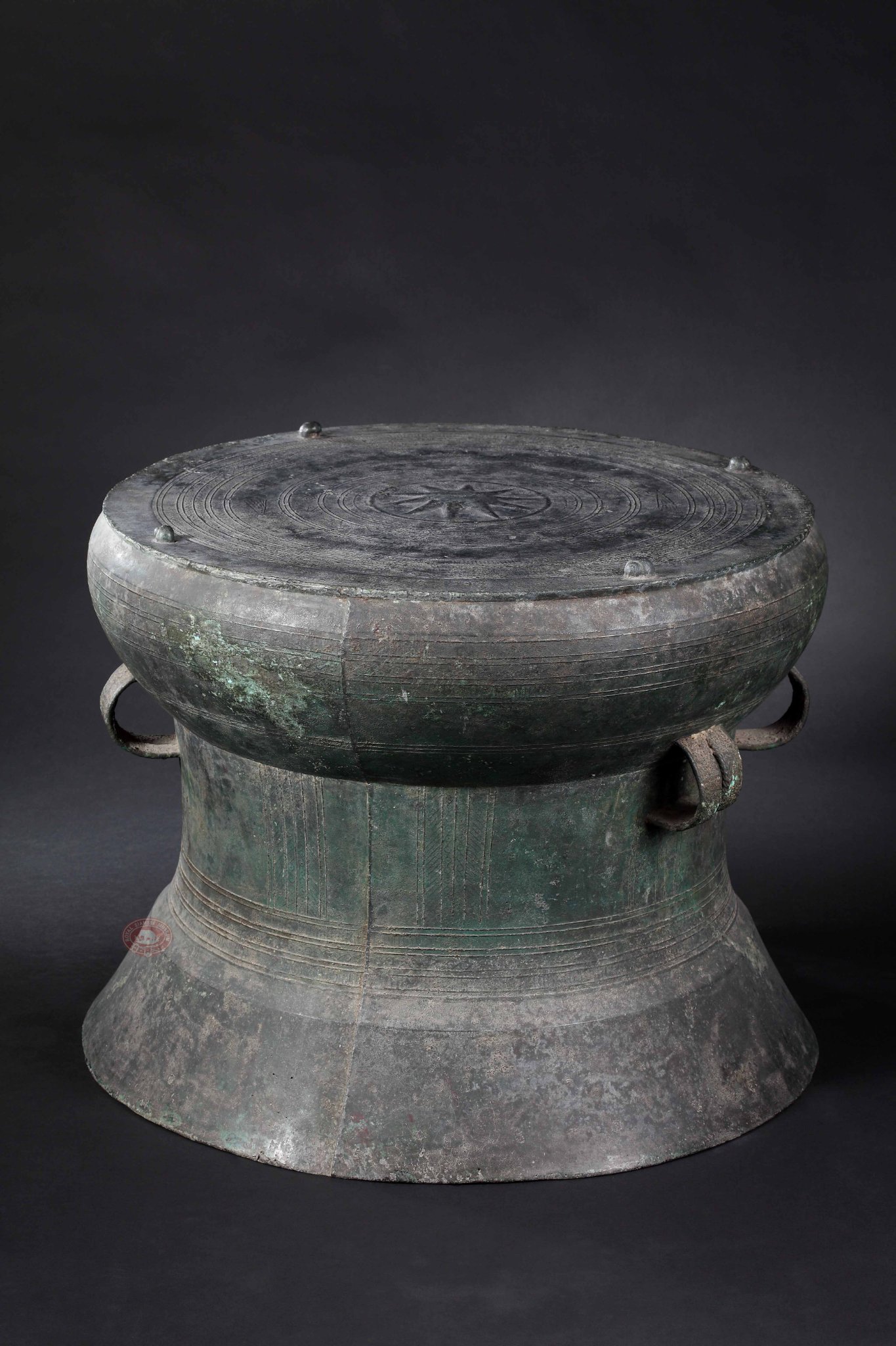 กลองมโหระทึก สัมฤทธิ์ รูปทรงกลองแบ่งออกเป็นสามส่วนอย่างชัดเจน ส่วนหน้ากลองผายออกแล้วสอบลง กึ่งกลางหน้ากลองเป็นลายดาวหรือดวงอาทิตย์ ๑๐ แฉก ล้อมรอบด้วยเส้นวงกลมซ้อนกันหลายชั้น ช่องว่างแต่ละชั้นมีลวดลายประดับ คือ ลายบุคคลสวมเครื่องประดับศีรษะตกแต่งด้วยขนนก ลายนกกระสาบินทวนเข็มนาฬิกา และลายซี่หวี ตามลำดับ ขอบหน้ากลองประดับหอยโข่งสัมฤทธิ์ ๔ ตัว ส่วนตัวกลองทรงกระบอก ตกแต่งผิวเป็นลายซี่หวีและลายวงกลม หูกลองตกแต่งลวดลายคล้ายลายรวงข้าว ติดเป็นคู่อยู่ ๔ ด้านของกลอง และส่วนฐานกลองผายออก เรียบไม่มีลวดลายใด ๆ