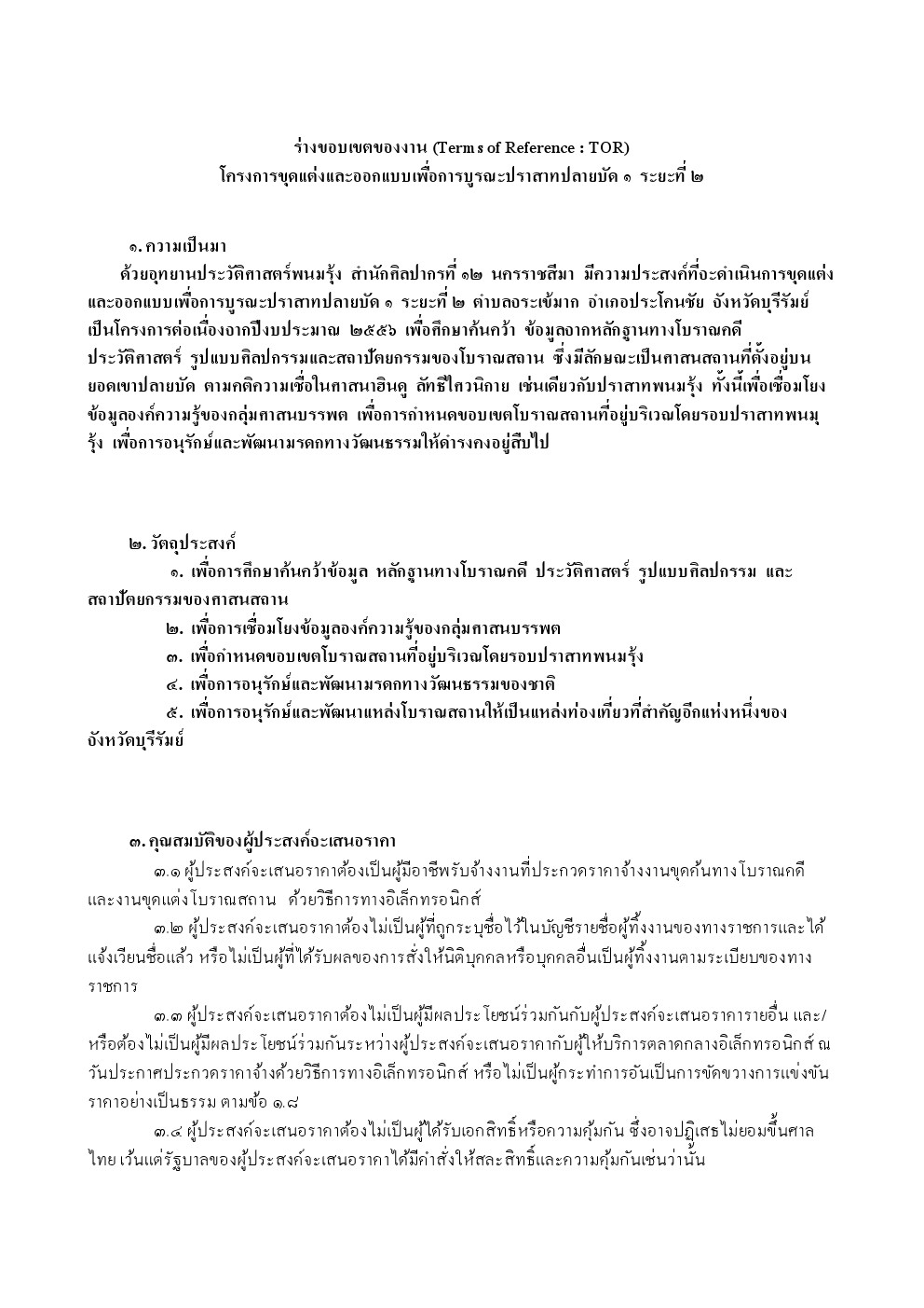 ประกาศร่าง TOR Files - ร่างขอบเขตของงาน (Terms of Reference : TOR) โครงการบูรณะและปรับปรุงภูมิทัศน์ปราสาทปลายบัด ๑ ระยะที่ ๒