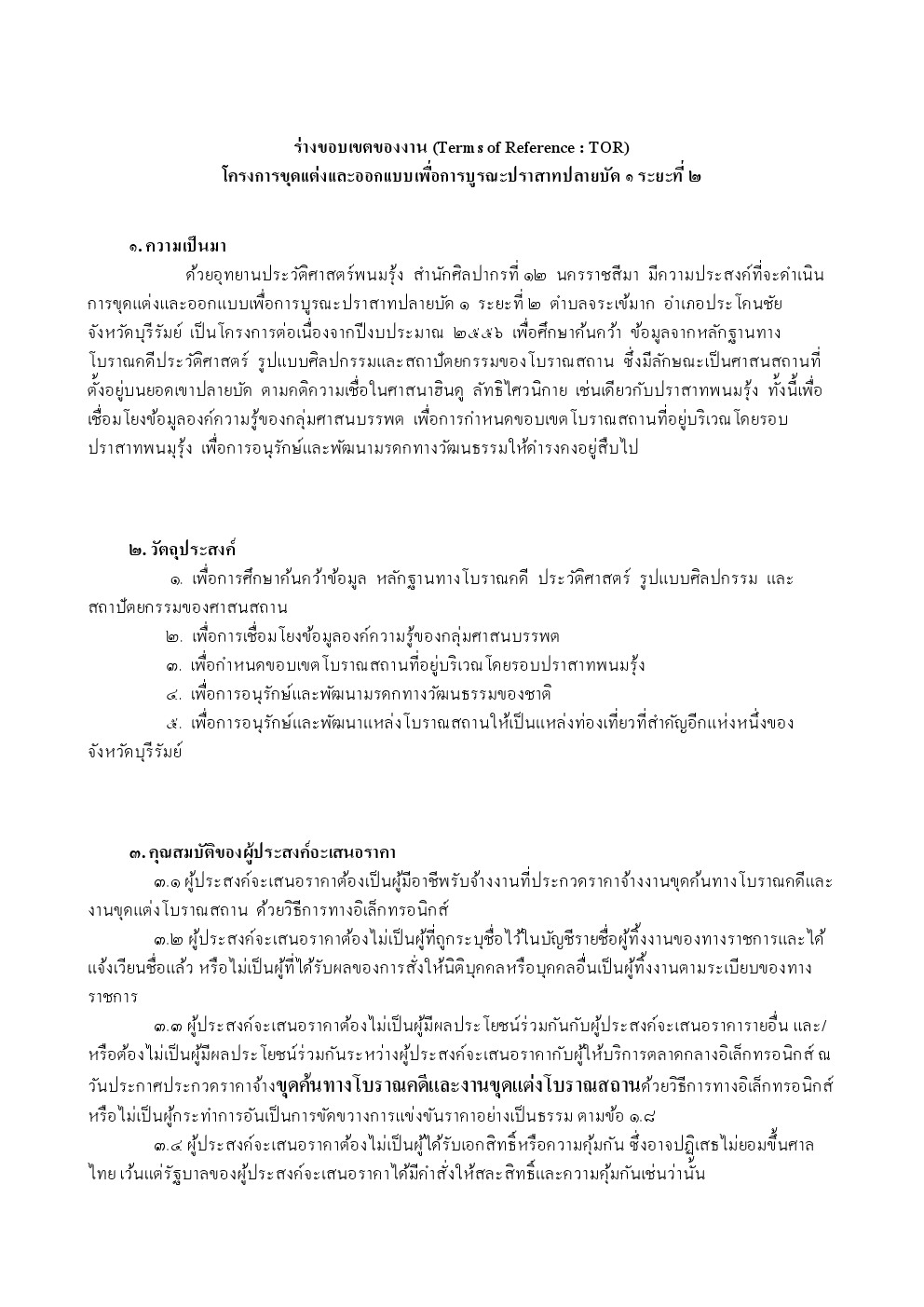 ประกาศร่าง TOR Files - ร่างขอบเขตของงาน (Terms of Reference : TOR) โครงการบูรณะและปรับปรุงภูมิทัศน์ปราสาทปลายบัด ๑ ระยะที่ ๒ 2