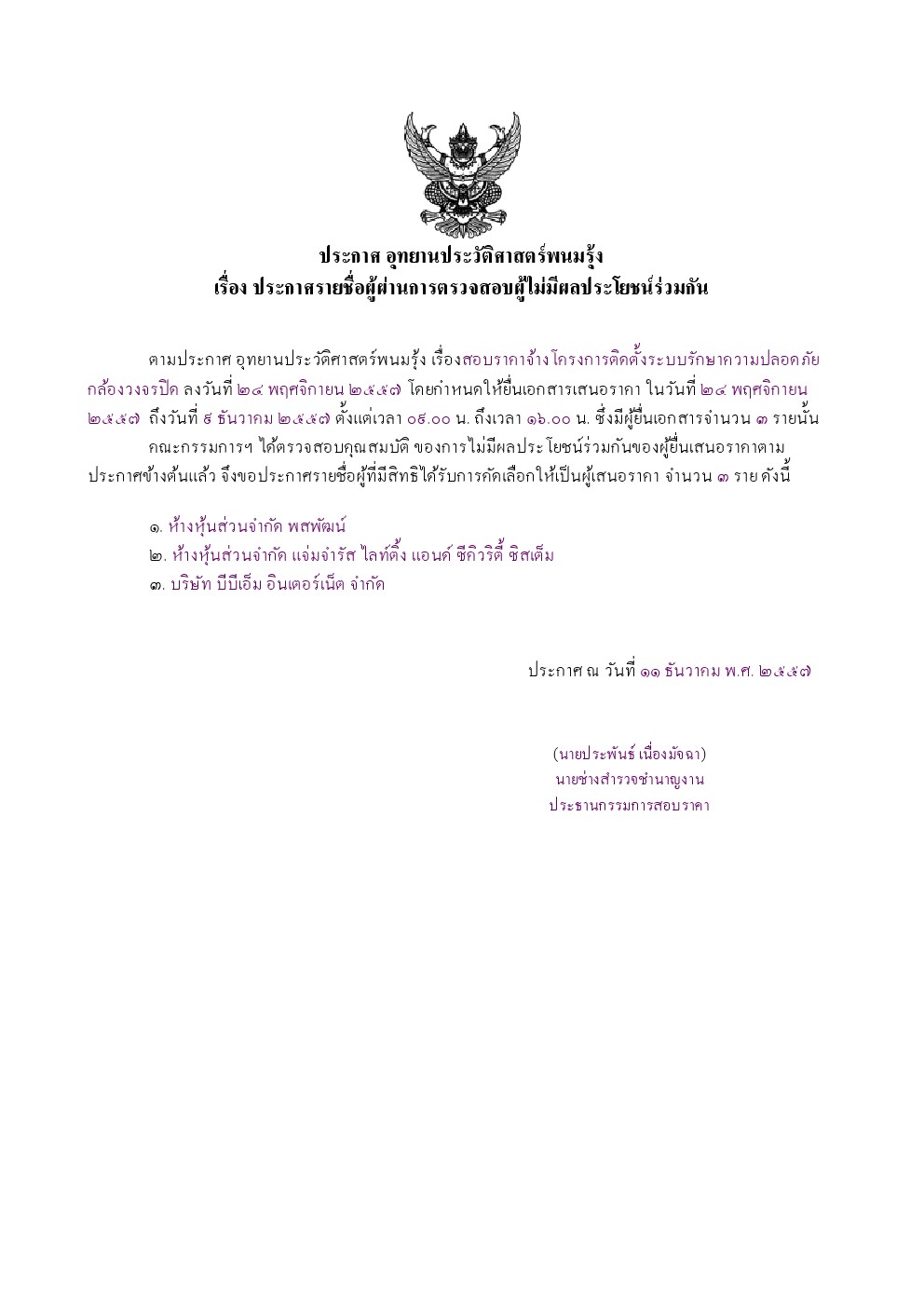 ประกาศ ผู้เสนอราคาที่ผ่านการตรวจสอบเอกสารส่วนที่ ๑ และไม่เป็นผู้เสนอราคาที่มีผลประโยชน์ร่วมกันของงานสอบราคา โครงการติดตั้งระบบรักษาความปลอกภัยกล้องวงจรปิด