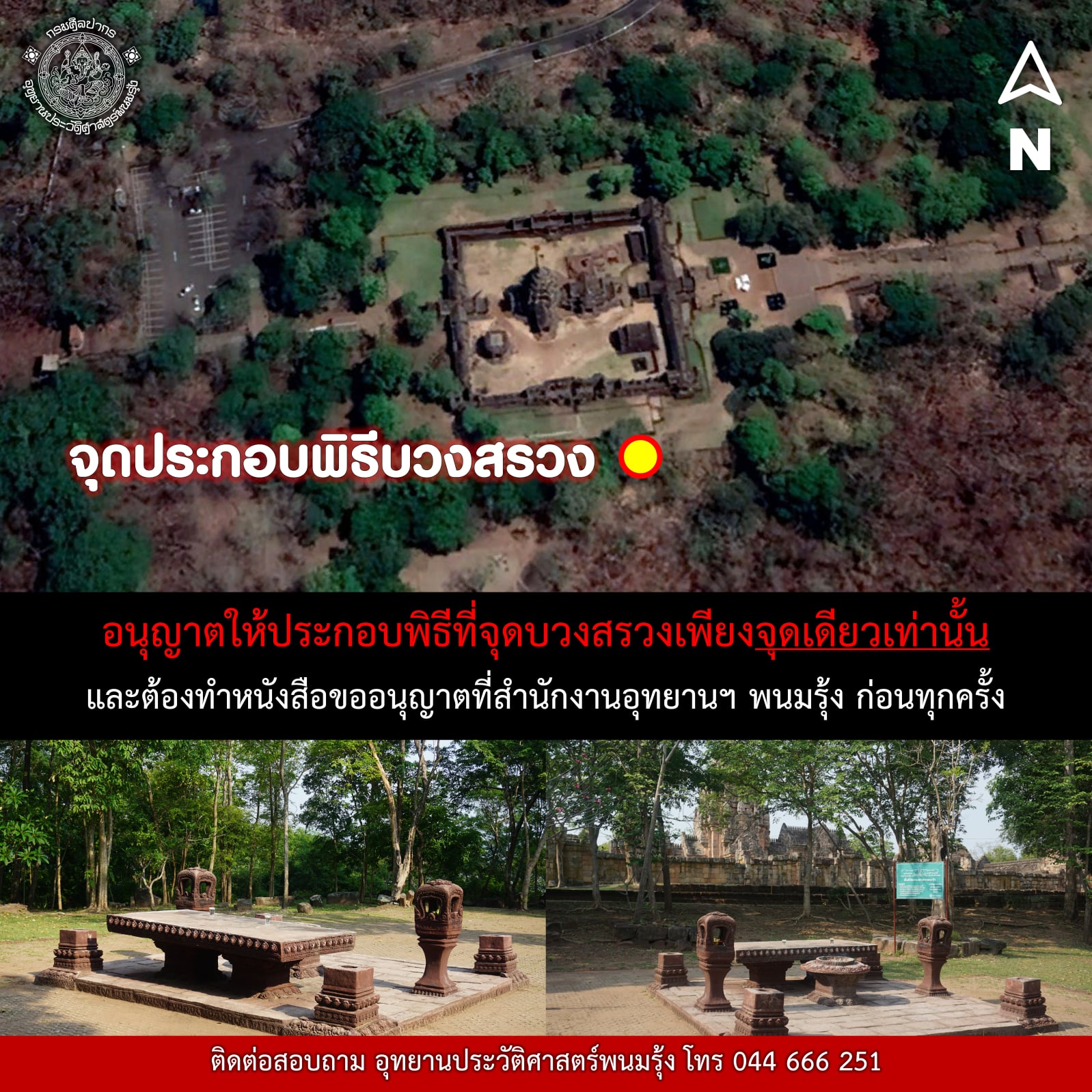 (หากต้องการประกอบพิธีบวงสรวง ด้วยเครื่องบวงสรวง ธูปเทียน ฯลฯ ต้องมาขออนุญาตที่ สำนักงานอุทยานประวัติศาสตร์พนมรุ้ง และทำพิธีเฉพาะบริเวณที่อุทยานฯจัดไว้ให้เท่านั้น)