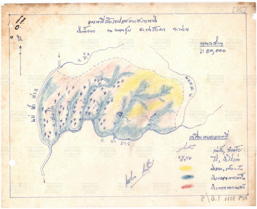 เอกสารอ้างอิง : หจช. พย. แผนที่สำนักงานป่าไม้จังหวัดน่าน กรมป่าไม้ กระทรวงเกษตรและ