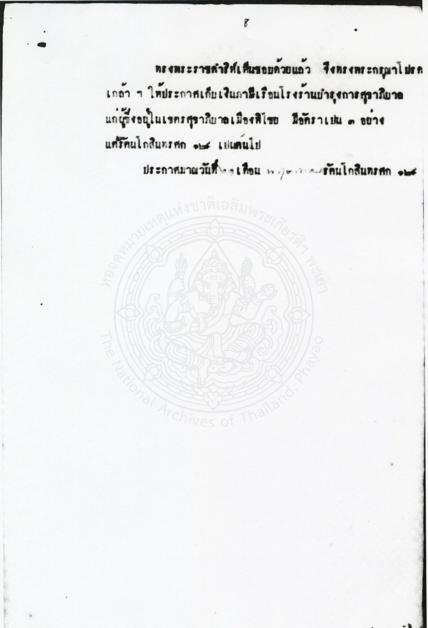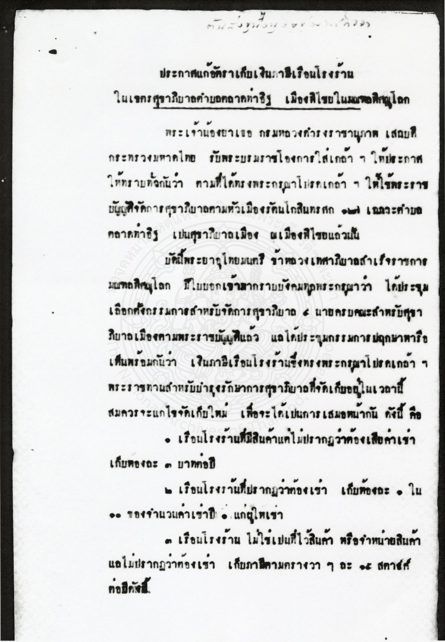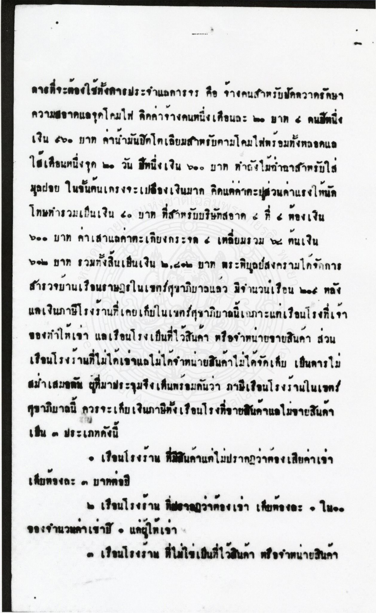1. เรือนโรงร้านที่มีสินค้าแต่ไม่เสียค่าเช่า เก็บห้องละ 3 บาท ต่อปี