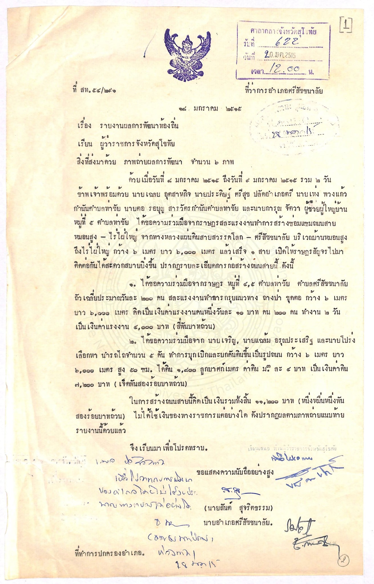 ปี 2515 นายอำเภอศรีสัชนาลัยขอความร่วมมือจากราษฎรช่วยกันซ่อมแซมถนนให้แล้วเสร็จภายใน 2 วัน เค้าทำได้อย่างไร ? . . . มาดูหลักฐานกัน