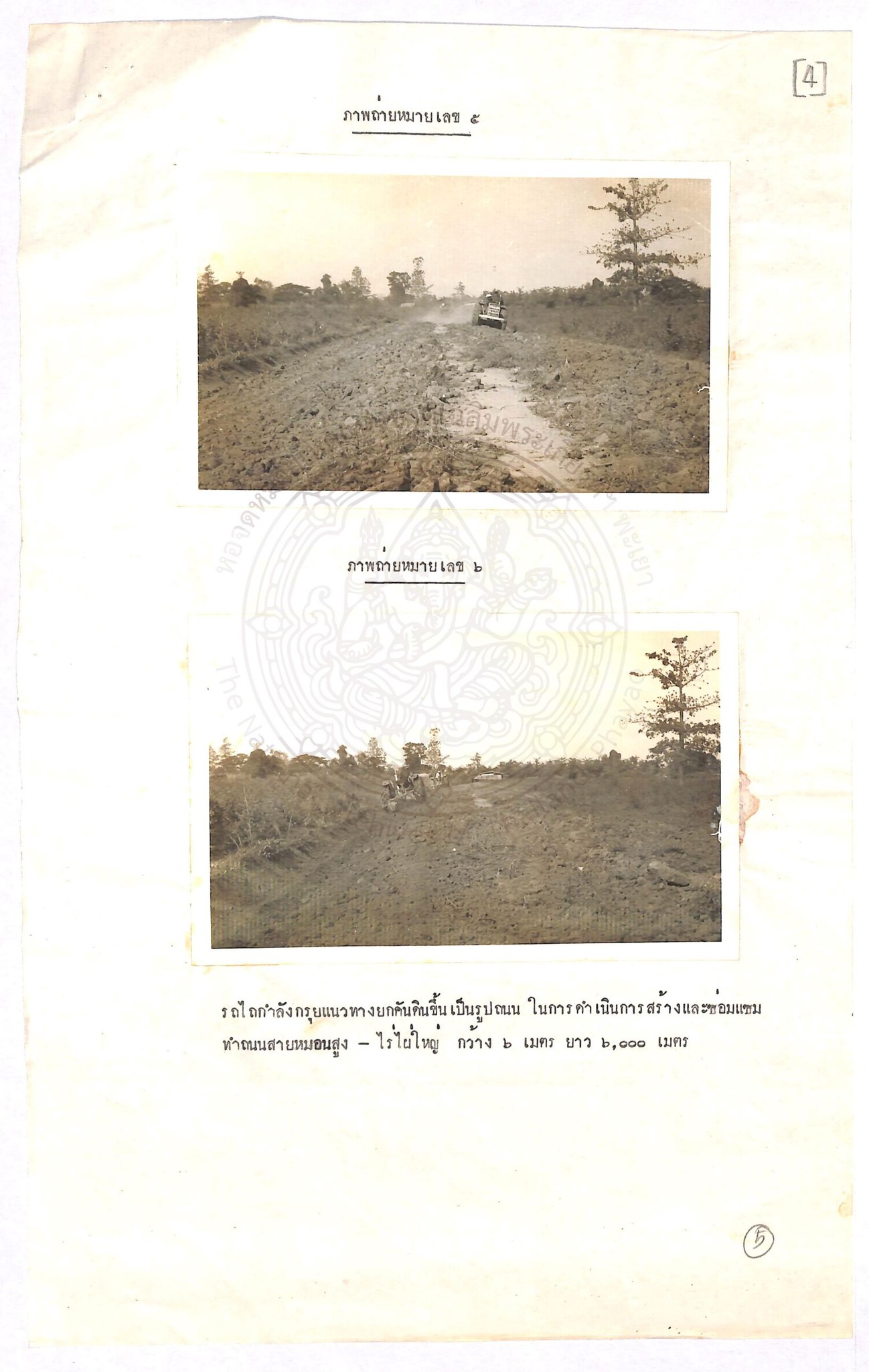 3. ขอรถไถ 5 คันมาช่วยยกคันดินขึ้นรูปถนนให้สูง 50 เซนติเมตรตลอดสาย