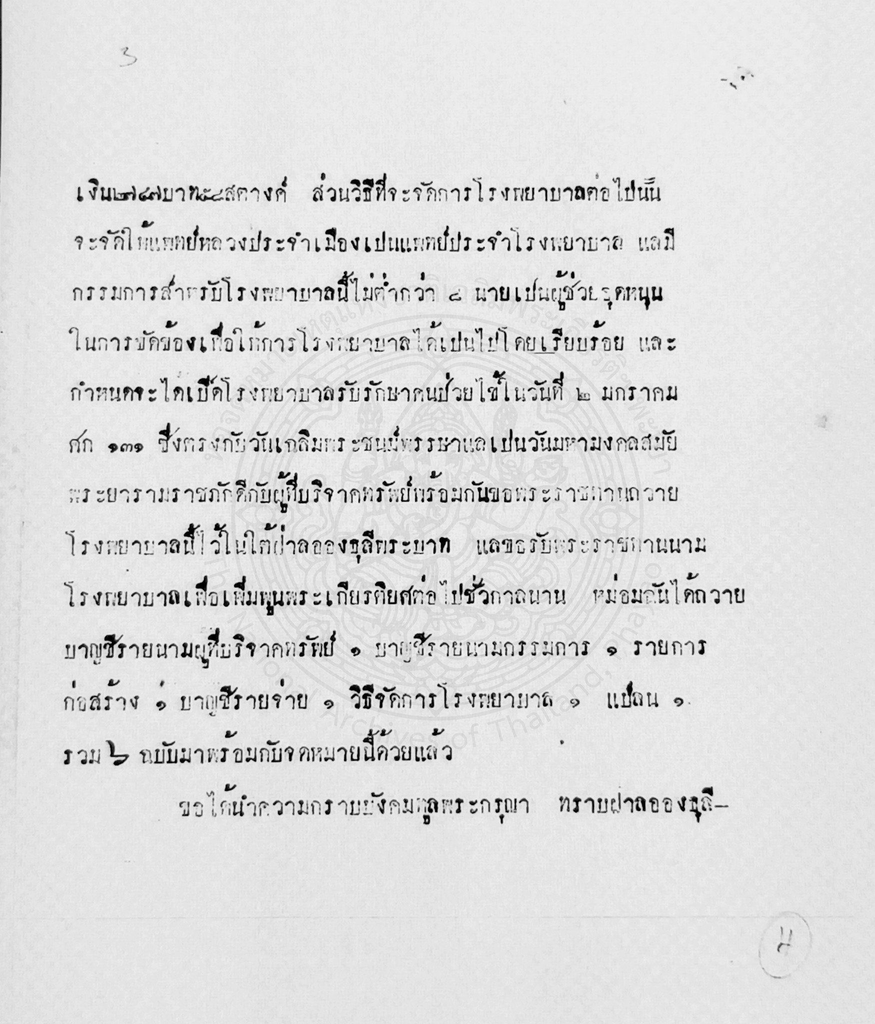 -- องค์ความรู้จากเอกสารจดหมายเหตุ : การจัดการโรงพยาบาลใหม่ --