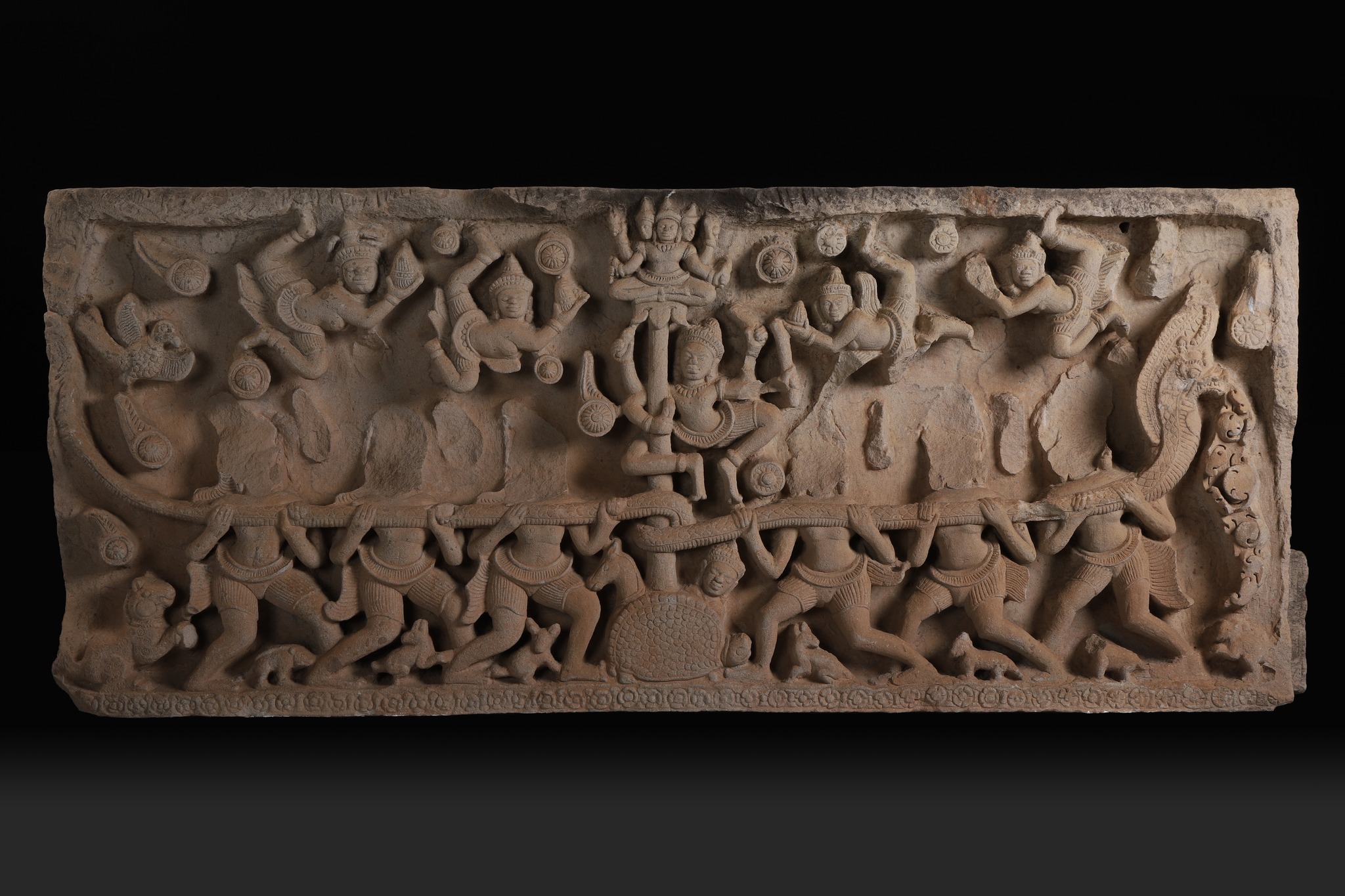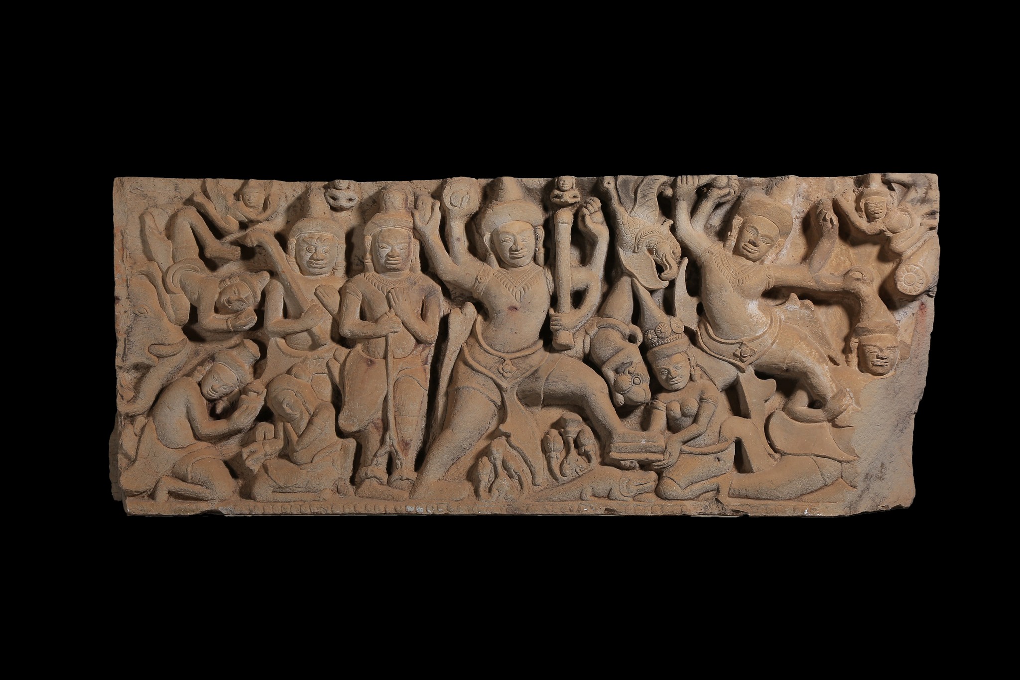 ในปีพ.ศ.2532 ศ.มจ.สุภัทรดิศ ดิศกุล ได้เขียนบทความเรื่อง " Stolen Art Objects Returned to Thailand" โดยระบุว่าทับหลังนารายณ์บรรทมสินธุ์จากกู่สวนแตง ได้ถูกขโมยไปเมื่อวันที่ 15 เมษายน พ.ศ.2507 และหลังจากนั้นได้ไปปรากฏในแคตตาล็อกของ Mr.Avery Brundage ซึ่งสนับสนุนโดย the Asia Foundation และนำไปจัดแสดงที่ De Young Museum ใน San Francisco หลังจากติดตามทวงคืนเป็นเวลานาน ประเทศไทยจึงได้รับทับหลังกู่สวนแตงคืนกลับสู่มาตุภูมิ เมื่อวันที่ 24 กรกฎาคม พ.ศ.2513 ปัจจุบันจัดแสดงอยู่ ณ พิพิธภัณฑสถานแห่งชาติ พระนคร ส่วนทับหลังชิ้นอื่นๆ นั้น ปัจจุบันเก็บรักษาอยู่ ณ พิพิธภัณฑสถานแห่งชาติ พิมาย