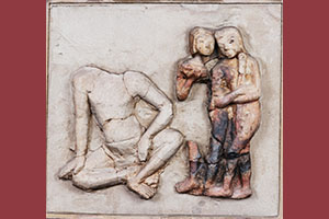 ภาพปูนปั้นเล่าเรื่องศยามกะชาดก (สุวรรณสาม)