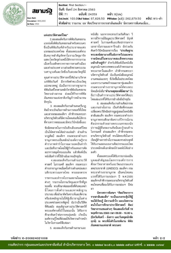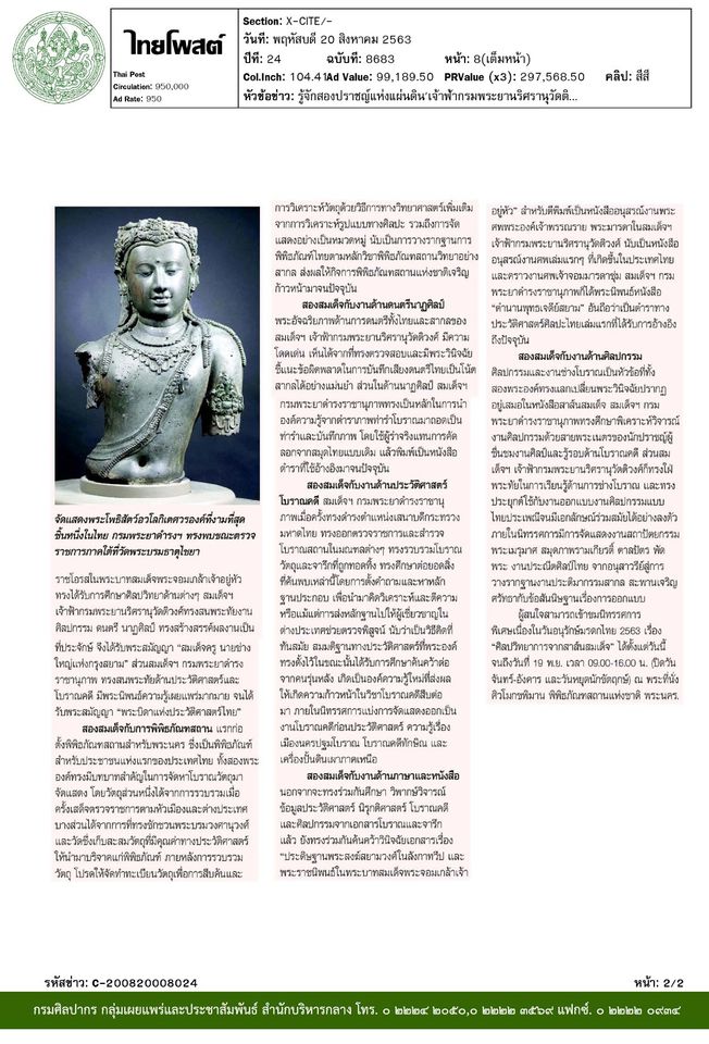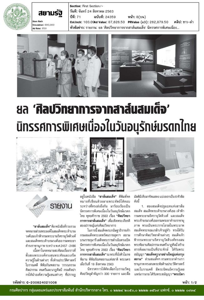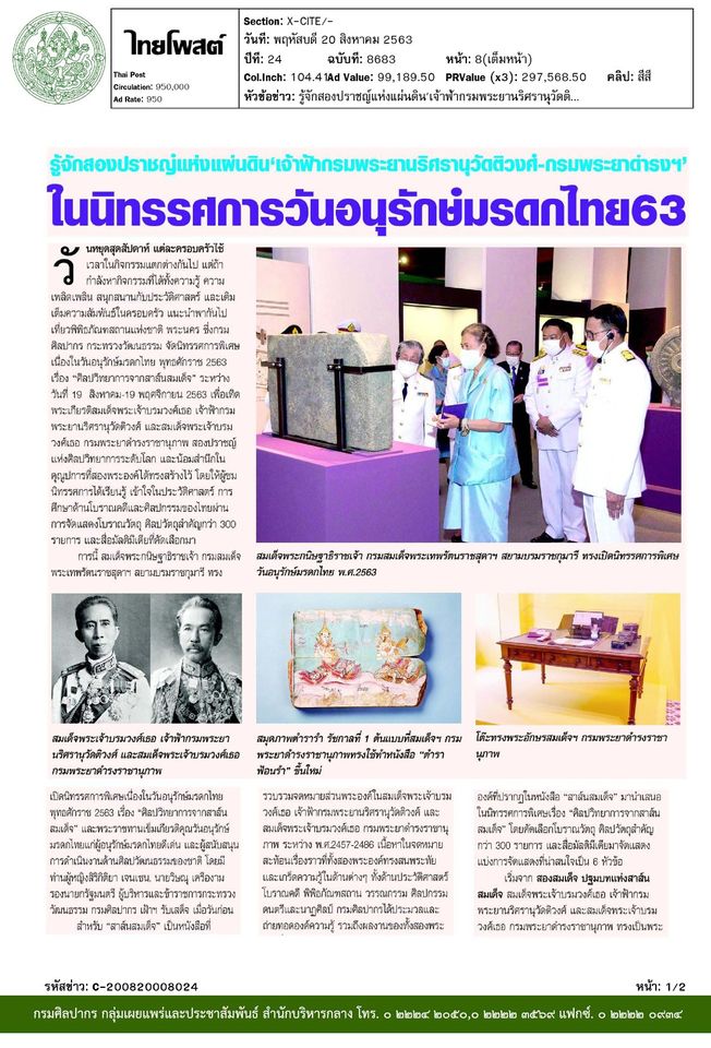 กรมศิลปากร กระทรวงวัฒนธรรม จัดนิทรรศการพิเศษ เนื่องในวันอนุรักษ์มรดกไทย พุทธศักราช ๒๕๖๓ เรื่อง “ศิลปวิทยาการจากสาส์นสมเด็จ”