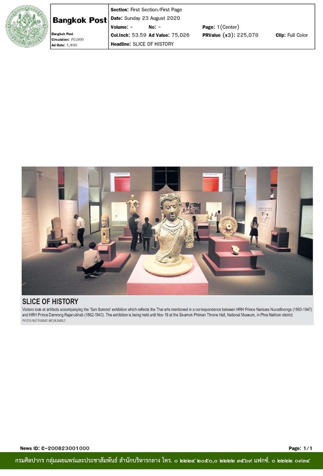 นิทรรศการพิเศษเนื่องในวันอนุรักษ์มรดกไทย ประจำปี ๒๕๖๓ เรื่อง “ศิลปวิทยาการจากสาส์นสมเด็จ” ๑๙ สิงหาคม ๒๕๖๓ - ๑๙ พฤศจิกายน ๒๕๖๓