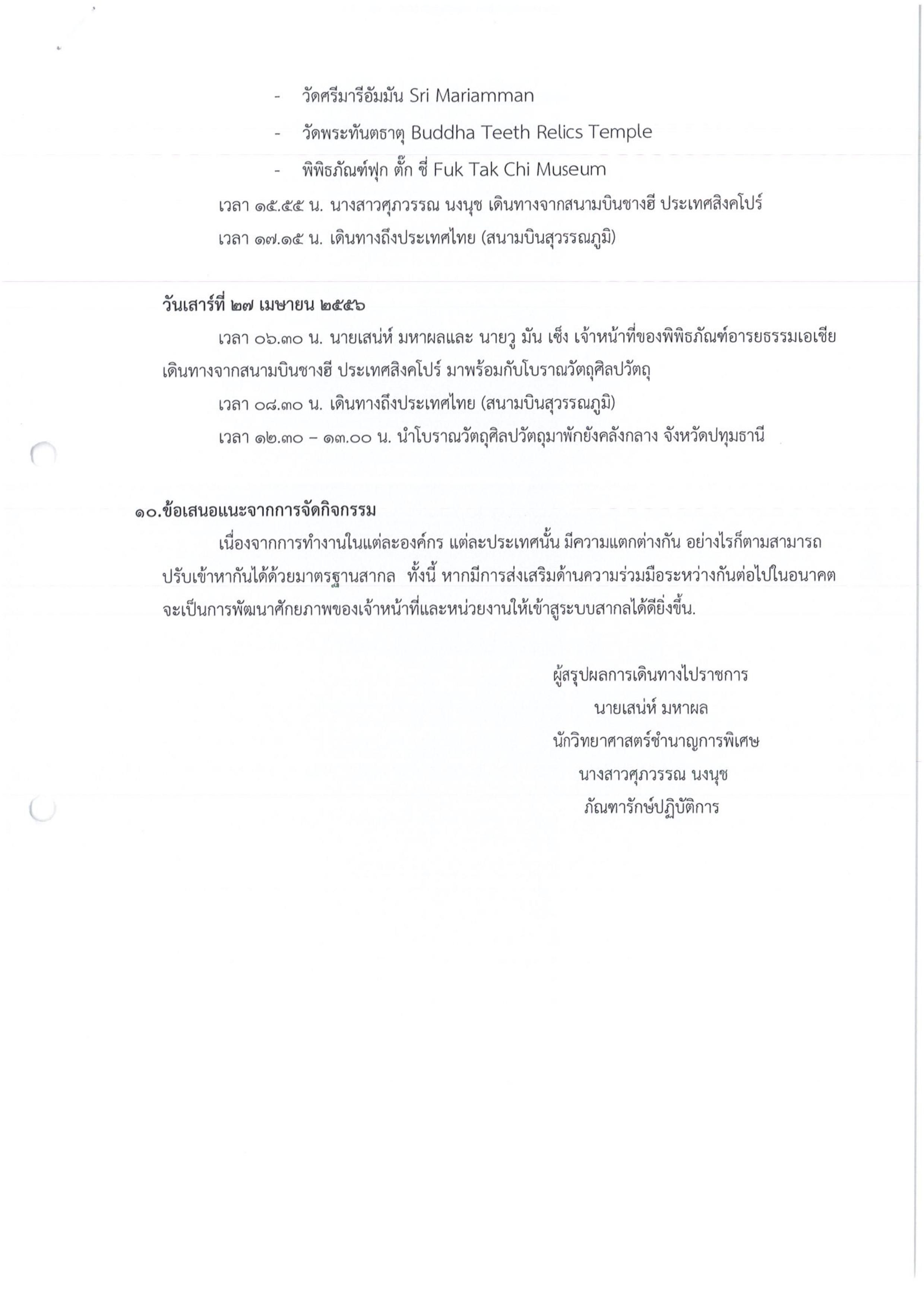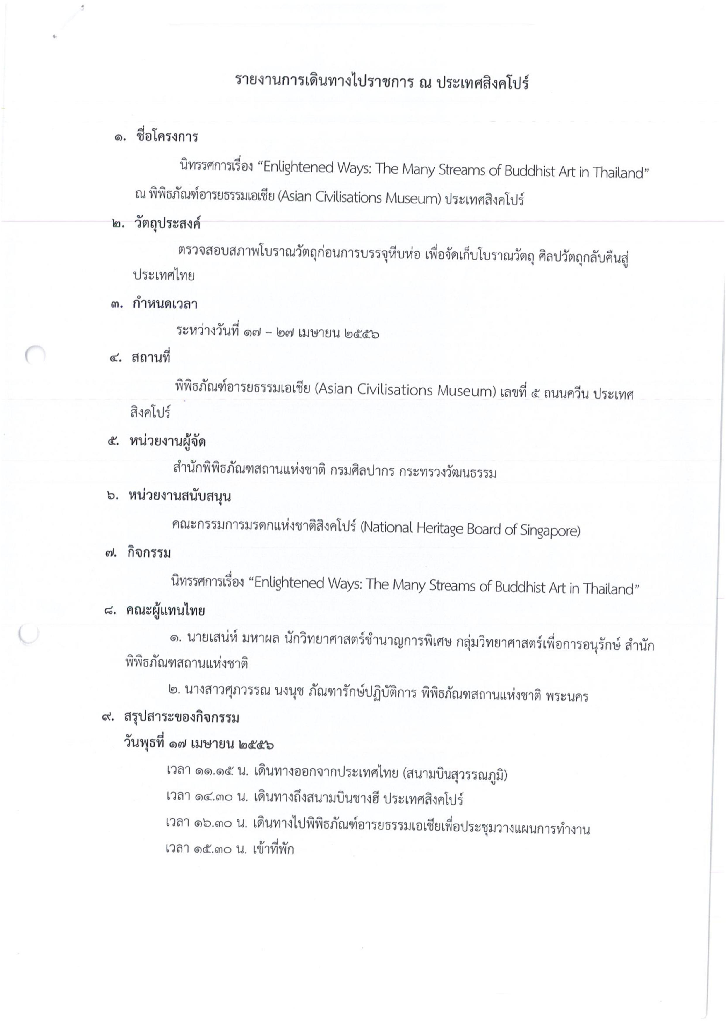 รายงานการเดินทางไปราชการ ณ ประเทศสิงคโปร์ ระหว่างวันที่ 11 - 22 พฤศจิกายน 2555 โครงการจัดนิทรรศการชั่วคราวเรื่อง “Enlighten Ways: The Many Streams of Buddhists in Thailand ” ณ พิพิธภัณฑ์อารยธรรมเอเชีย (Asian Civilisations Museum)