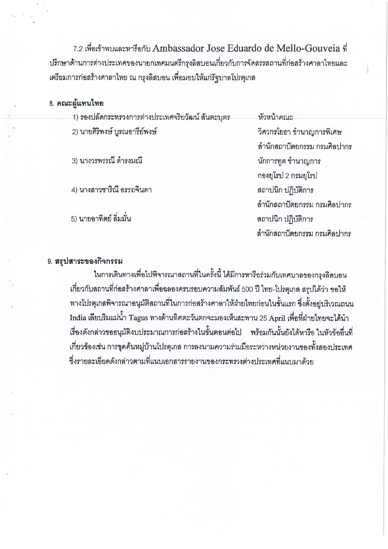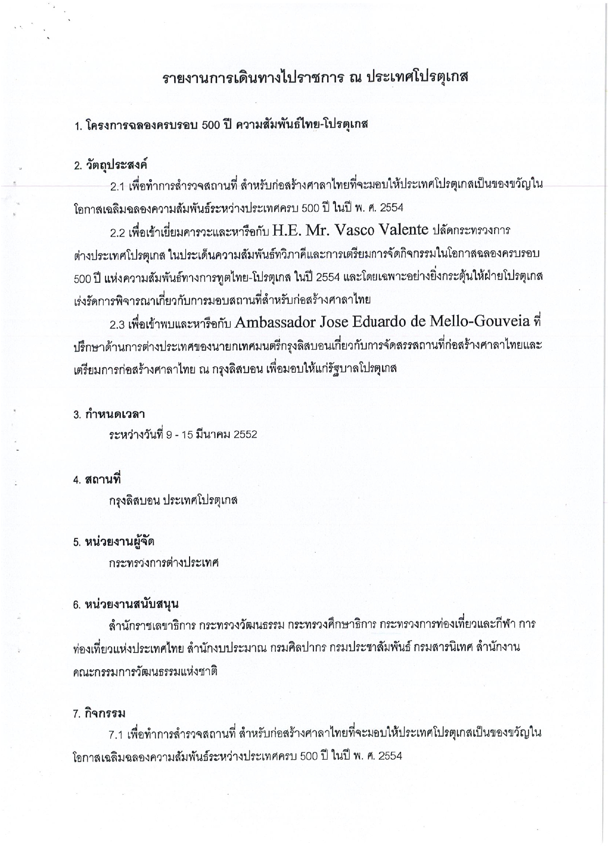 รายงานการเดินทางไปราชการ ณ ประเทศโปรตุเกส 2552 โครงการความสัมพันธ์ไทย-โปรตุเกส ครบ500 ปี