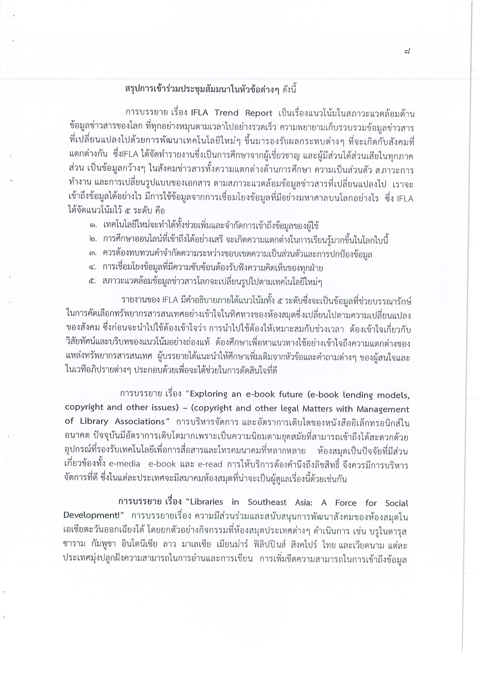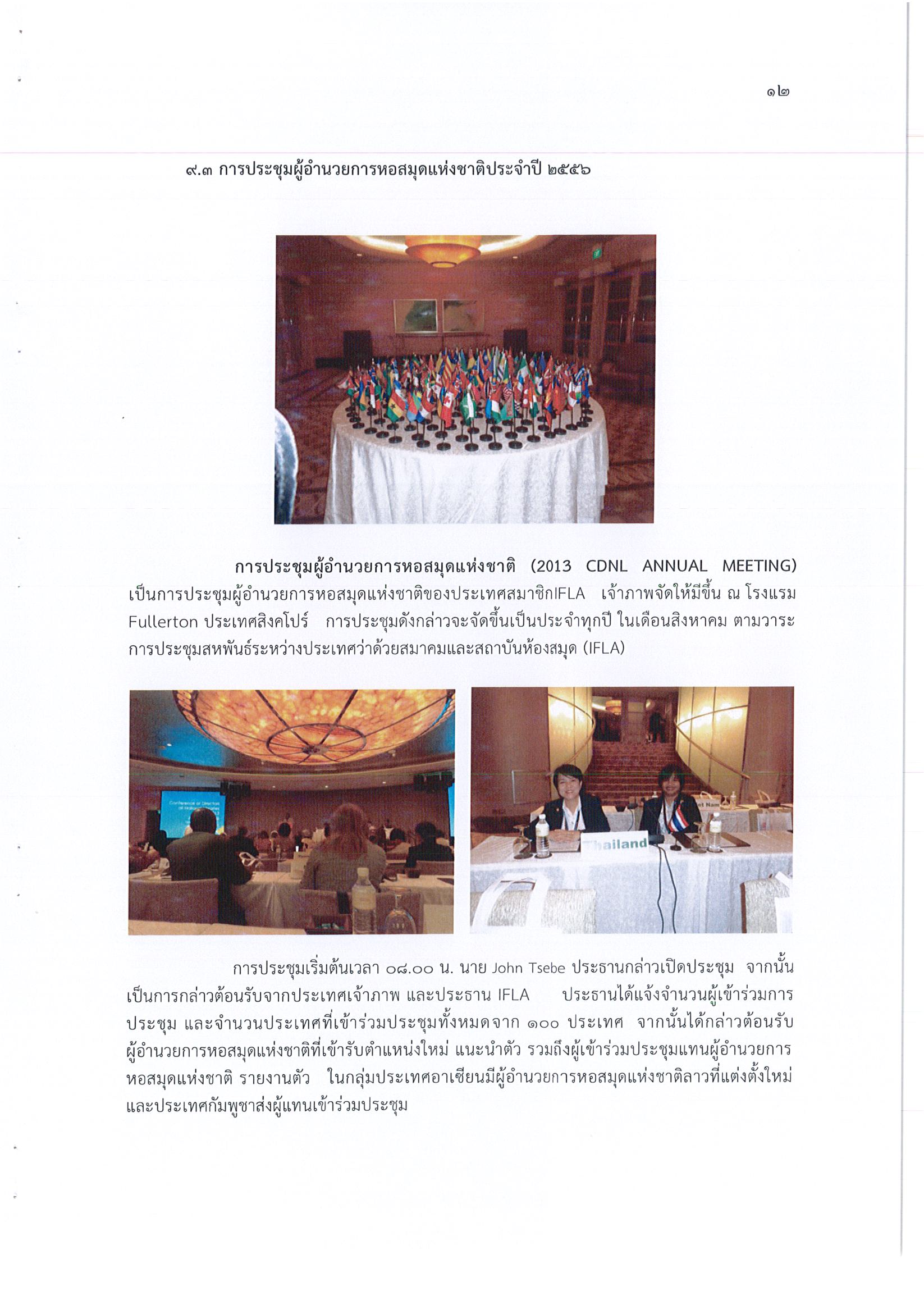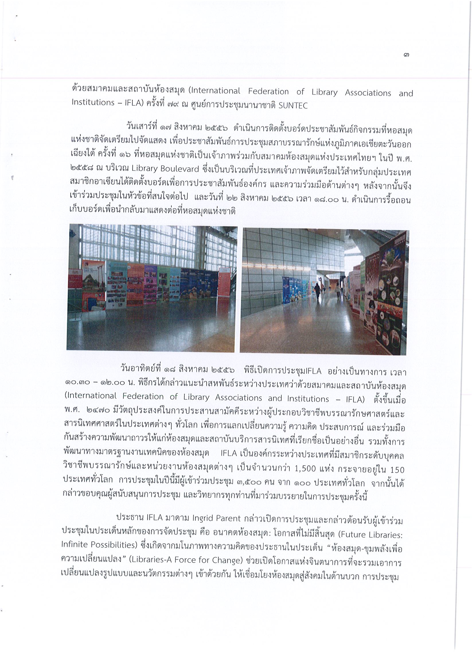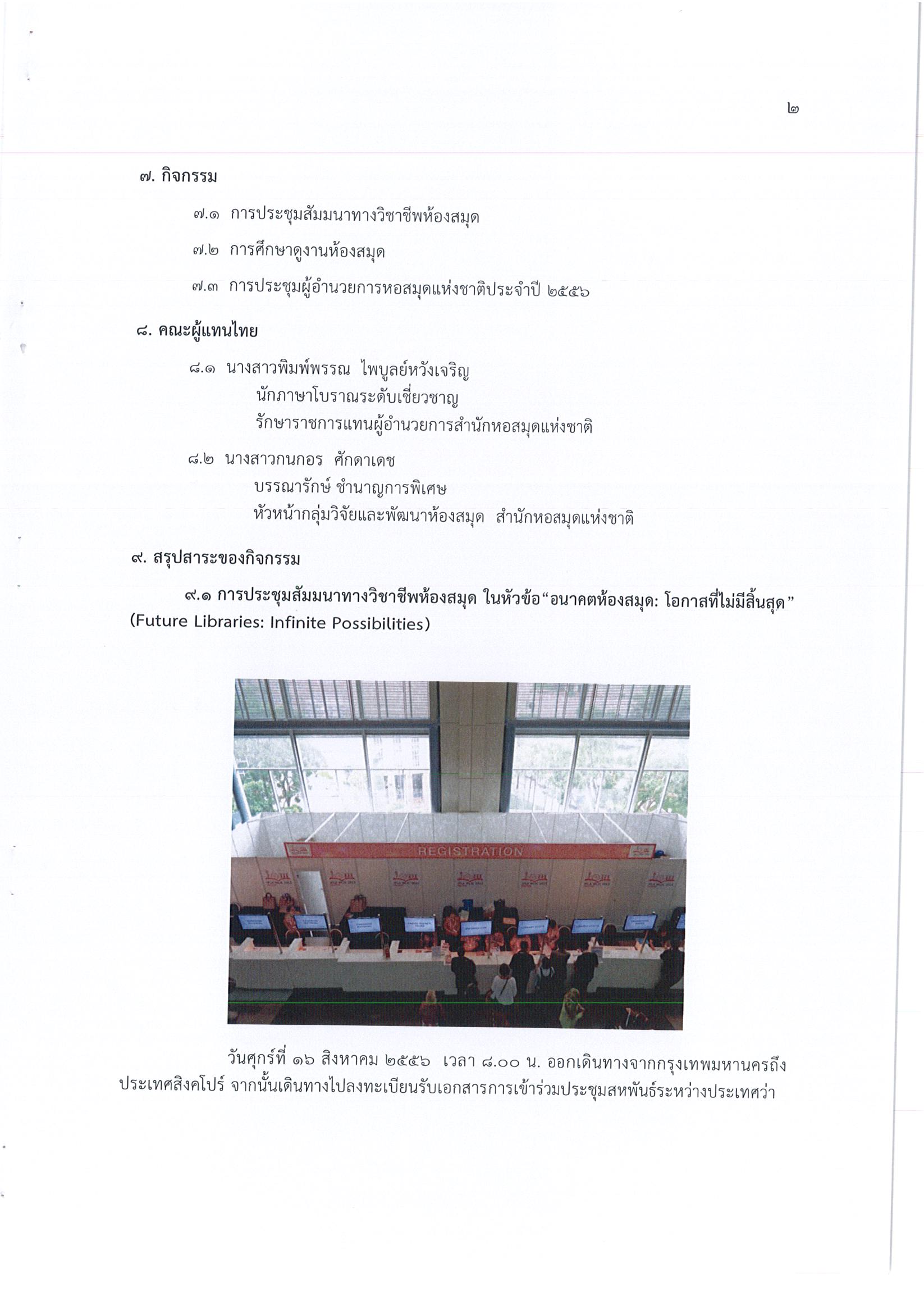 รายงานการเดินทางไปราชการ ณ ประเทศสิงคโปร์ ระหว่างวันที่ 16 – 23 สิงหาคม 2556 โครงการประชุมทางวิชาการประจำปีสมาพันธ์ระหว่างประเทศว่าด้วยสมาคมและสถาบันห้องสมุด IFLA WLIC 2013