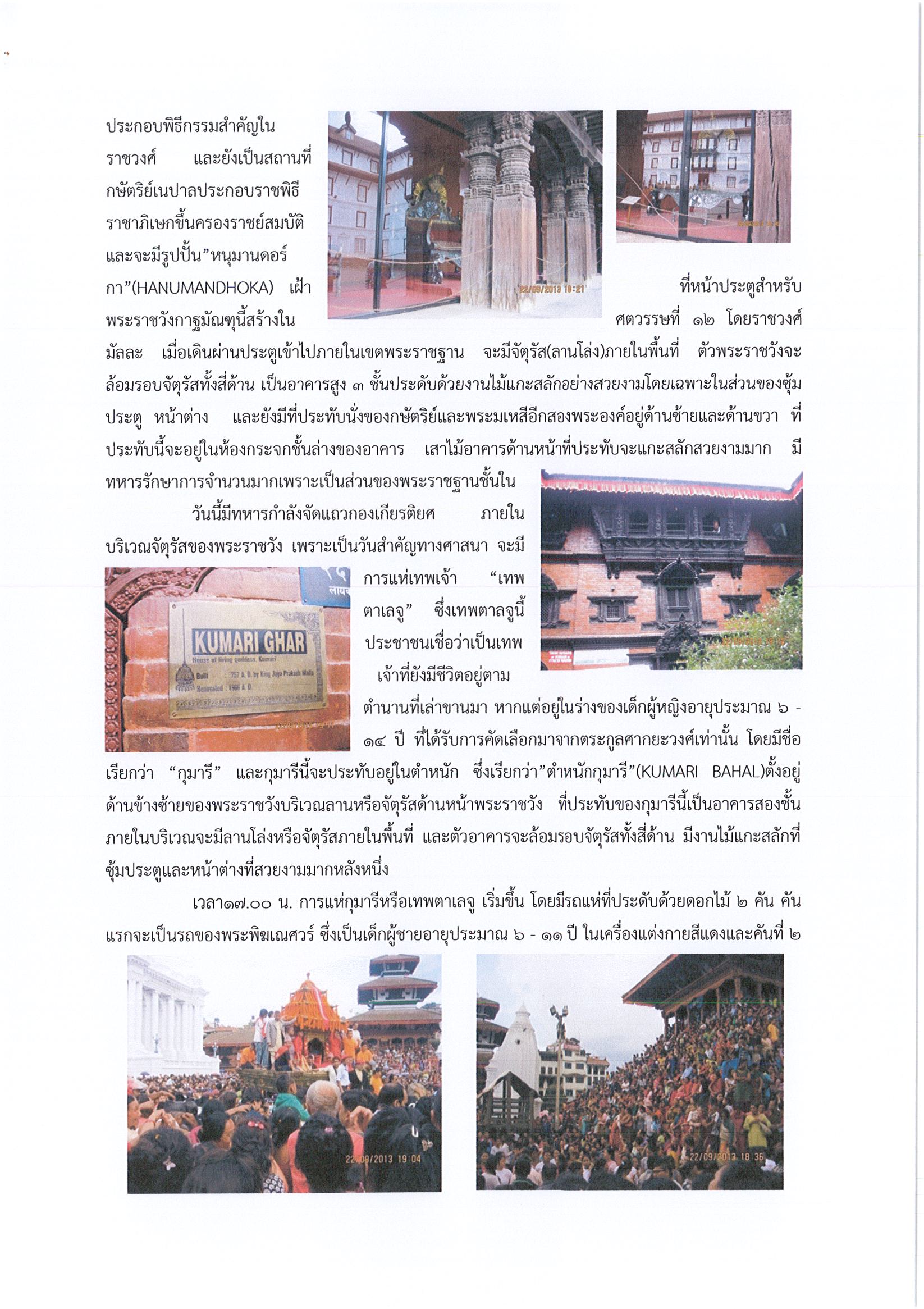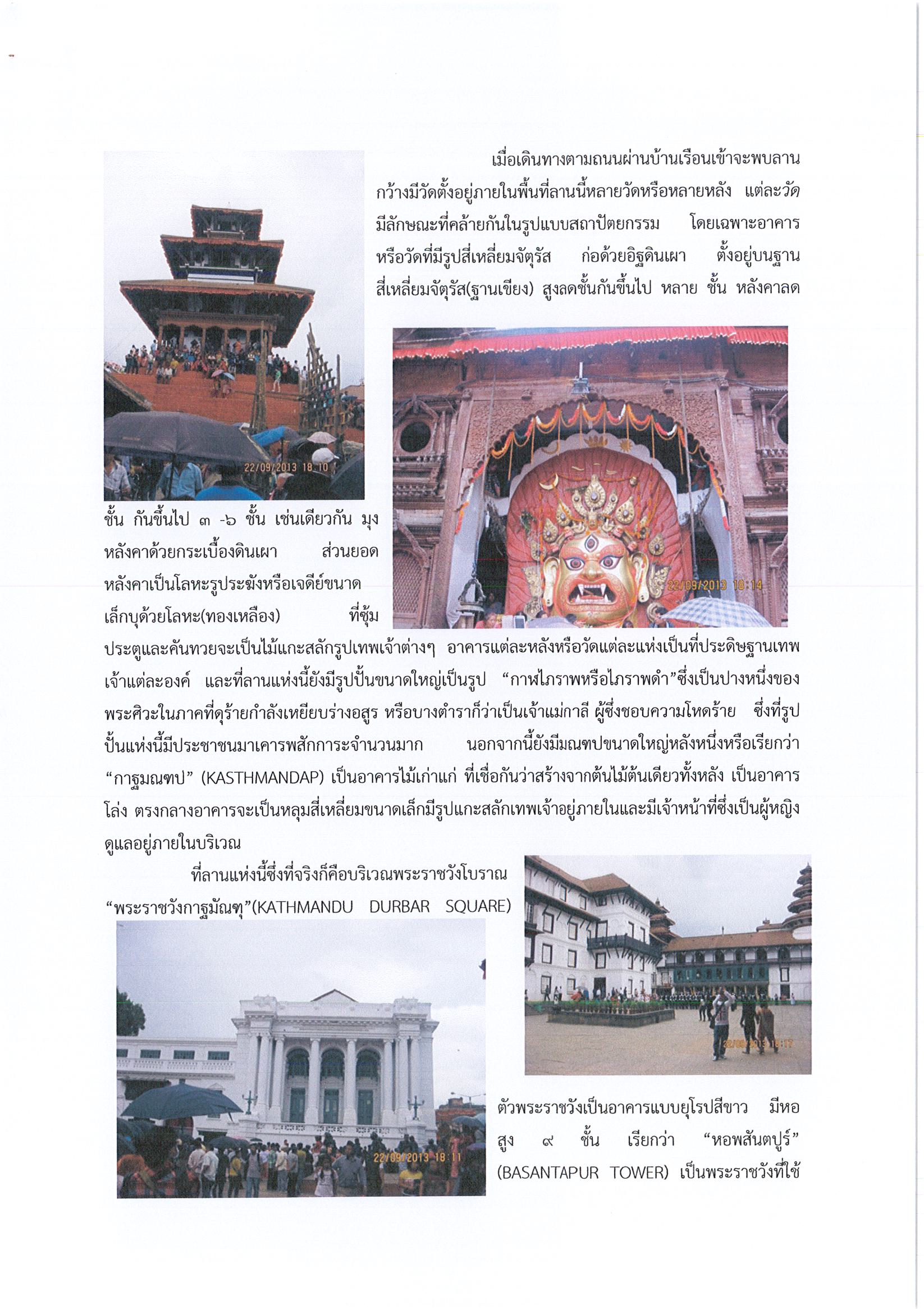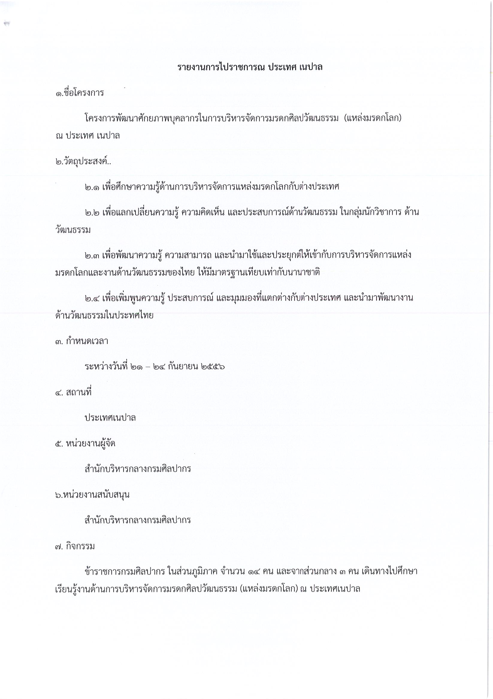 รายงานการเดินทางไปราชการ ณ สหพันธ์สาธารณรัฐประชาธิปไตยเนปาล ระหว่างวันที่ 21 -24 กันยายน 2556 โครงการพัฒนาศักยภาพบุคลากรในการบริหารจัดการมรดกศิลปวัฒนธรรม (แหล่งมรดกโลก)