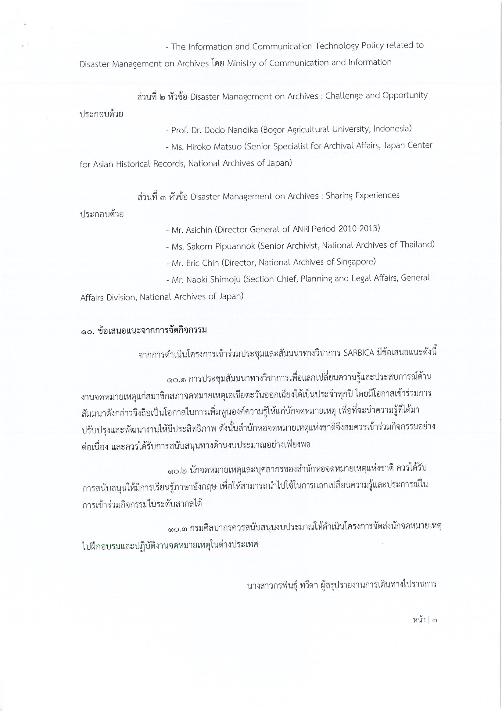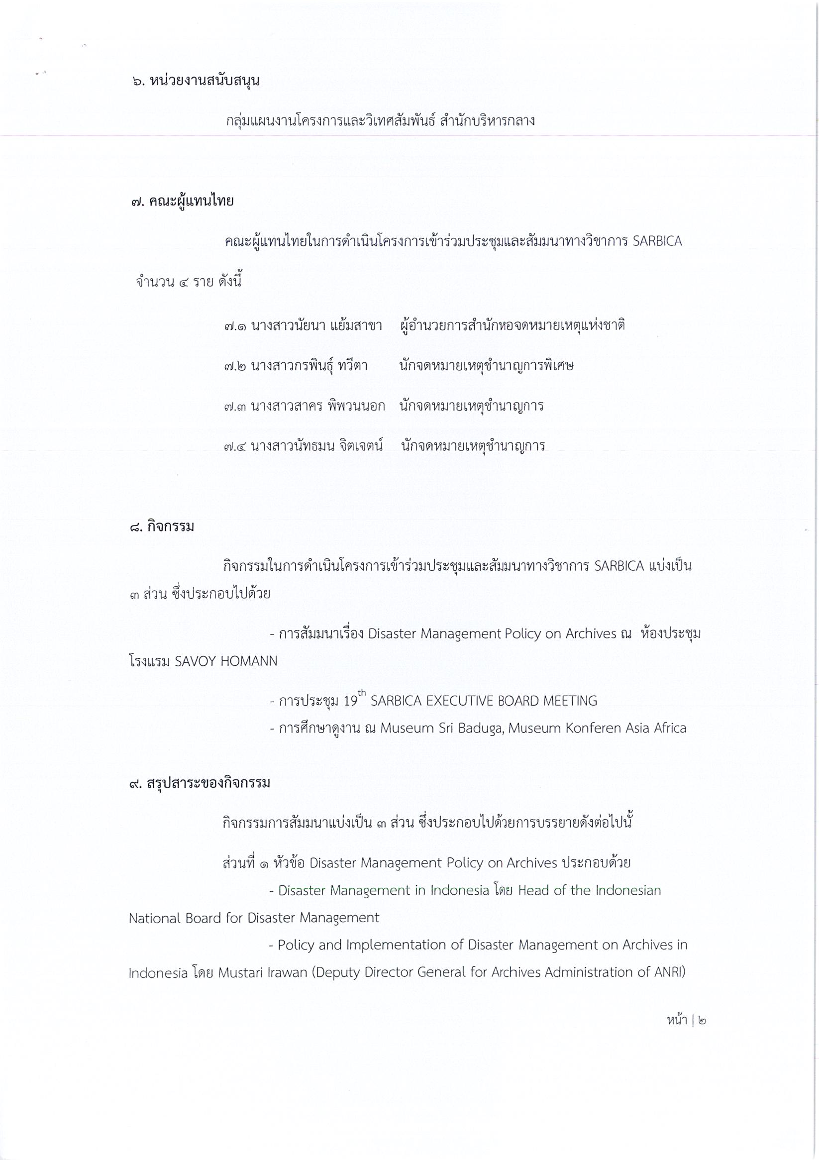 รายงานการเดินทางไปราชการ ณ สาธารณรัฐอินโดนีเซีย โครงการเข้าร่วมประชุมและสัมมนาทางวิชาการของสภาจดหมายเหตุระหว่างประเทศประจำภาคพื้นเอเชียอาคเนย์