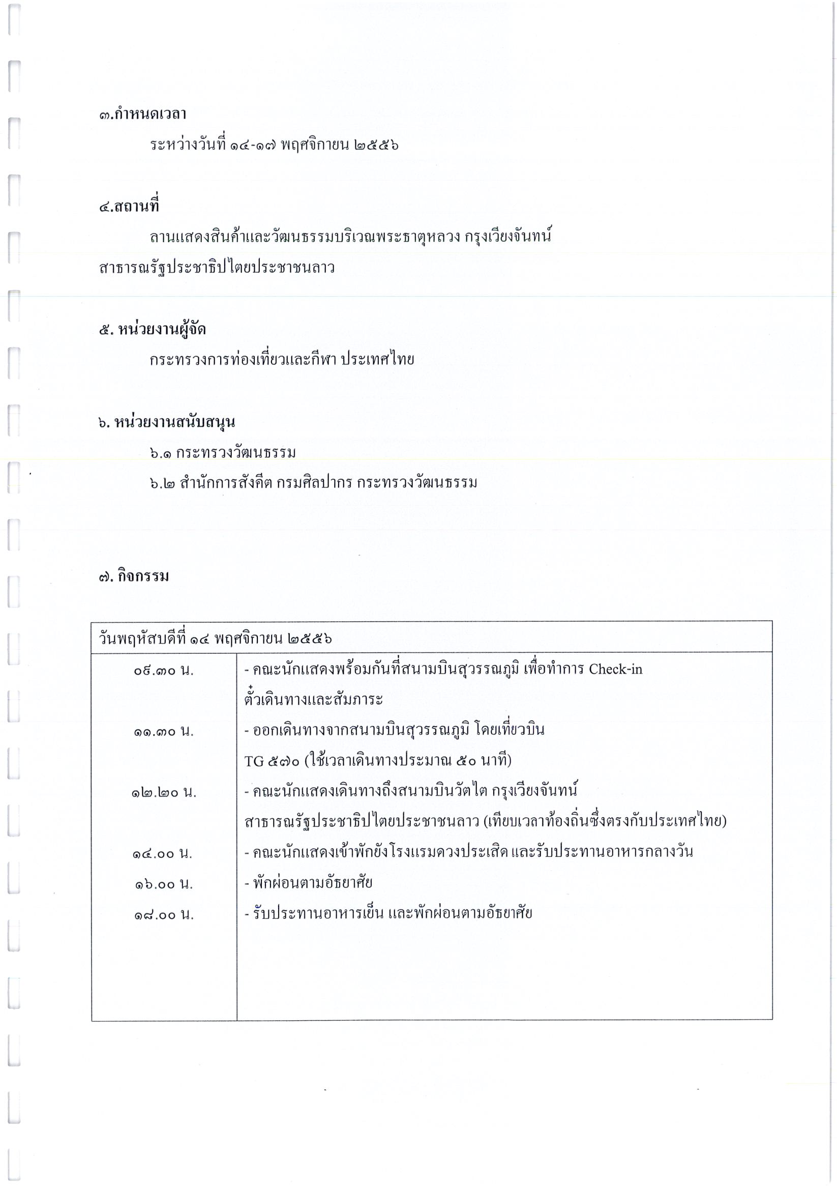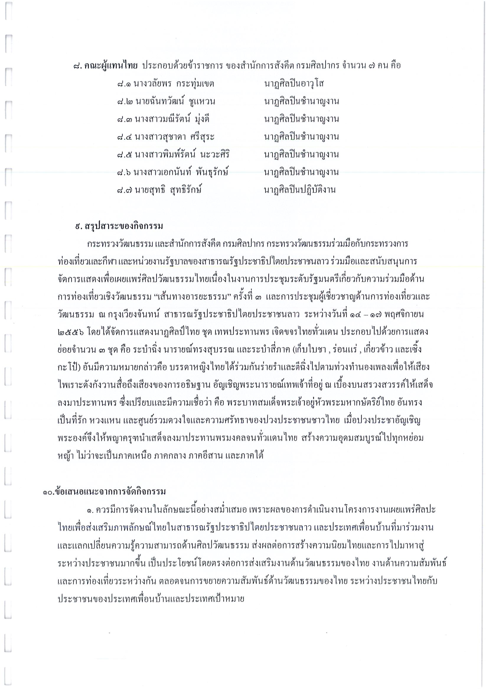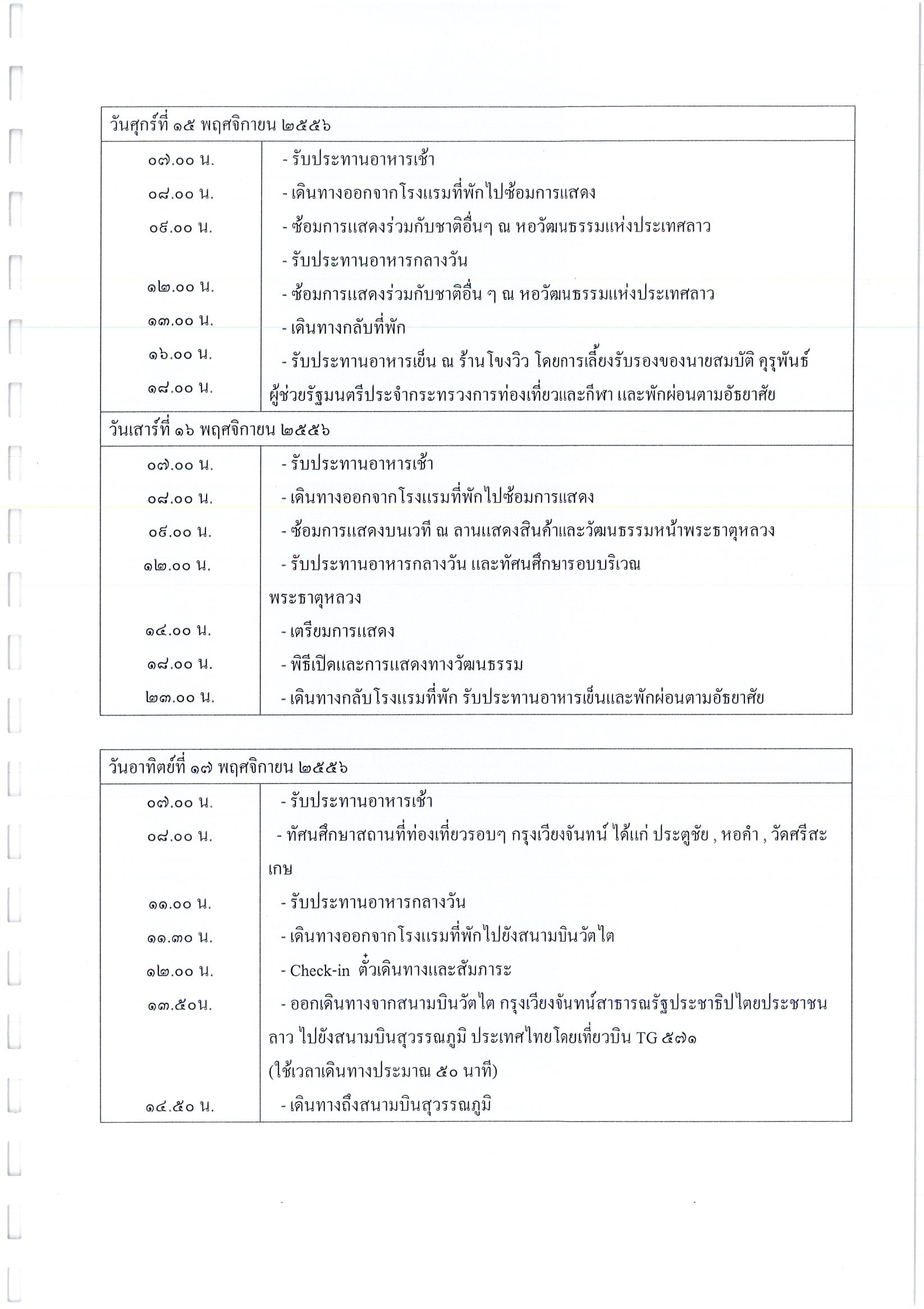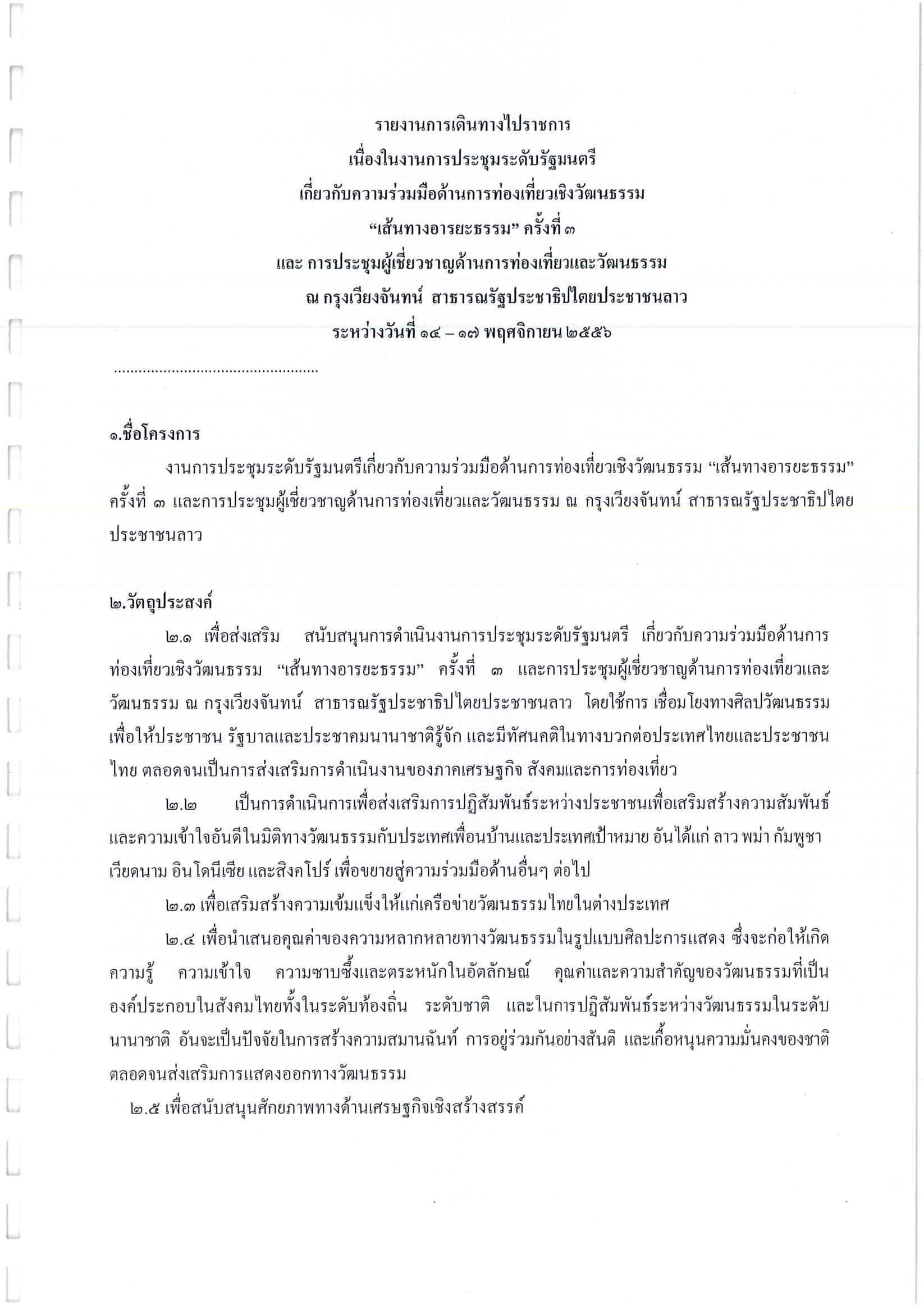 รายงานการเดินทางไปราชการ ณ กรุงเวียงจันทน์ สาธารณรัฐประชาธิปไตยประชาชนลาว ระหว่างวันที่ 14 -17 พฤศจิกายน 2556 เนื่องในงานการประชุมระดับรัฐมนตรีเกี่ยวกับความร่วมมือด้านการท่องเที่ยวเชิงวัฒนธรรม “เส้นทางอารยธรรม” ครั้งที่ 3 และการประชุมผู้เชี่ยวชาญด้านการท่องเที่ยวและวัฒนธรรม