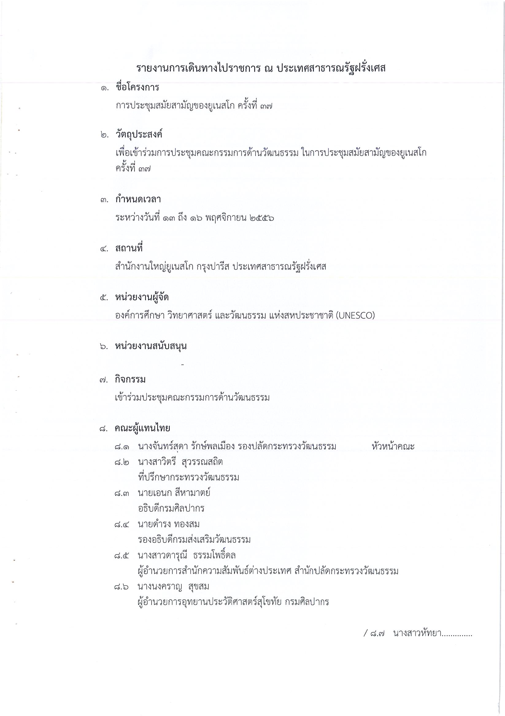 รายงานการเดินทางไปราชการ ณ สาธารณรัฐฝรั่งเศส ระหว่างวันที่ 13 – 16 พฤศจิกายน 2556 โครงการประชุมสมัยสามัญของยูเนสโก ครั้งที่ 37