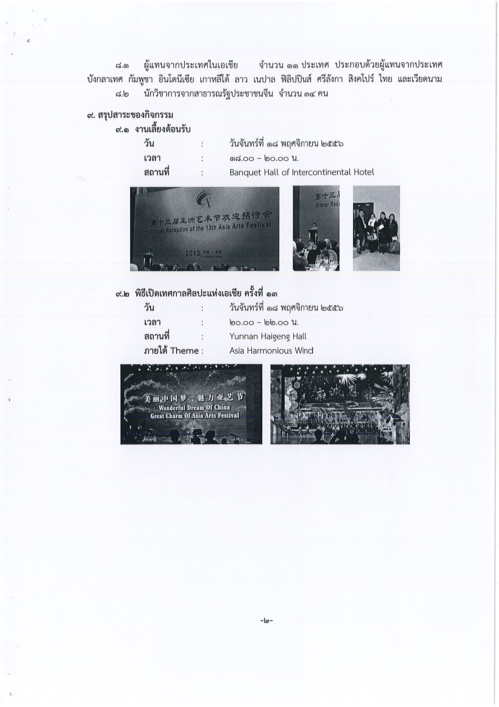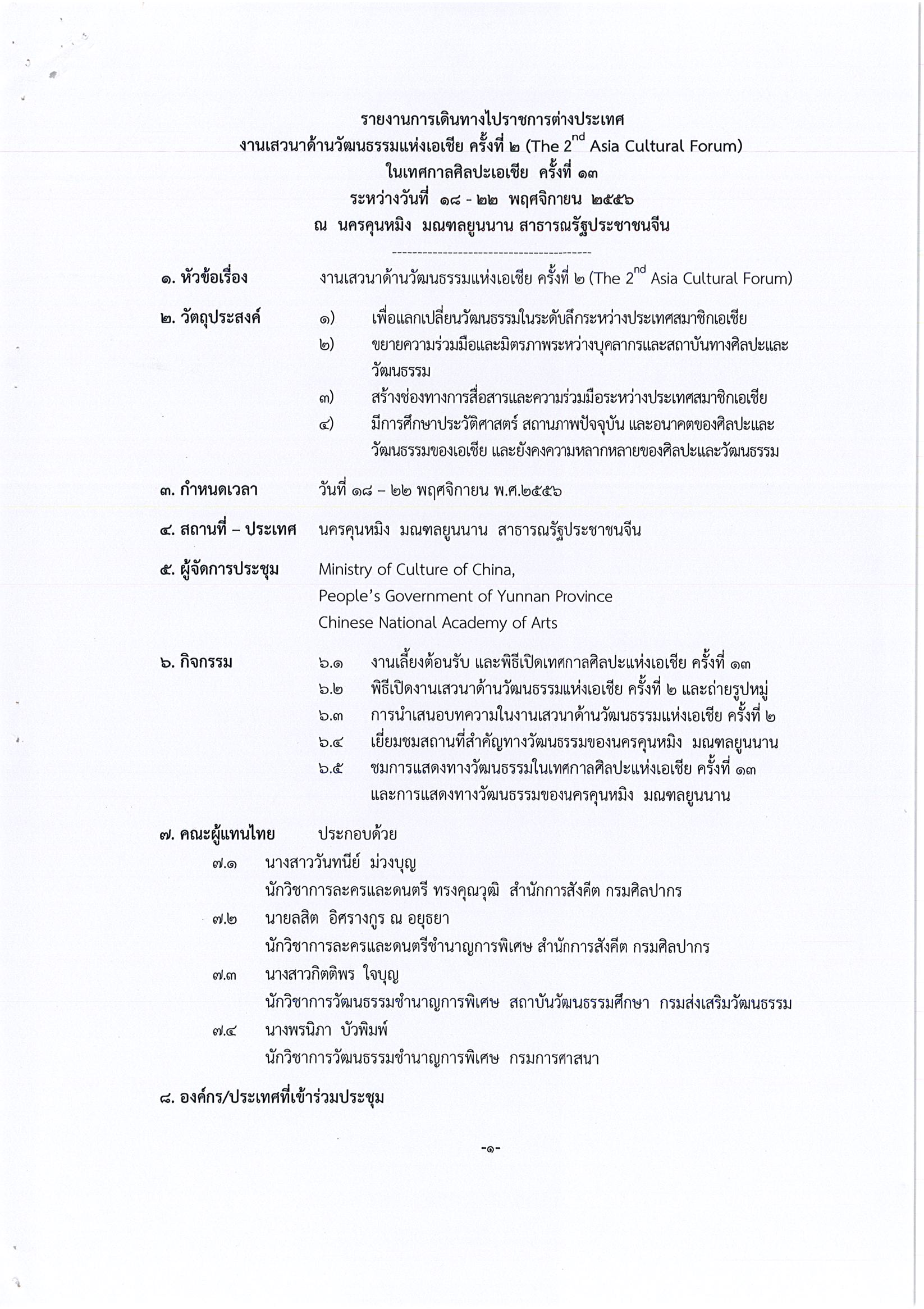รายงานการเดินทางไปราชการ ณ สาธารณรัฐประชาชนจีน ระหว่างวันที่ 18 – 22 พฤศจิกายน 2556 โครงการเสวนาด้านวัฒนธรรมเอเชียครั้งที่ 2 ในเทศกาลศิลปะเอเชีย ครั้งที่ 13 ณ นครคุนหมิง มณฑลยูนนาน