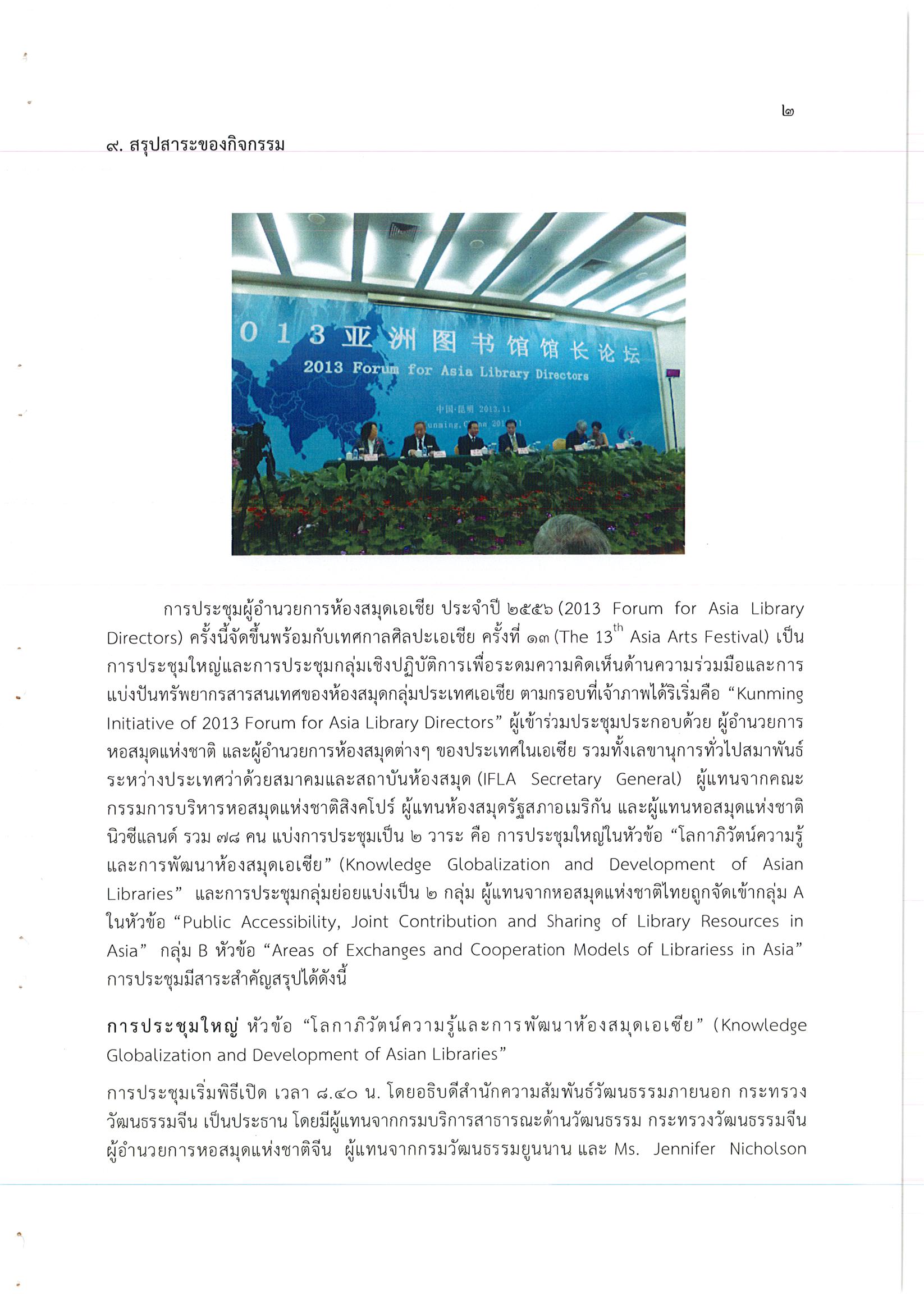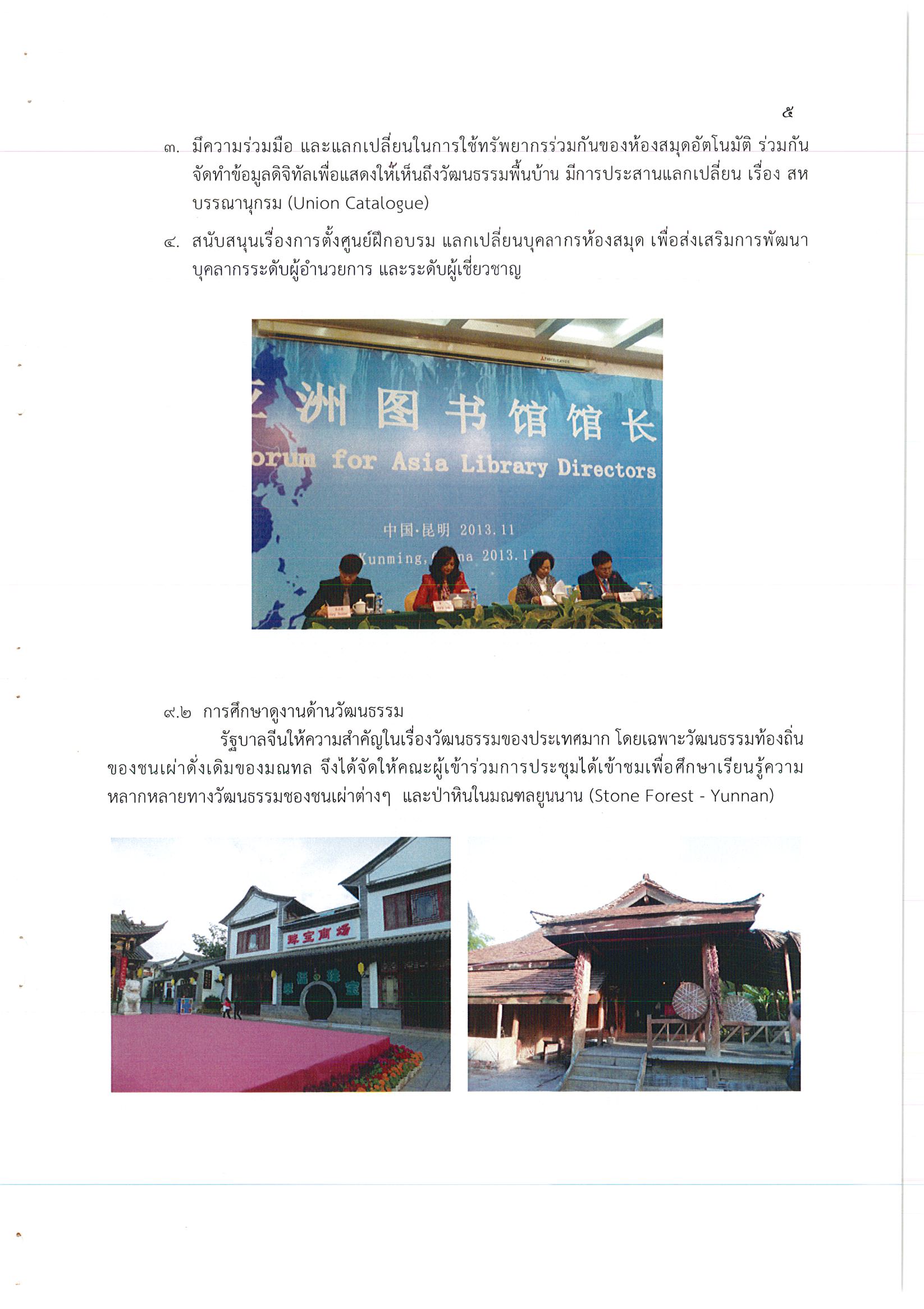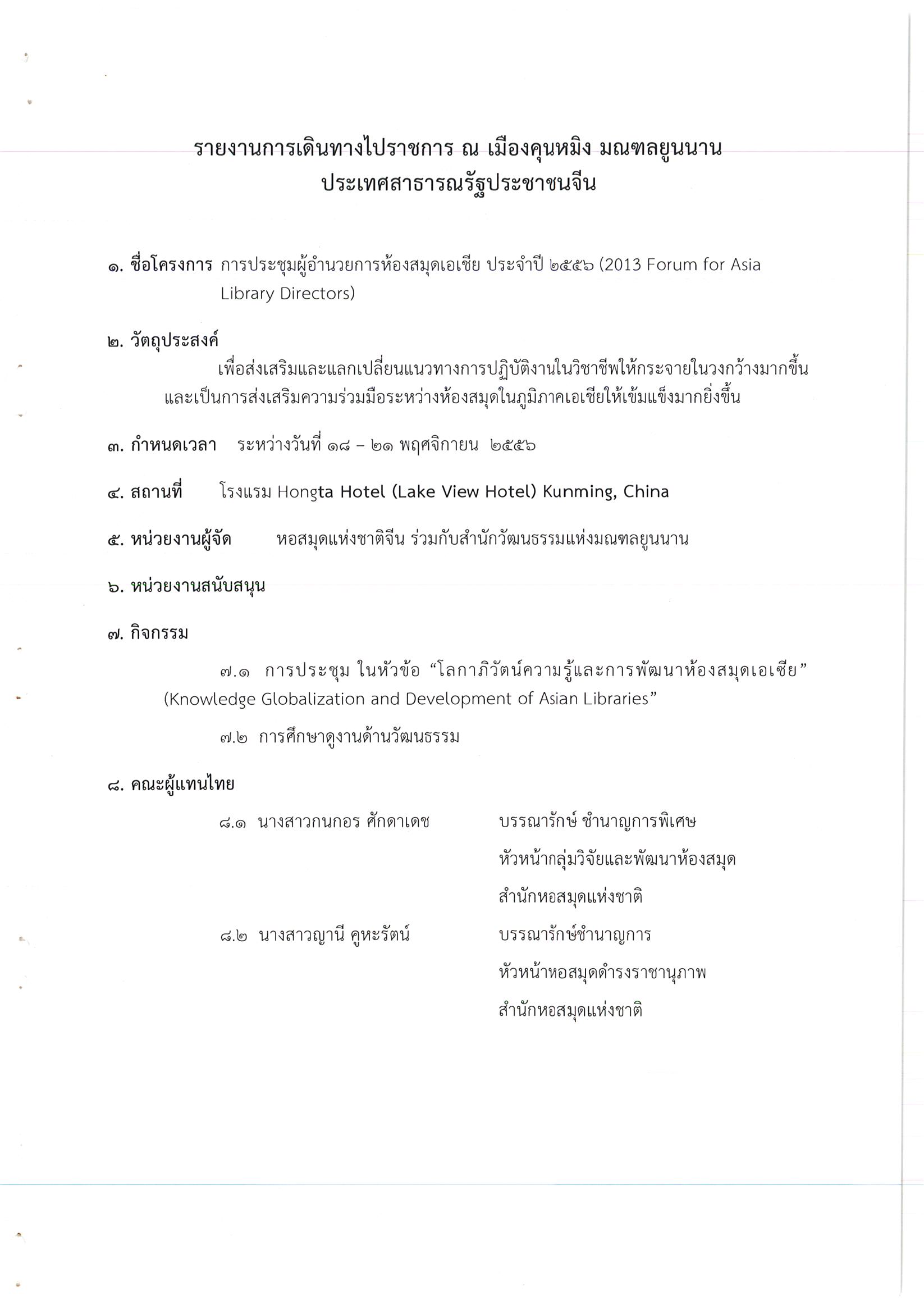 รายงานการเดินทางไปราชการ ณ สาธารณรัฐประชาชนจีน ระหว่างวันที่ 18 – 21 พฤศจิกายน 2556 โครงการประชุมผู้อำนวยการห้องสมุดเอเชีย ประจำปี 2556 ณ นครคุนหมิง มณฑลยูนนาน