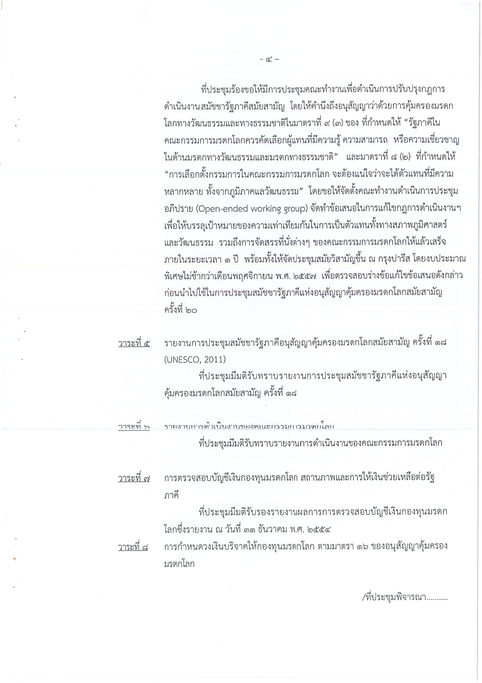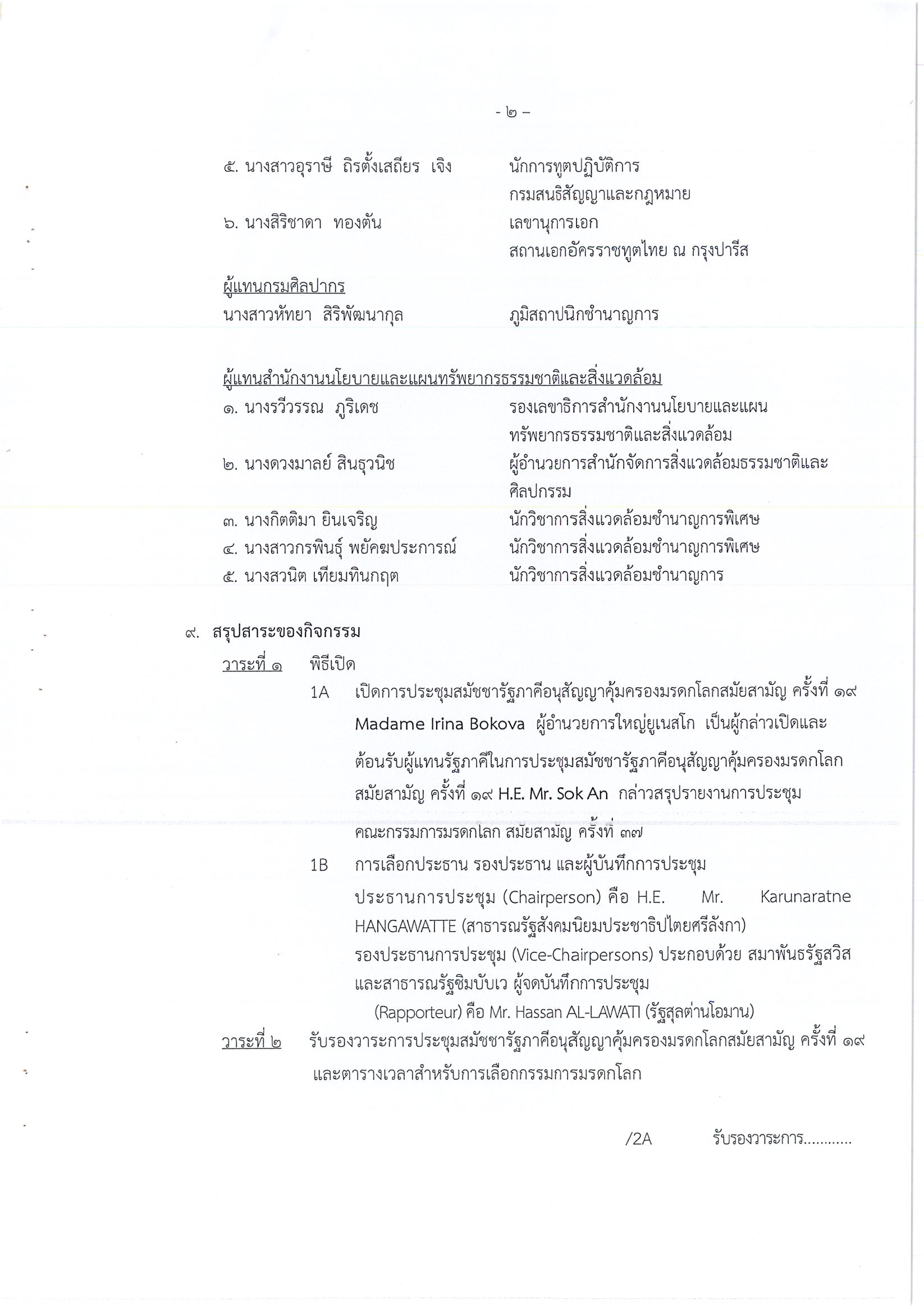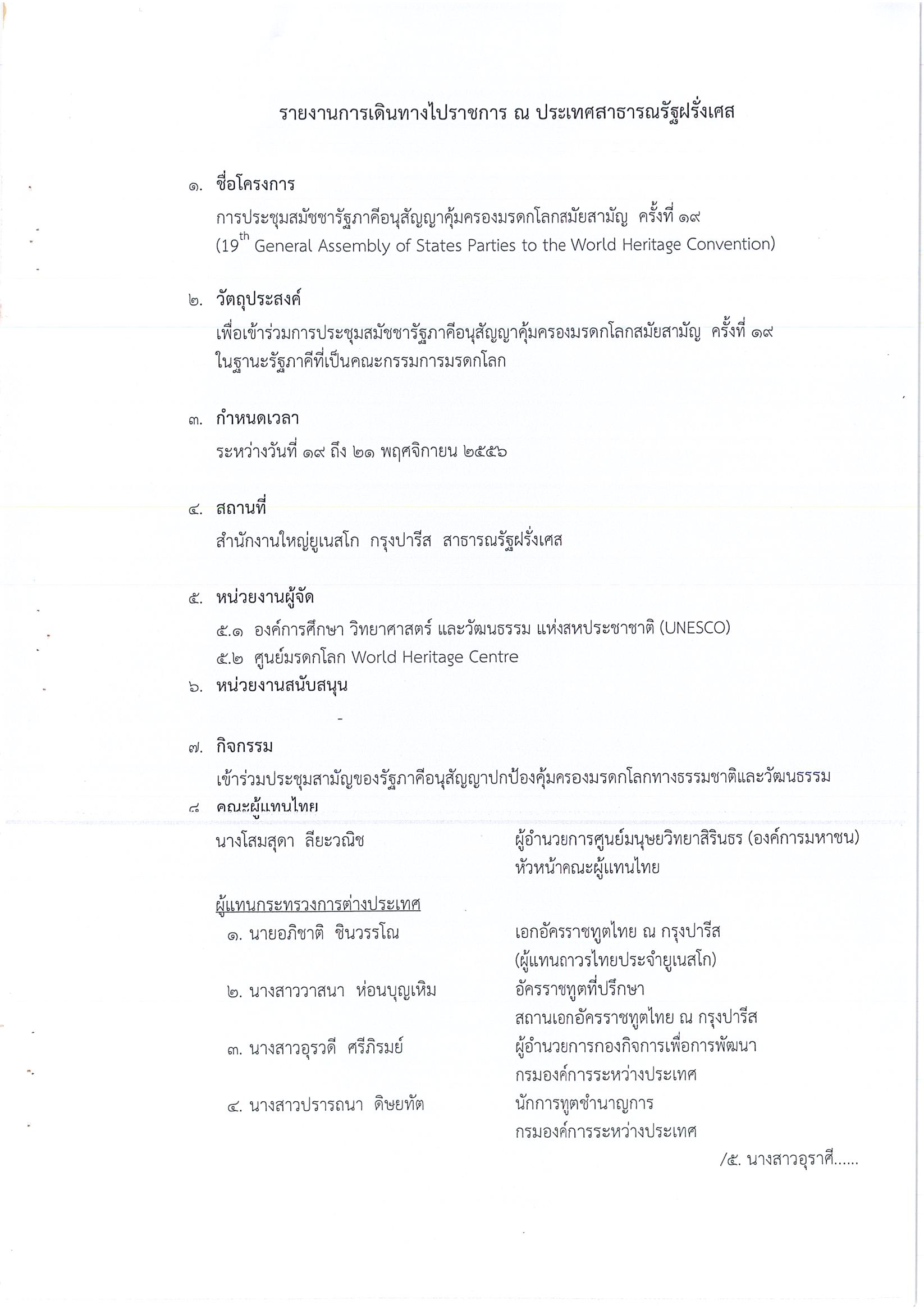 รายงานการเดินทางไปราชการ ณ สาธารณรัฐฝรั่งเศส ระหว่างวันที่ 19 – 21 พฤศจิกายน 2556 โครงการประชุมสมัชชารัฐภาคีอนุสัญญาคุ้มครองมรดกโลกสมัยสามัญ ครั้งที่ 19
