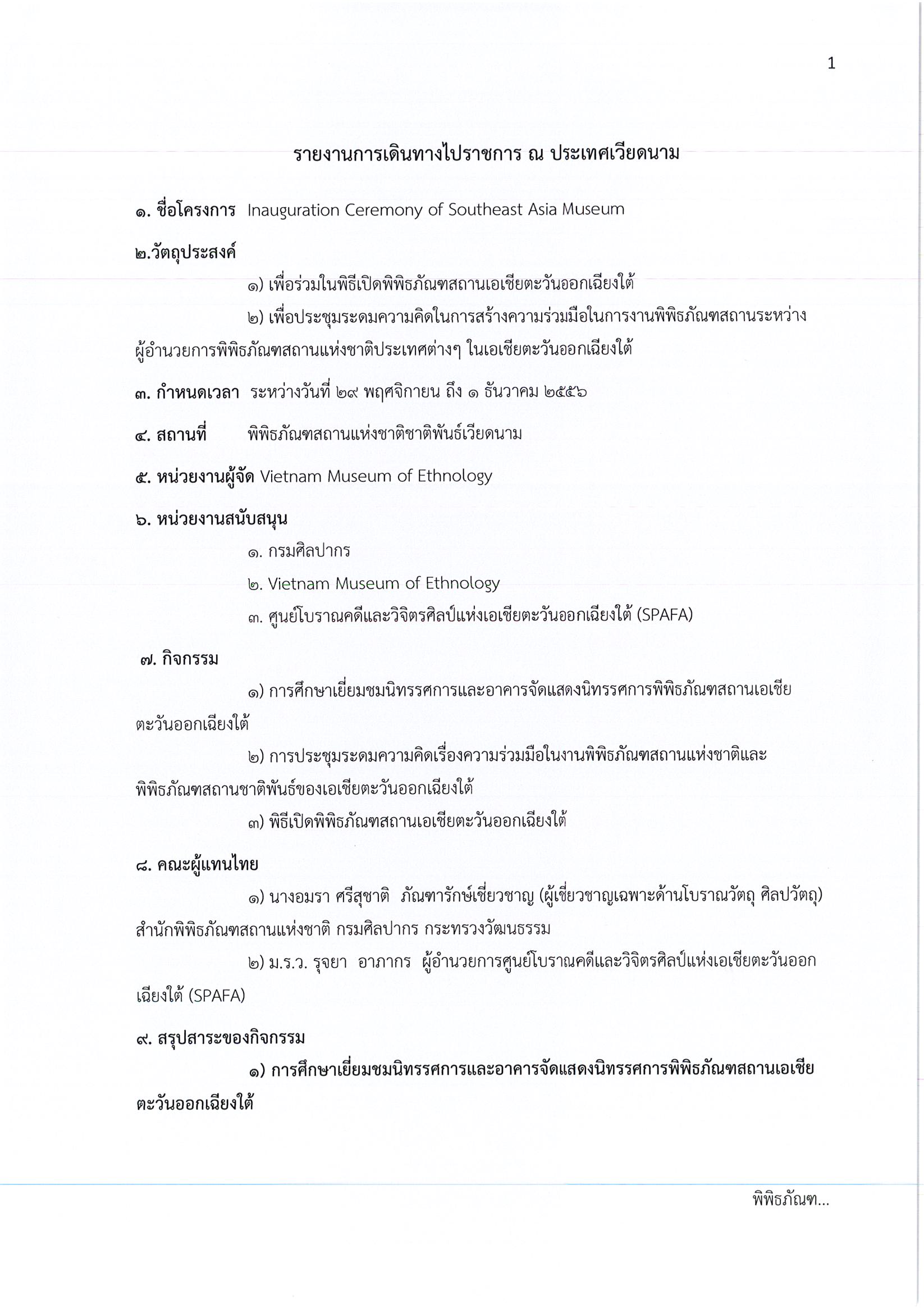 รายงานการเดินทางไปราชการ ณ สาธารณรัฐสังคมนิยมเวียดนาม ระหว่างวันที่ 29 พฤศจิกายน – 1 ธันวาคม 2556 โครงการ Inauguration Ceremony of Southeast Asia Museum