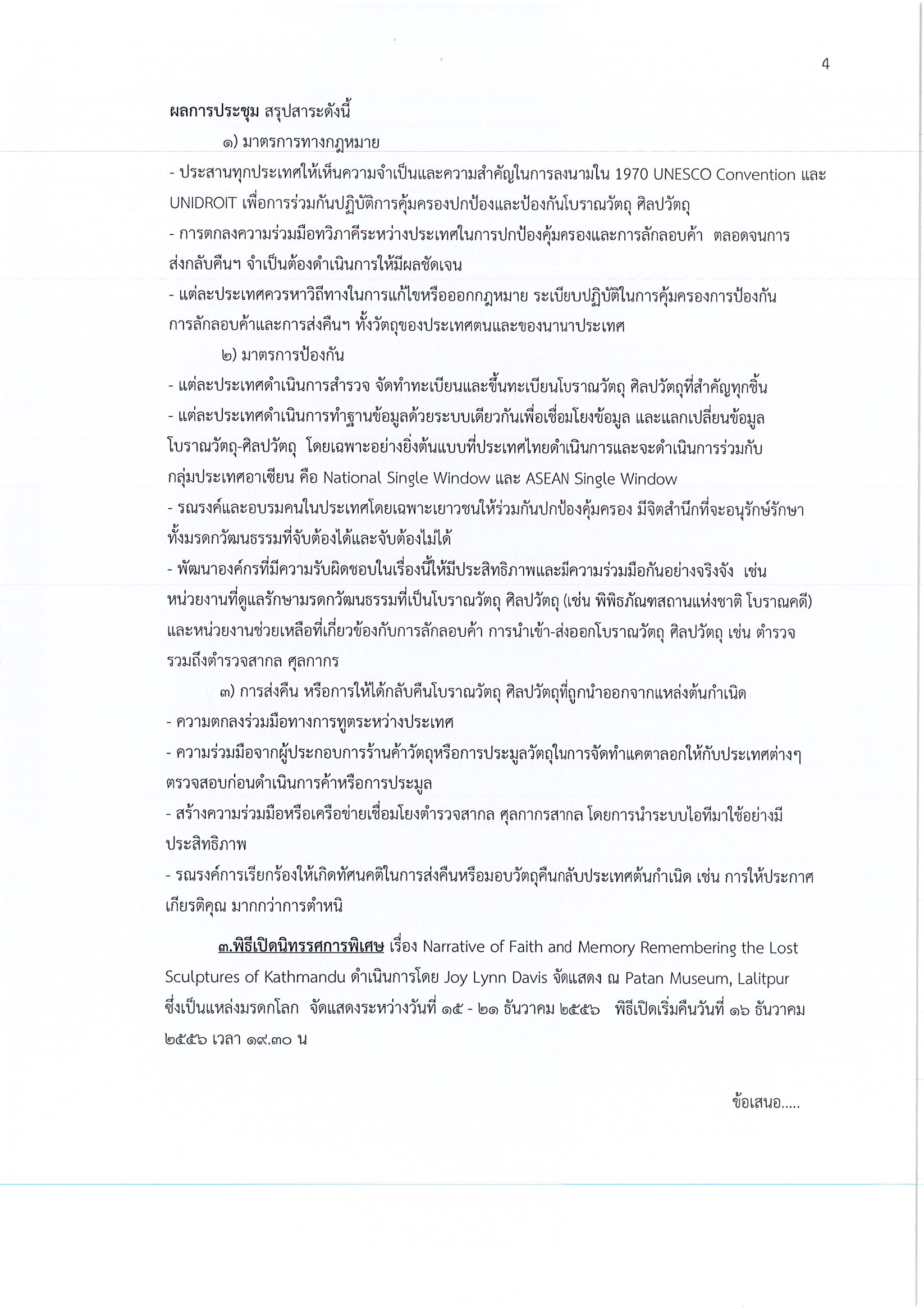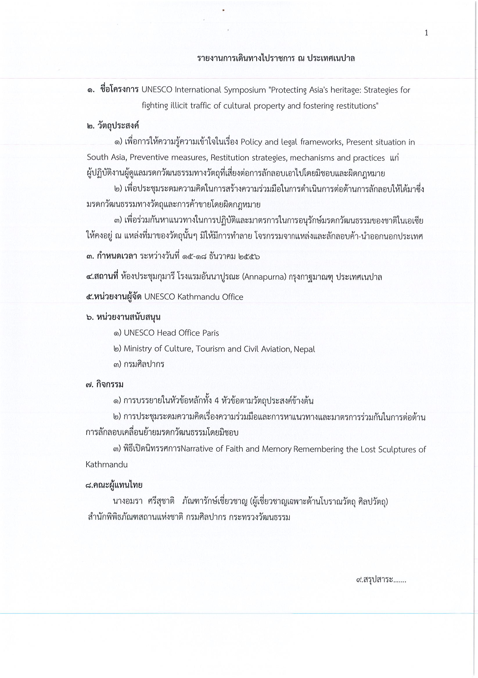 รายงานการเดินทางไปราชการ ณ สหพันธ์สาธารณรัฐประชาธิปไตยเนปาล ระหว่างวันที่ 15 – 18 ธันวาคม 2556 โครงการ UNESCO International Symposium “Protecting Asia’s Heritage: Strategies for fighting illicit traffic of cultural property and fostering restitutions”