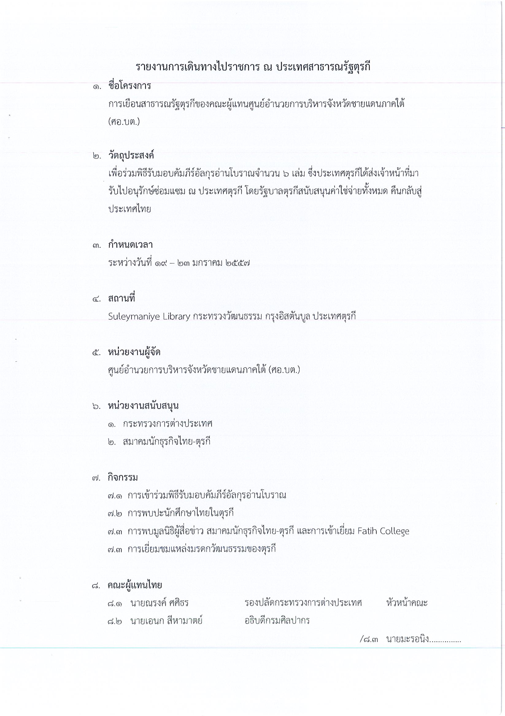 รายงานการเดินทางไปราชการ ณ สาธารณรัฐตุรกี ระหว่างวันที่ 19 -23 มกราคม 2557 โครงการเยือนสาธารณรัฐตุรกีของคณะผู้แทนศูนย์อำนวยการบริหารจังหวัดชายแดนภาคใต้ (ศอ.บต.)