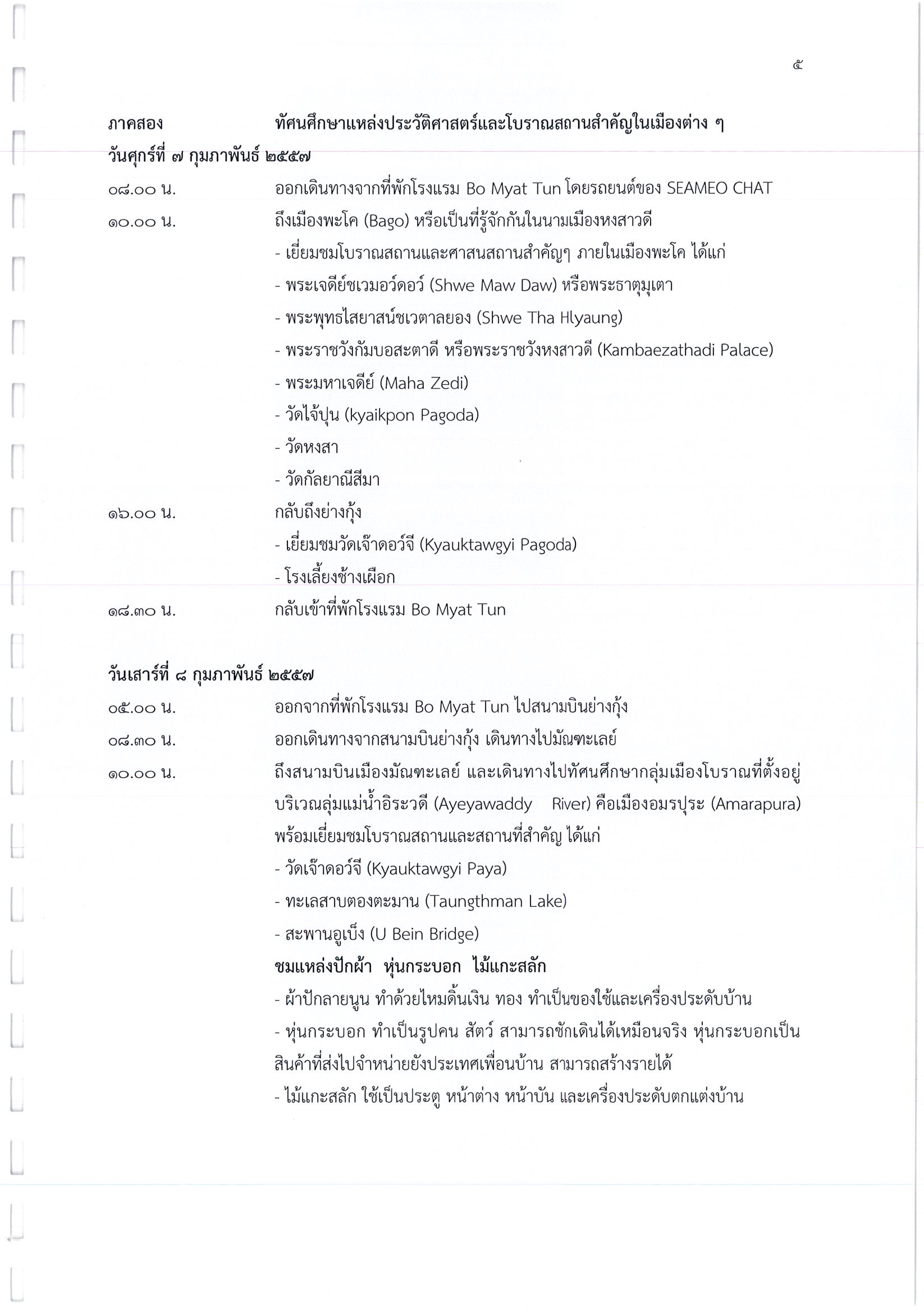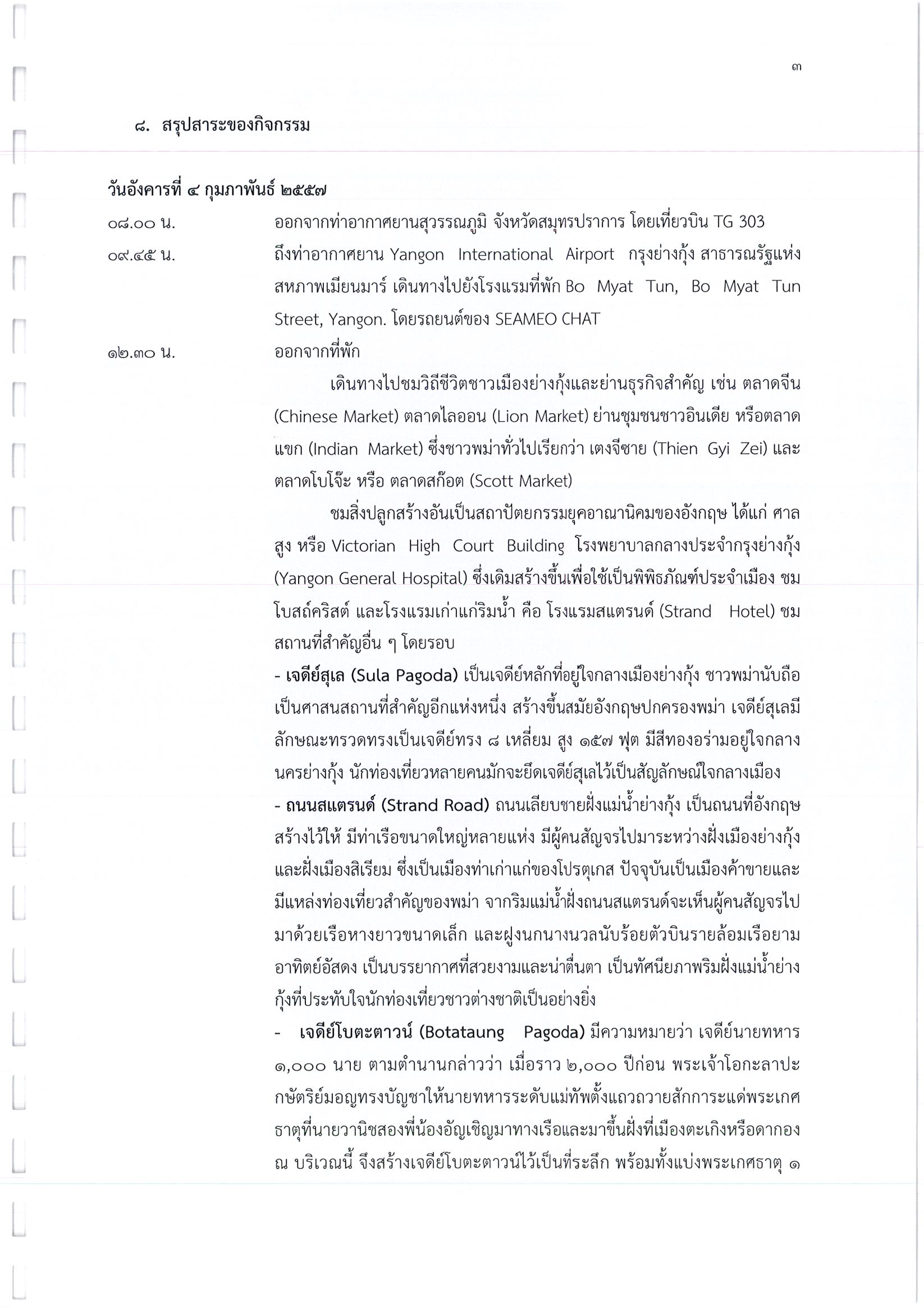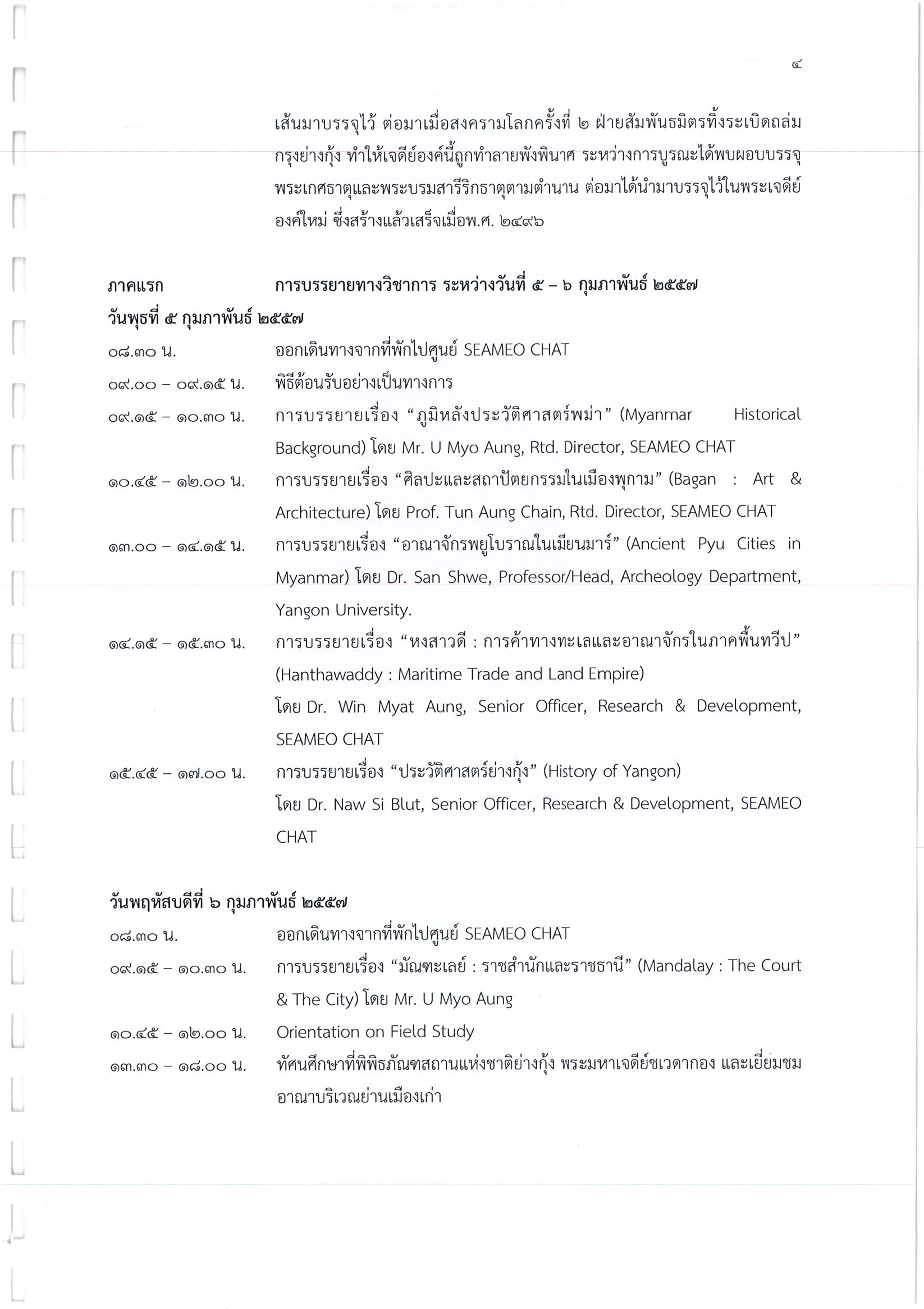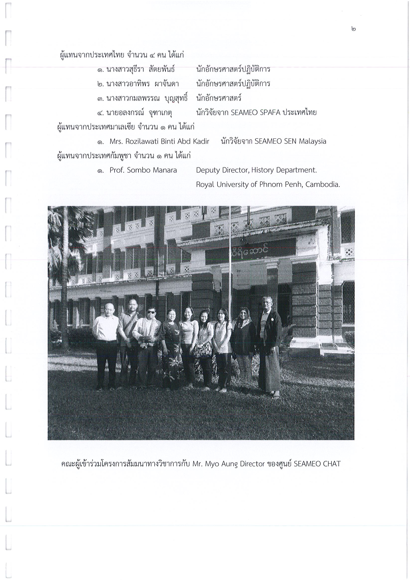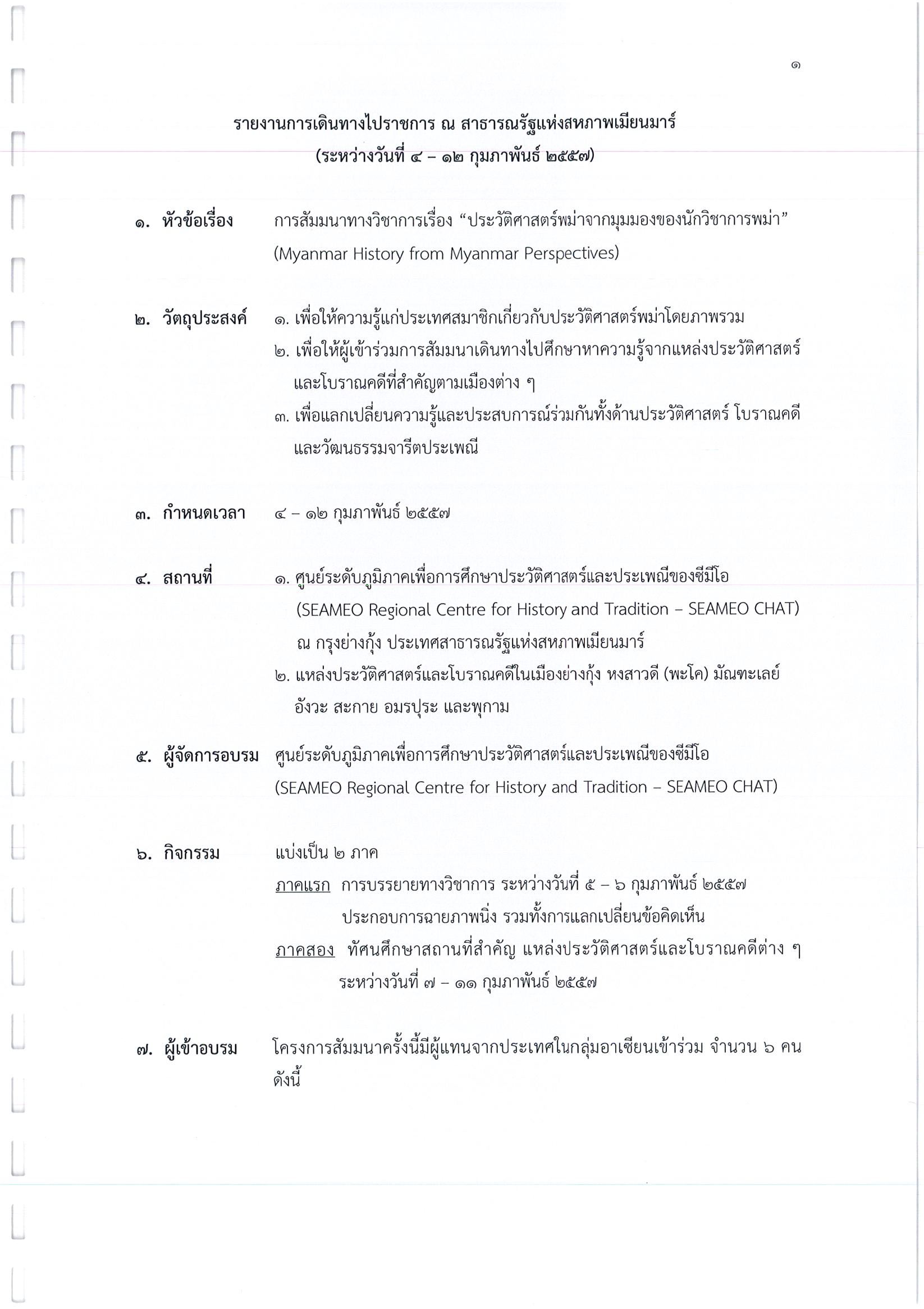 รายงานการเดินทางไปราชการ ณ สาธารณรัฐแห่งสหภาพเมียนมาร์ ระหว่างวันที่ 4 – 12 กุมภาพันธ์ 2557 โครงการสัมมนาทางวิชาการเรื่อง “ประวัติศาสตร์พม่าจากมุมมองของนักวิชาการพม่า” (Myanmar History from Myanmar Perspectives )