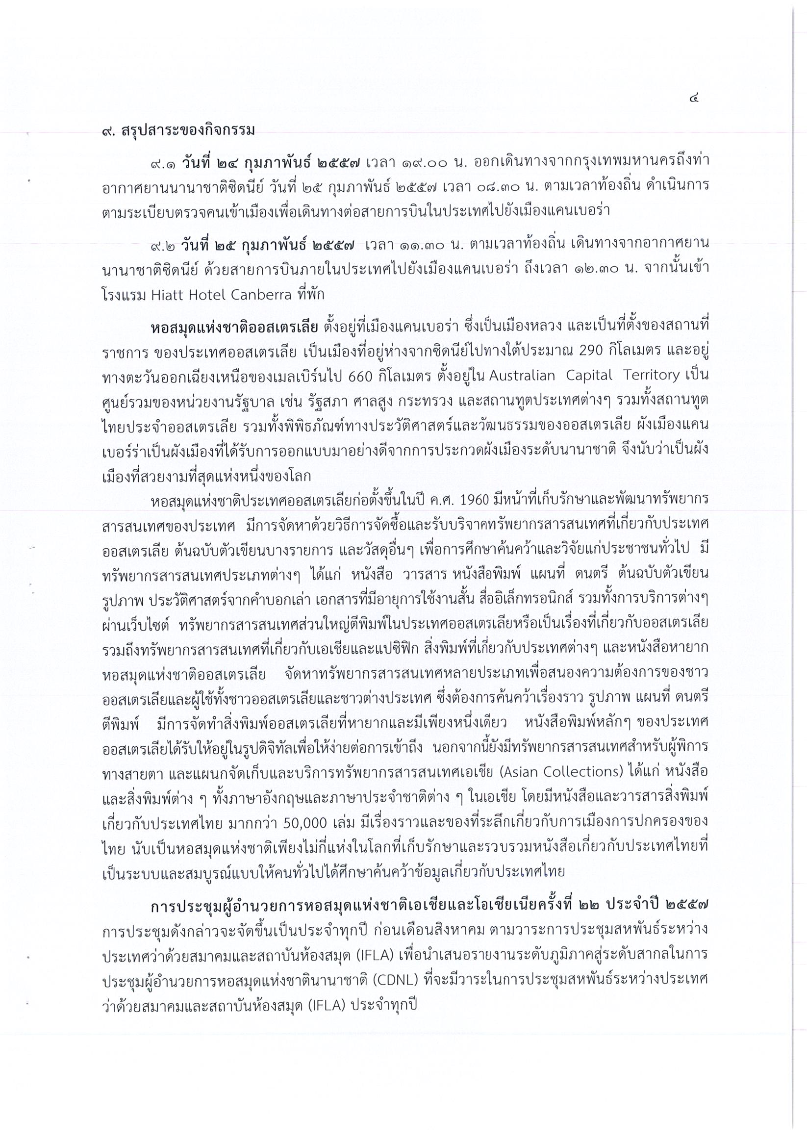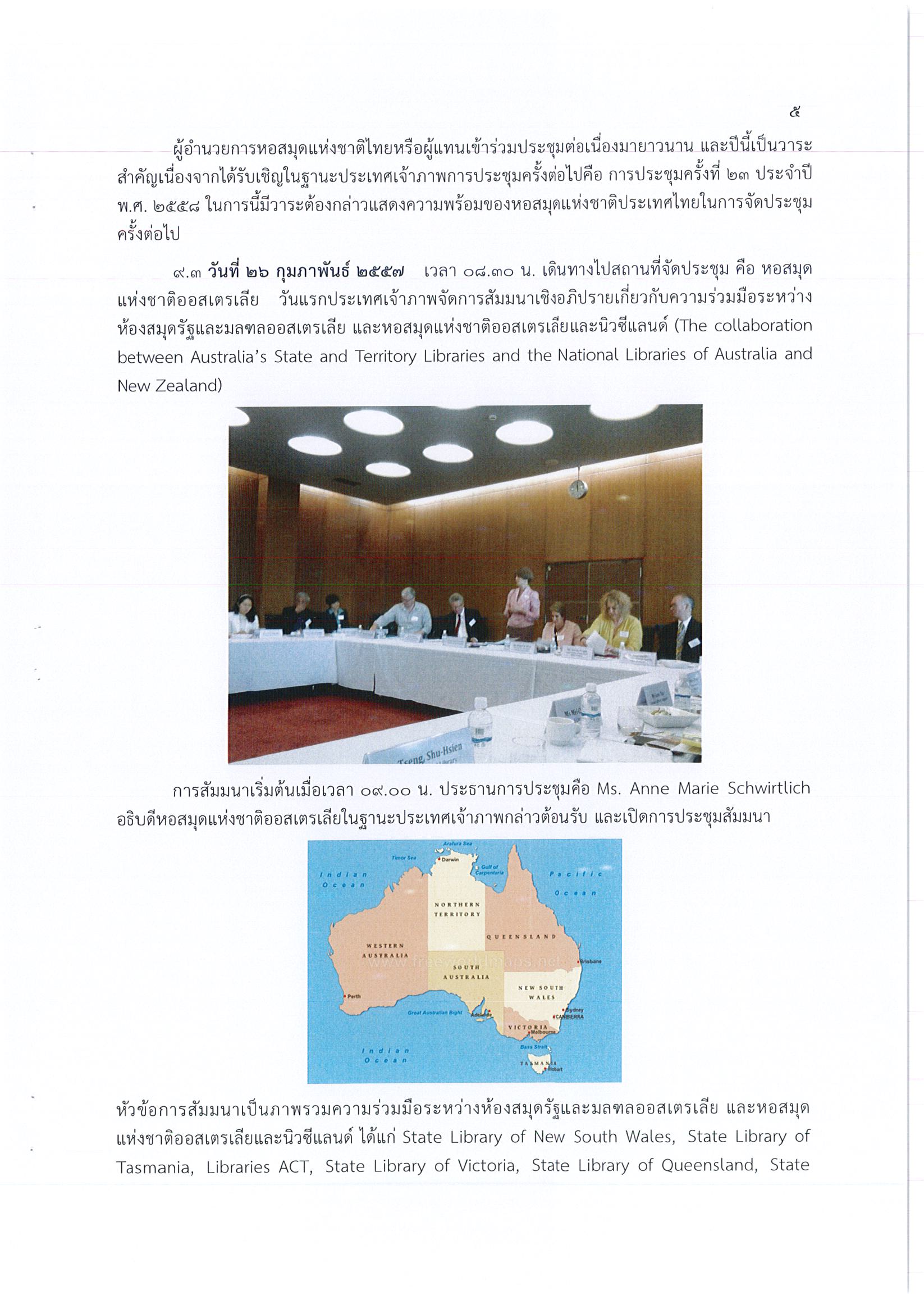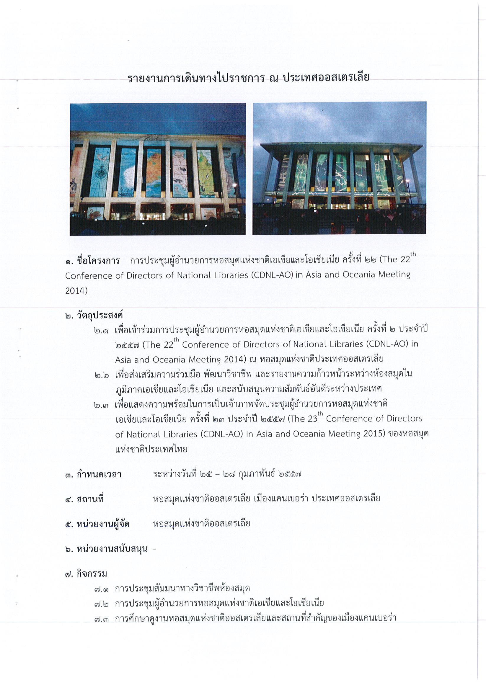 รายงานการเดินทางไปราชการ ณ เครือรัฐออสเตรเลีย ระหว่างวันที่ 25 – 28 กุมภาพันธ์ 2557 โครงการประชุมผู้อำนวยการหอสมุดแห่งชาติเอเชียและโอเชียเนีย ครั้งที่ 22